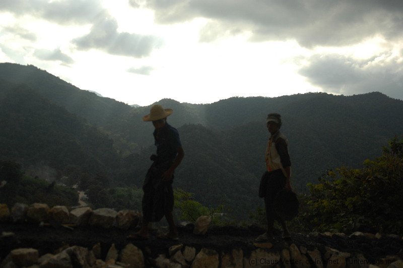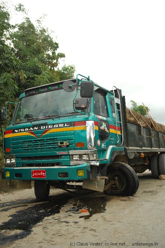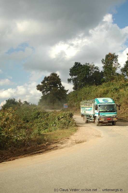 Bereits am Abend zuvor haben wir beschlossen, ohne einen Zwischenstopp in Kalaw direkt nach Nyaungshwe am Inle Lake zu fahren. Kyaw hatte bereits angedeutet, dass für die rund 330 Kilometer eine Fahrzeit von 8 bis 10 Stunden einzukalkulieren sei. Allein für die 270 km nach Kalaw sind es dann bereits acht Stunden – inklusive einer kurzen Pause. Die Straße ist zum Teil in einem erbärmlichen Zustand. Schlaglöcher? Auf der Bergstrecke ist es ein einziges oder hunderte mit direkter Verbindung – reine Definitionssache. Natürlich soll das nicht so bleiben und deshalb wird gebaut. Das geht schon länger so. Sobald man auf der anderen Seite des Shan-Gebirges (Shan Yoma) in Heho angekommen ist, kann man wieder von vorne beginnen.