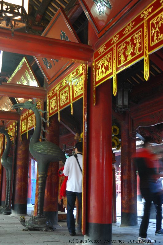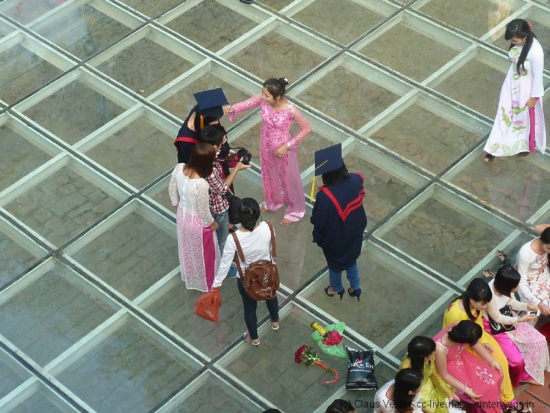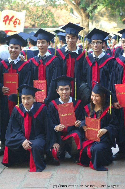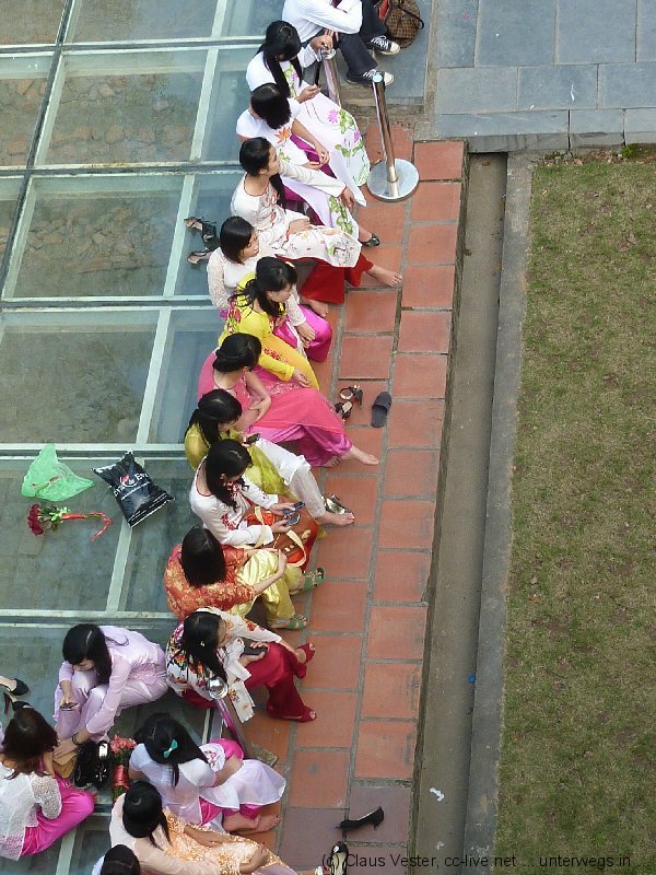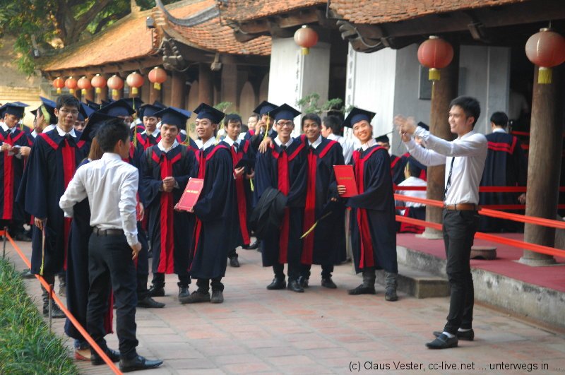 Also wieder eine Straße zurück zur Zitadelle von Thang Long. Hier tummelten sich zahlreiche Jugendliche in Festtagstracht. Wie sich herausstellte feiern sie gerade ihr Schul- bzw. Studiumsende. Nicht weit entfernt auf dem Gelände des Literaturtempels feiern vor allem Studenten ihren Abschluss. Mittlerweile ghet die Sonne unter und auf dem Weg zurück wartet ein kleines bia hoi mit einer kühlen Erfrischung. Ein äußerst preiswertes Vergnügen, das Bier kostet pro Glas rund 15 Cent…
