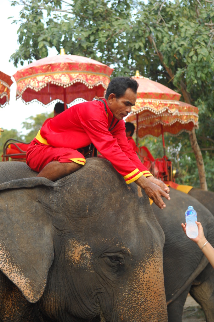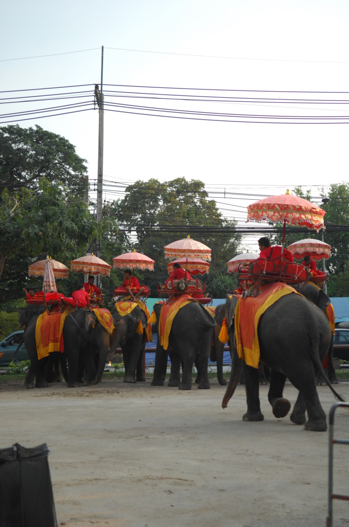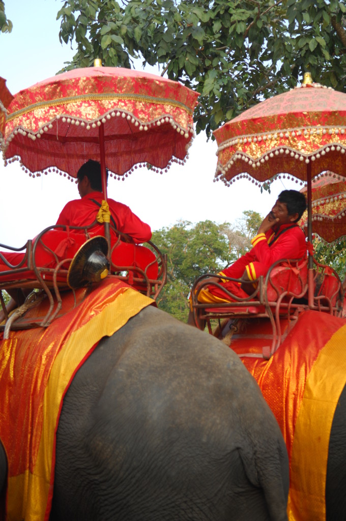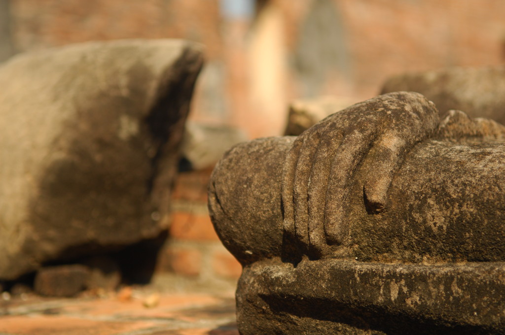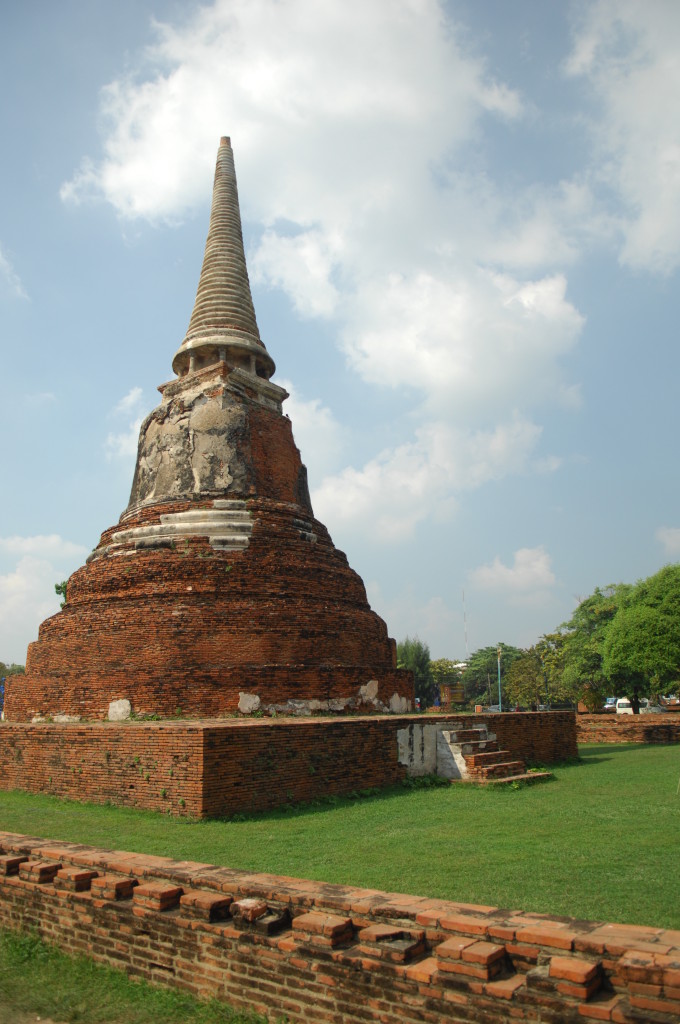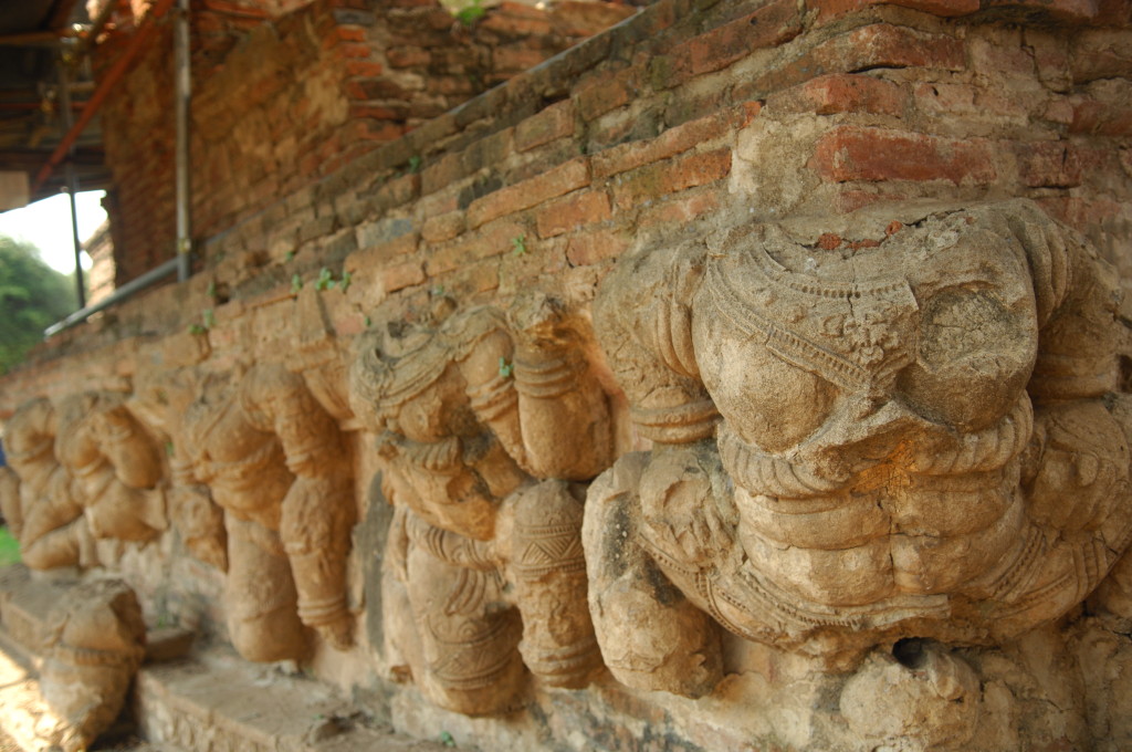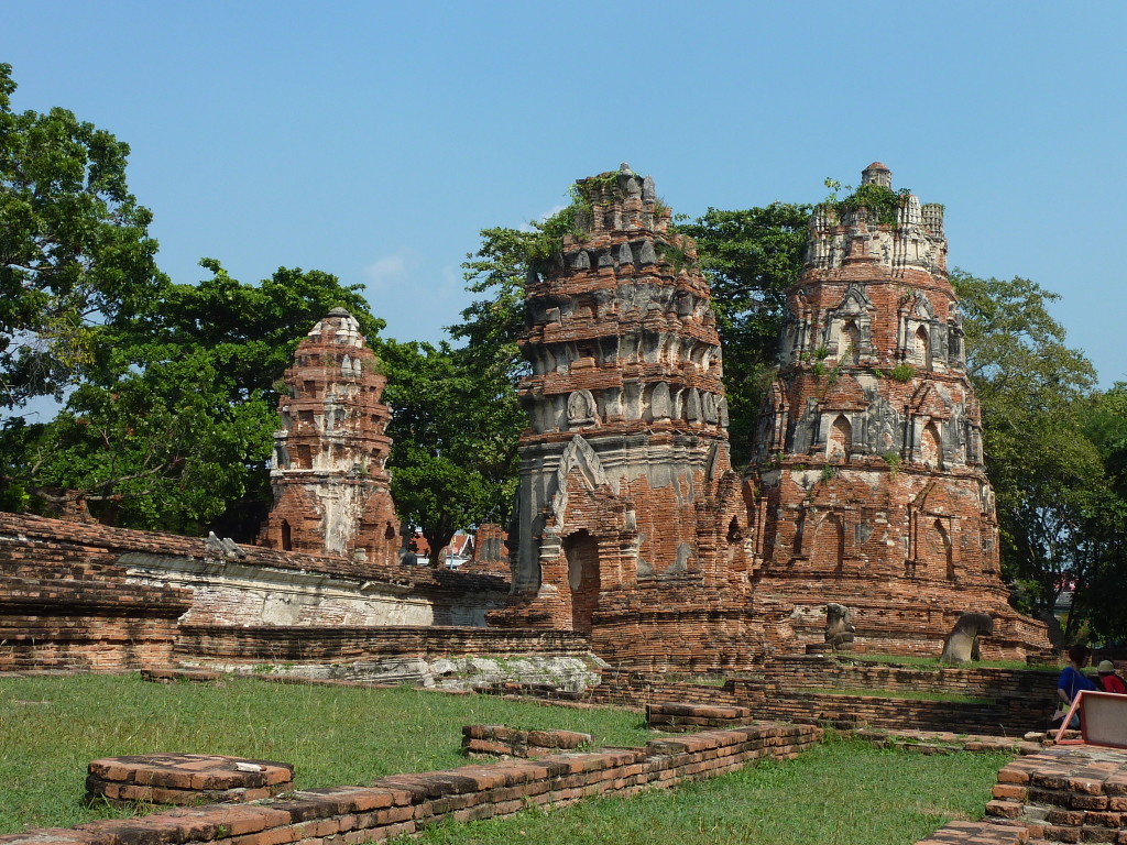 Vom ursprünglichen Königspalast stehen dagegen großenteils nur noch Reste der Grundmauern. Lediglich drei gleichförmige Stupas im Eingangsbereich sind noch unübersehbar in voller Größe erhalten. Dieses Gebiet kann auch auf dem Rücken von Elefanten besichtigt werden, die in einem Camp auf dem parkartig angelegten Gelände mit ihren Mahuts angeheuert werden können. Im Gegensatz zu vielen anderen Stätten des von der UNESCO geförderten Weltkulturerbes wird die Idylle von stark befahrenen Straßen zerschnitten. Angenehm dagegen ist das offensichtliche Fehlen der aufdringlichen fliegenden Händler.