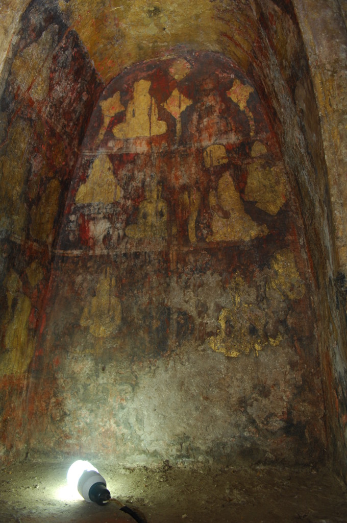 Ein Wandrelief in Bodennähe des benachbarten Wat Ratchaburana wurde mit Mitteln des deutschen Außenministeriums restauriert. Es lohnt sich in das Innere des Haupt-Chedis hinunterzusteigen. Zuerst erklimmt man die zweite Ebene über die äußeren Steinstufen und betritt eine kleine Kammer, von der eine steile Treppe in die Krypta etwa auf Bodenniveau hinunter führt. Durch einen schmalen Durchbruch gelangt man in einen winzigen Raum mit Wandmalereien.
