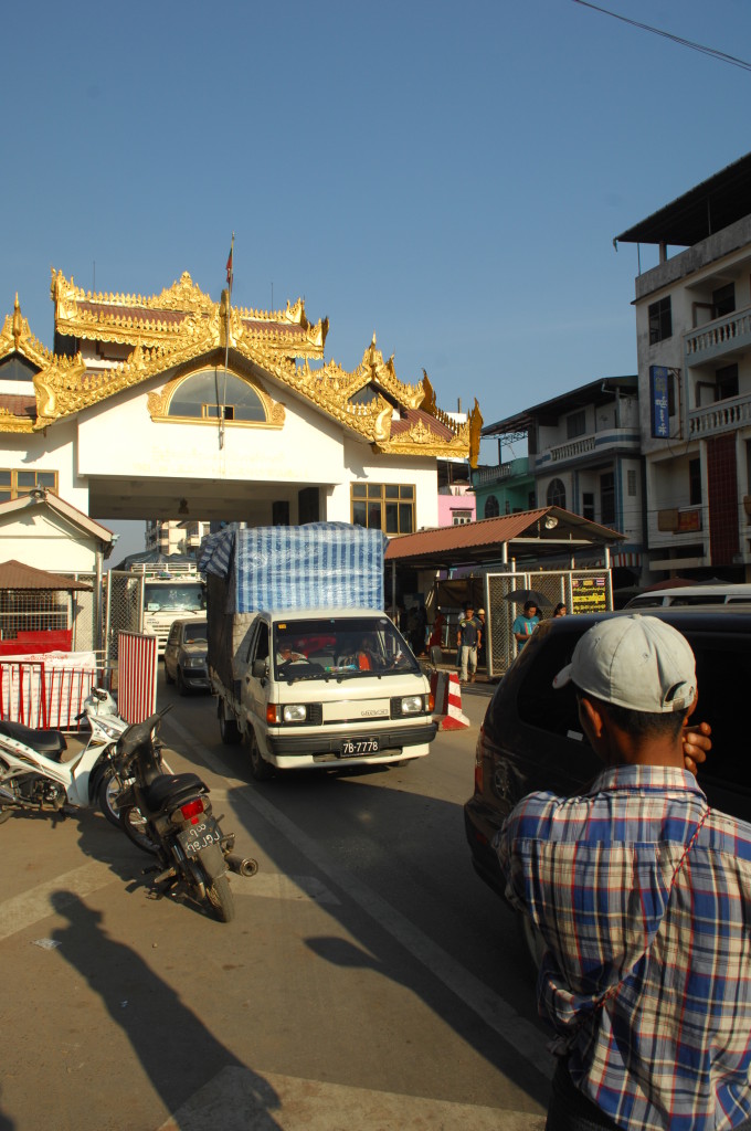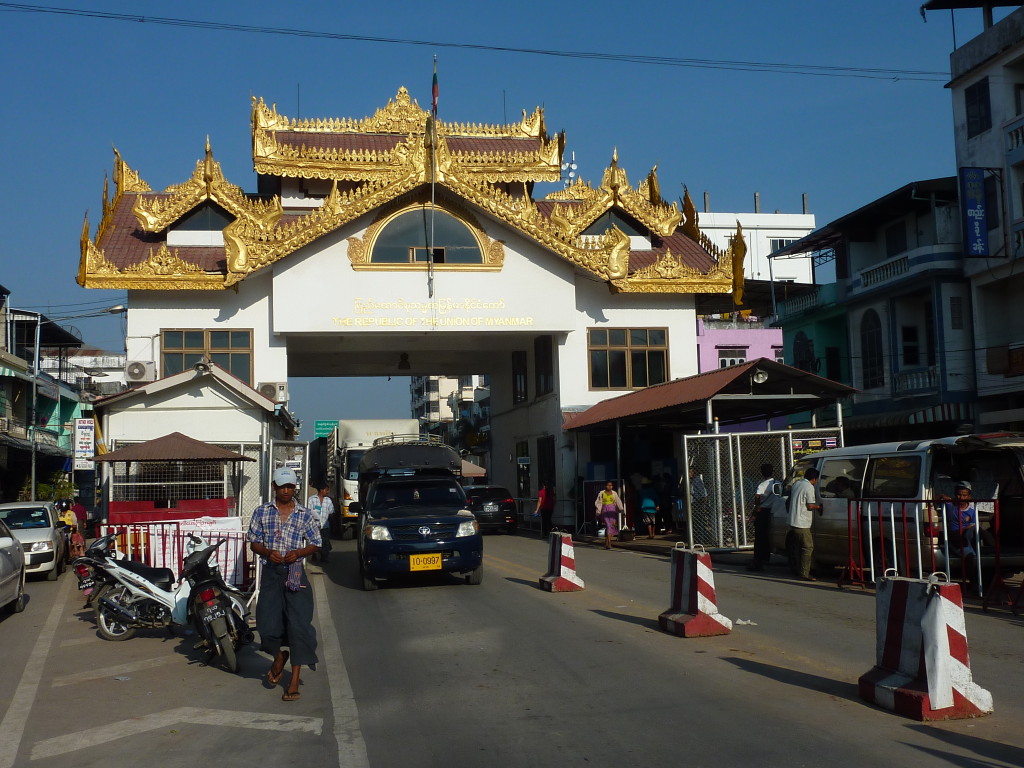 Zum Glück wartet bereits nach der dritten Biegung ein freundlicher Tuk-Tuk-Fahrer namens Phuk. Für 100 Baht bringt er uns bis an das Zollhäuschen an der Freundschaftsbrücke. Es sind nur eine Handvoll Ausländer, die um diese Zeit die Grenze passieren wollen, also null Wartezeiten für die Formalitäten. Und wie schon bei der Ausreise in Richtung Thailand vor zwei Jahren, dürfen wir den Weg über die Brücke zur Einreise zu Fuß zurücklegen. 15 Minuten später sitzen wir in der klimatisierten Abfertigungshütte und freuen uns über die verdutzten Zöllner, die das Richtige aus mittlerweile drei Myanmar-Visas raussuchen müssen. Und noch während der letzte Stempel in den Reisepass knallt, kommt ein weitere Burmese in den Raum, diskutiert kurz mit den Beamten und fragt uns lächelnd, ob wir heute noch weiter fahren wollen. Dank der neuen Straße über den Berg könne man Hpa An jetzt in drei Stunden erreichen – vor zwei Jahren waren es noch 6 Stunden…
