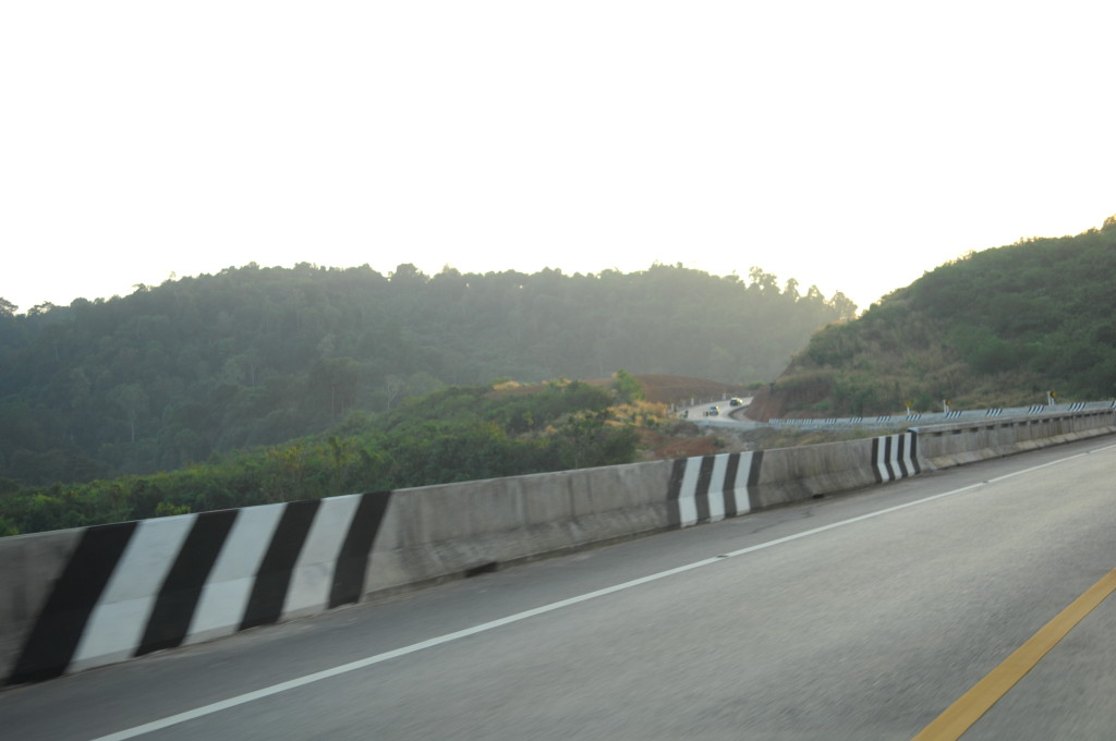 Die Fahrt über die gut ausgebaute Schnellstraße geht flott voran. Die Strecke über den Berg ist in rund einer Stunde geschafft – dreimal so schnell wie beim letzten Mal. Ende der Ausbaustrecke. Es geht wieder weiter wie gewohnt. Der jämmerliche Zustand der Straße für die nächsten 2,5 Stunden auf der Hochebene bis Hpa An ist unverändert. Allerdings wird die Fahrbahn wieder fleißig ausgebessert und zum Teil auf „echte“ zwei Spuren verbreitert.