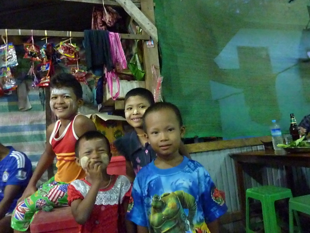 Die gebratenen Nudeln mit Huhn schmecken köstlich und wir kommen mit Konge ins Gespräch. Er spricht sehr gut Englisch, sein Vater ist Lehrer und lebt mit der übrigen Familie am Inle-See. Konge würde seine Eltern gerne besuchen, das letzte Mal ist 7 Jahre her. Aber er ist Moslem – wie 20% der Einwohner von Hpa An. Seit zwei Jahren gilt für sie die Residenzpflicht. Moslems dürfen in ganz Myanmar ihre Heimatstadt nicht verlassen. So bleibt dem Sohn nur der Kontakt über Telefon und Skype zu den Eltern.