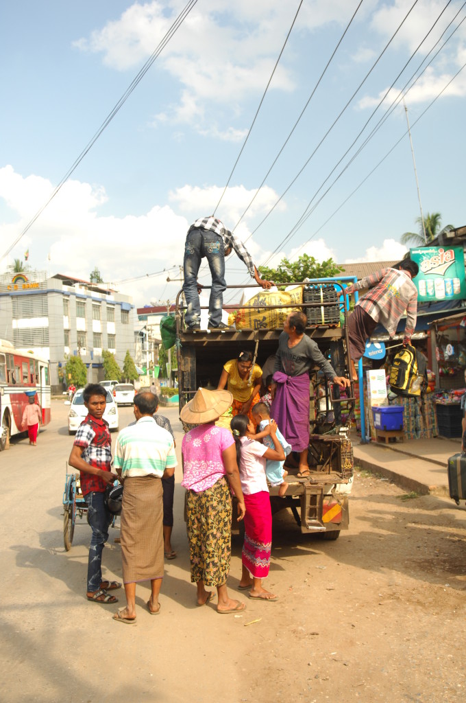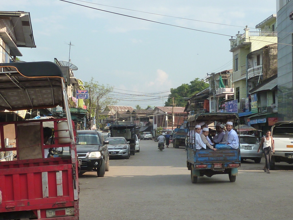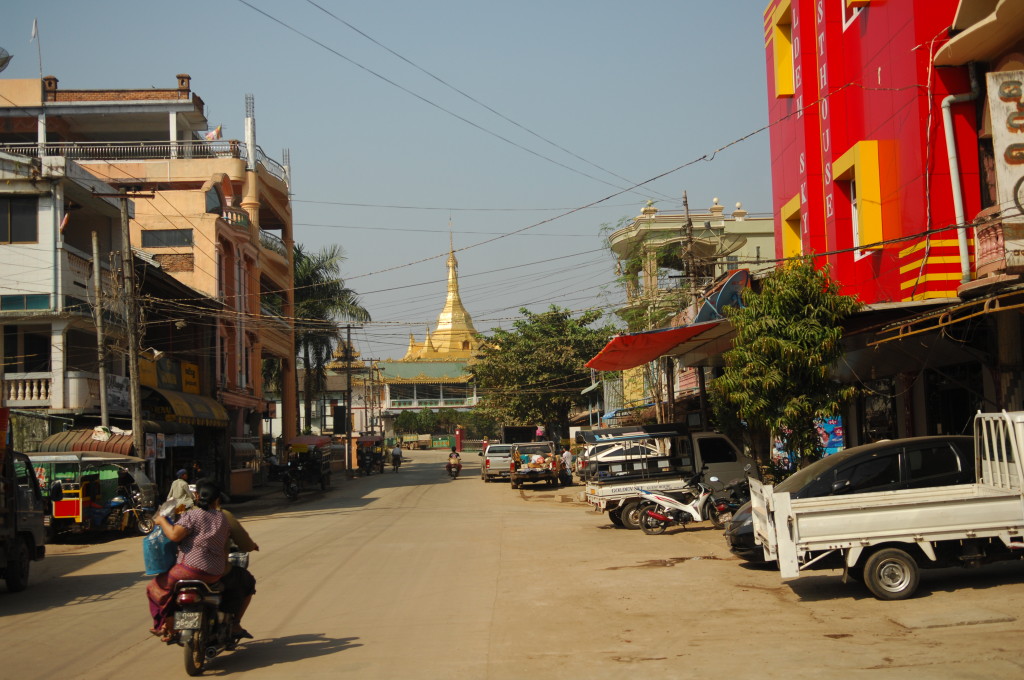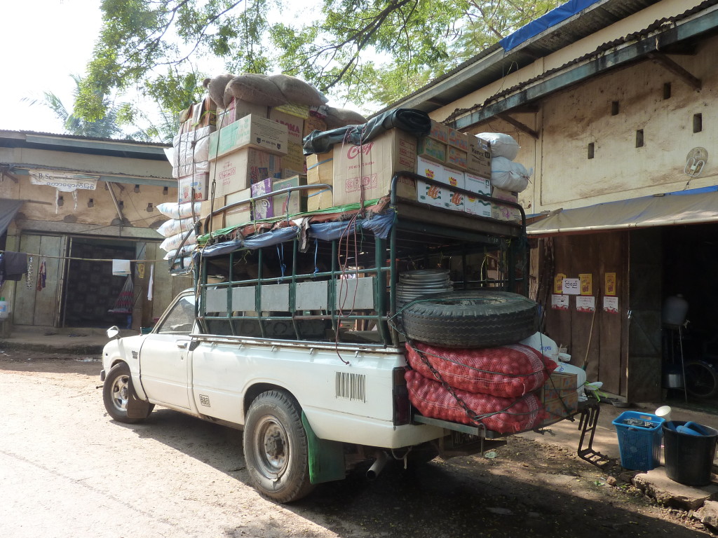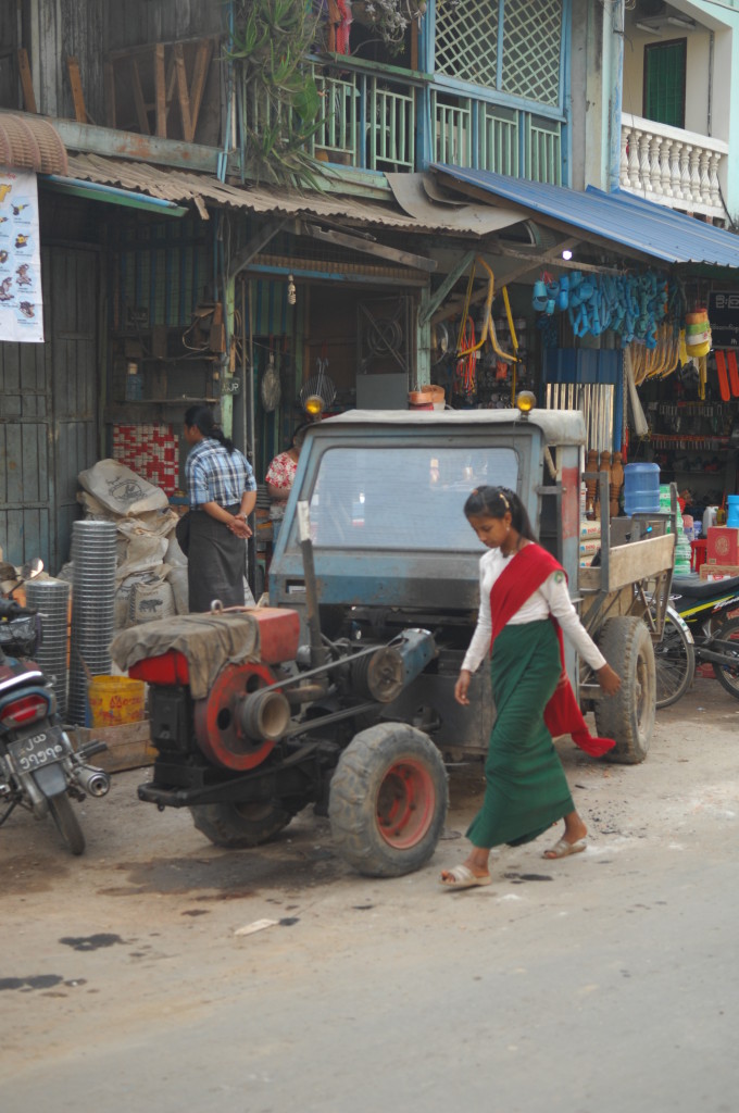 Einen Schönheitspreis wird diese Stadt niemals gewinnen. Architektonisch wuchern die Häuser an der Hauptstraße in Größe, Form und Farbe wild aneinander und durcheinander. Allen gemeinsam sind die Läden im Erdgeschoß. Es macht Spaß sich einfach so durch das Gewurle treiben zu lassen und die Menschen zu beobachten. Sichtlich bis zur Belastungsgrenze beladene LKW, Tuk Tuks und sonstige Transportmittel sorgen für Nachschub.