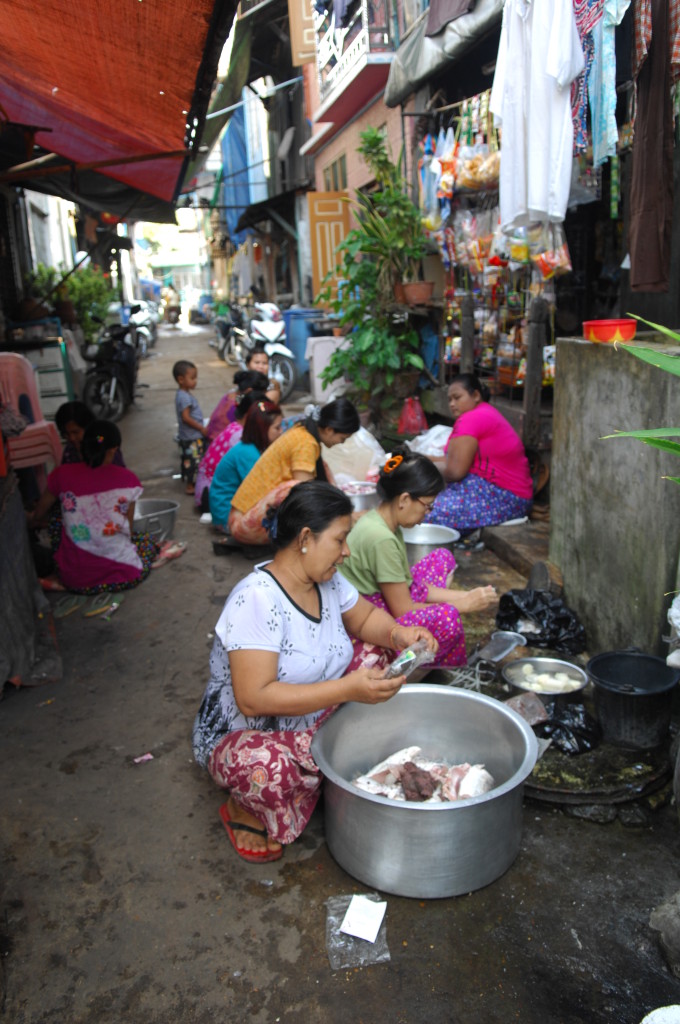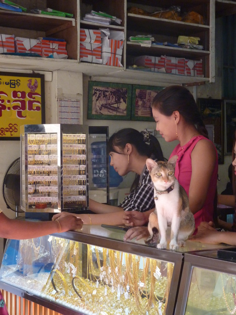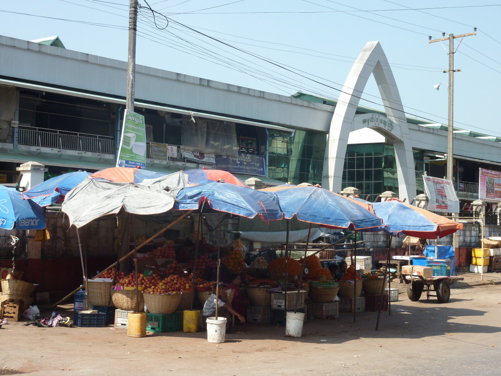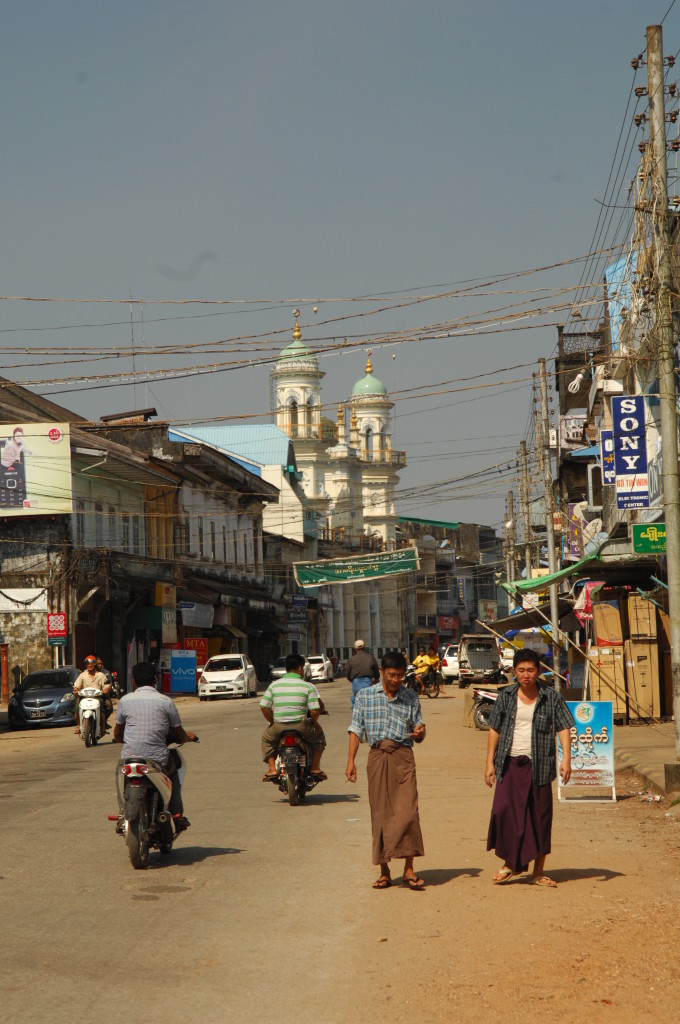 Die drittgrößte Stadt des Landes wird von Burmesen, Mon und Indern bewohnt. Das spiegelt sich auch an der religiösen Vielfalt wieder. Neben buddhistischen Heiligtümern hatten wir gestern schon zum Teil quietschbunte christliche Kirchen und hinduistische Tempel gesehen. Im nördlichen Teil der Stadt prägen zahlreiche Moscheen das Straßenbild.