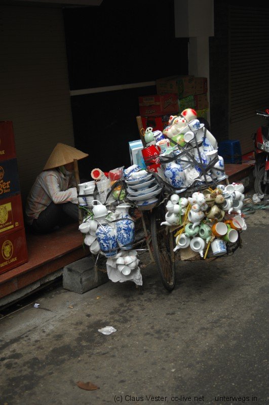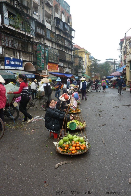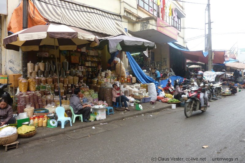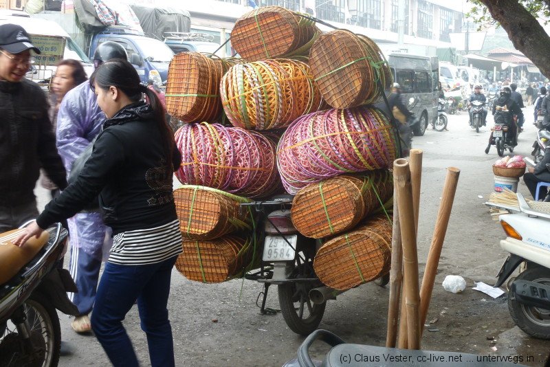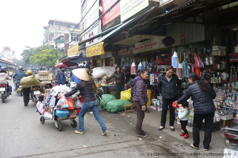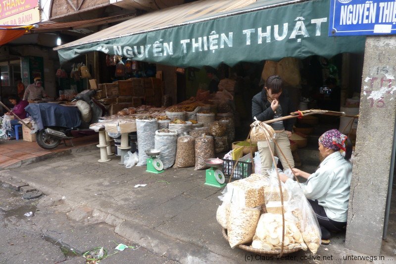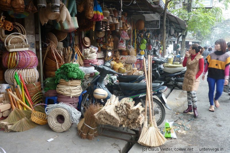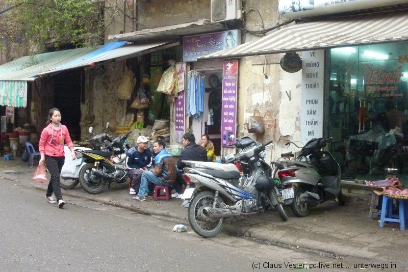 Glücklicherweise haben wir bereits gestern Karten für das Wasserpuppenballett besorgt. Bevor es um 14.15 Uhr in die Vorstellung geht, bleibt noch einmal Zeit für einen Streifzug durch das alte Hanoi. Etwas abseits der Hauptstraßen findet man noch Gassen wie sie früher waren. Die Namen gegen einen Hinweis auf das jeweilige Handwerk, das hier ausgeübt wurde oder auch noch heute beheimatet ist. Vor allem in der Gegend um den alten Markt am nördlichen Ende der Altstadt geht das Leben wie eh und je seinen Gang.