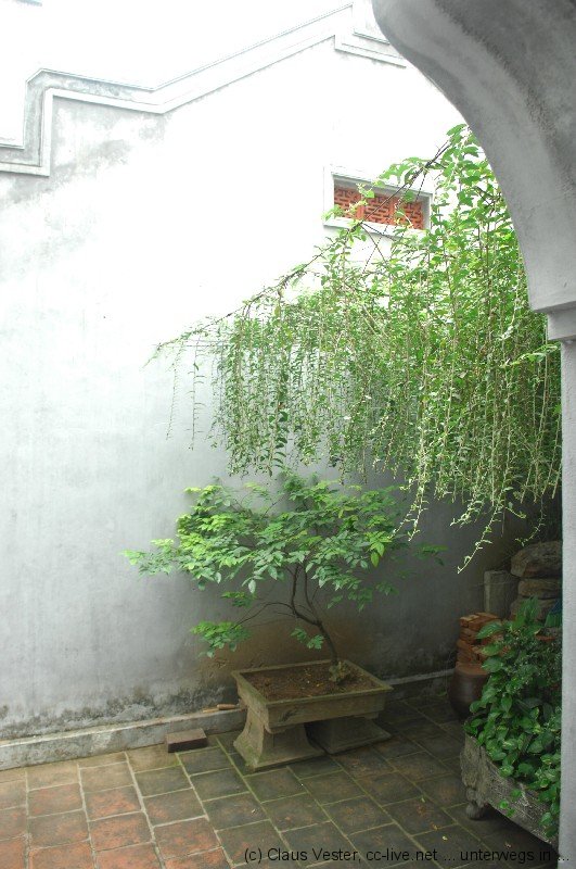 Am Flughafen von Hue das übliche Spiel. Vor dem Terminal warten die Taxler aufgereiht wie die Geier hinter der Markierung und buhlen um Kundschaft. 230.000 Dong für eine Viertelstunde Fahrzeit scheinen uns aber doch etwas reichlich bemessen. Die Alternative ist ein Bus, der unscheinbar direkt neben den Taxen auf Fahrgäste wartet. Den Fahrschein (50.000 Dong = 0,25 US$ pro Person) gibt’s direkt am Ausgang des Terminals. Nach 10 Minuten Wartezeit geht’s los, nachdem der Bus bis auf den letzten Notsitz gefüllt ist. Doch kein Problem, die meisten Passagiere sind Einheimische und steigen kurz hinter der Stadtgrenze gesammelt auf Motorradtaxis um. Bereits der dritte Stopp ist dann auch schon direkt vor unserem Hotel.