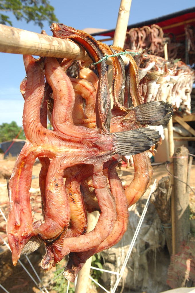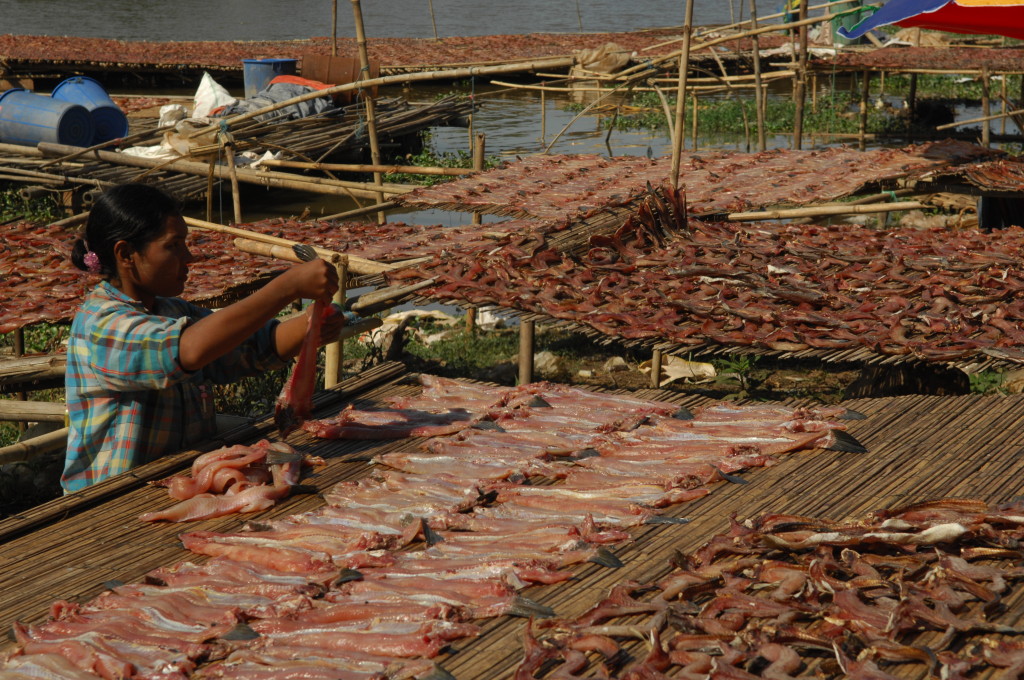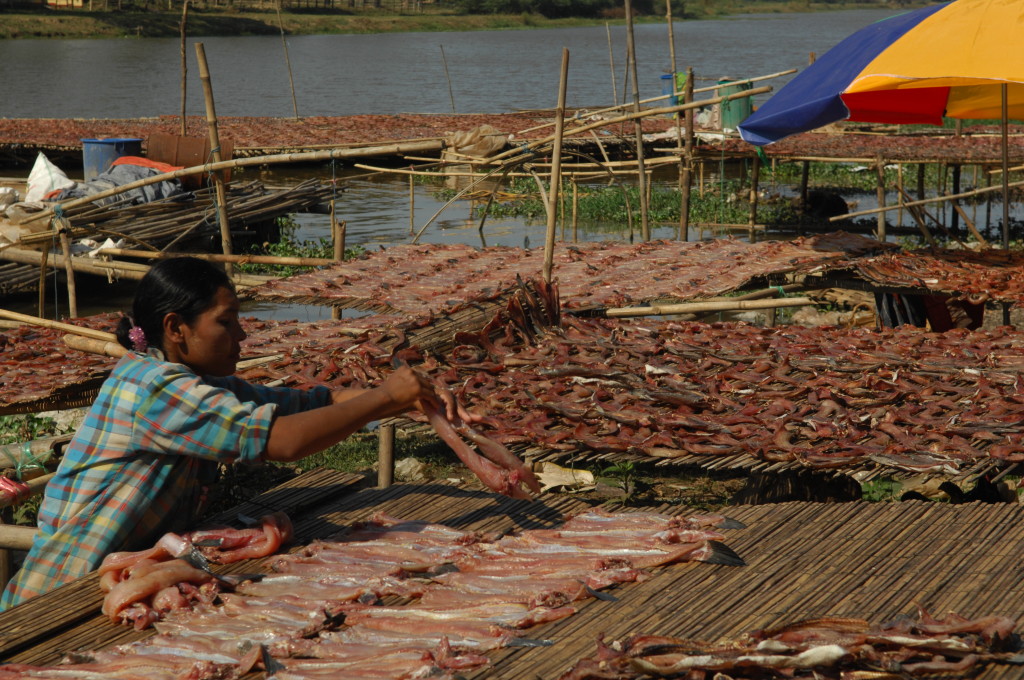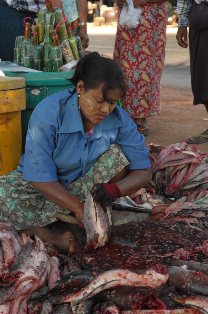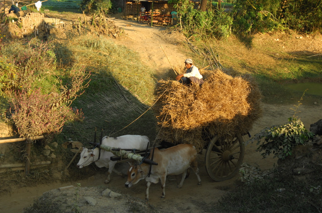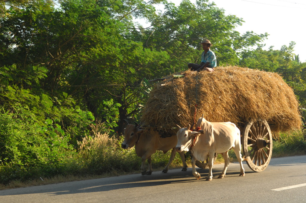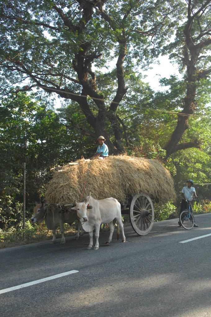 Vorbei an den Trockenfischproduzenten lassen wir Bago links liegen und nehmen die alte Straße in Richtung Mandalay. Ganz so weit müssen wir heute nicht, am Abend wollen wir Taungoo erreichen. Die Landstraße wird von Alleen zum Teil alter Bäume gesäumt. Reisfelder soweit das Auge reicht. Meist werden diese wie zu früheren Zeiten von Ochsen gepflügt. Im Süden war uns auf der ganzen Fahrt nur ein Gespann auf der Straße begegnet. Hier gehören sie noch zum Alltag.