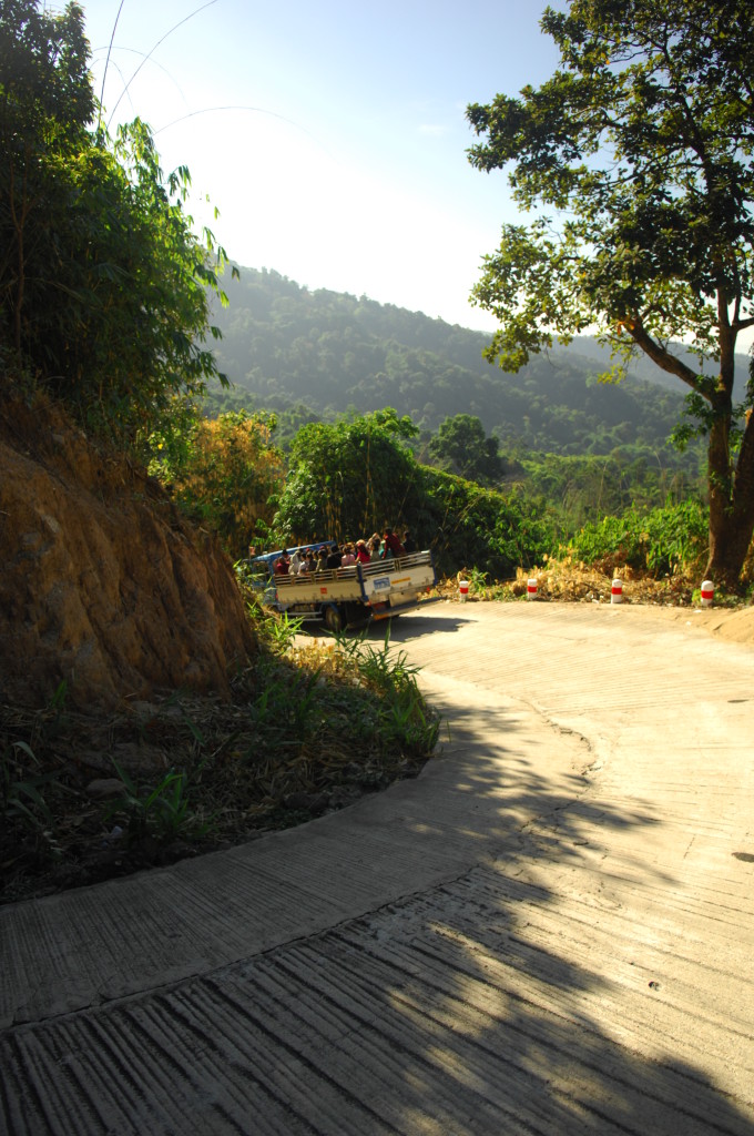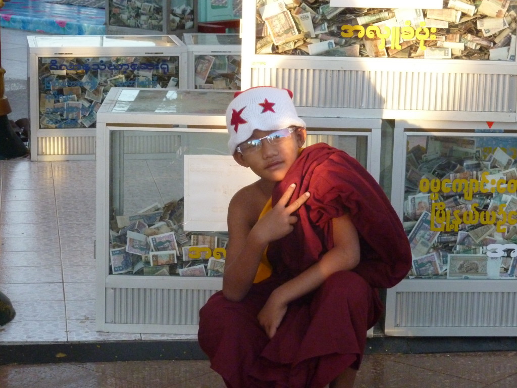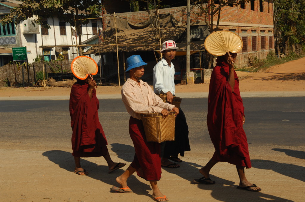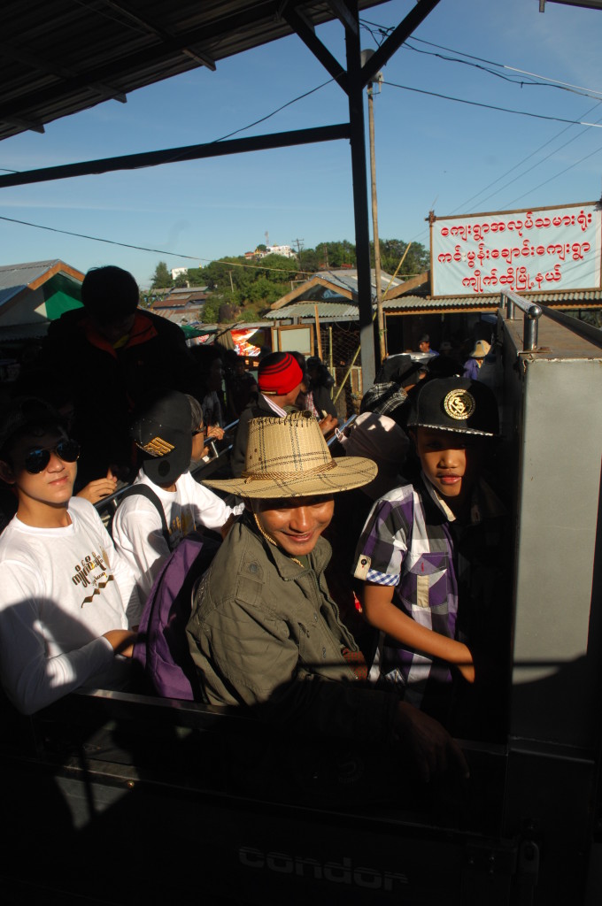 Nach dem Frühstück machen wir uns ebenfalls auf den Weg zur Basisstation. Dort treffen wir Kyaw, unseren Fahrer für die nächsten 10 Tage. Mit ihm haben wir bereits vor 4 Jahren das Land bereist. Im Gegensatz zur Fortbewegung mit öffentlichen Verkehrsmitteln können wir so an jedem beliebigen, uns interessant erscheinenden Punkt halten und diesen erkunden. Besser noch: Kyaw ist einer der wenigen Reiseführer, die zugleich Fahrer sind, und er kennt sich im ganzen Land hervorragend aus. Er ist so neugierig wie wir. Wenn er etwas nicht weiß, fragt er den nächsten Einheimischen. Dank ihm gelangen wir zu Orten, die noch nicht in die Reiseführer gefunden haben, und erfahren so manches interessante Detail.