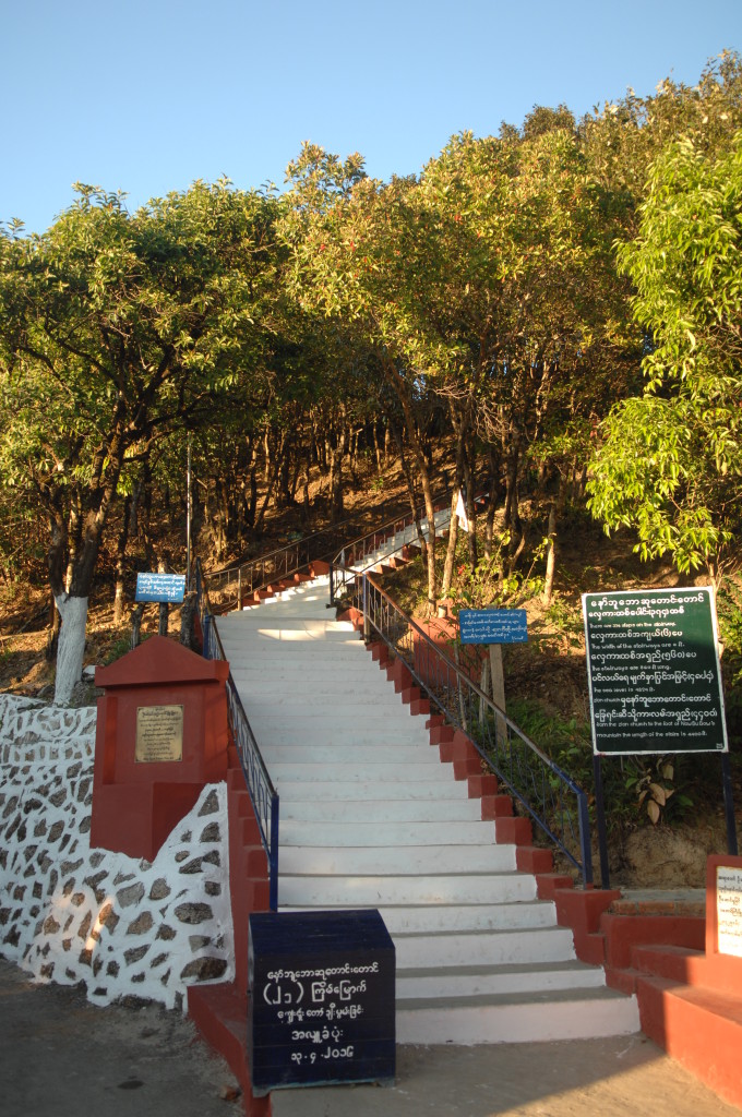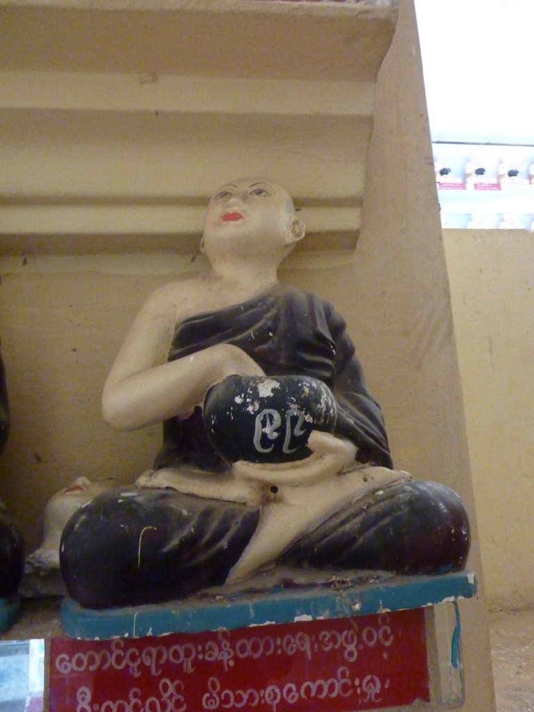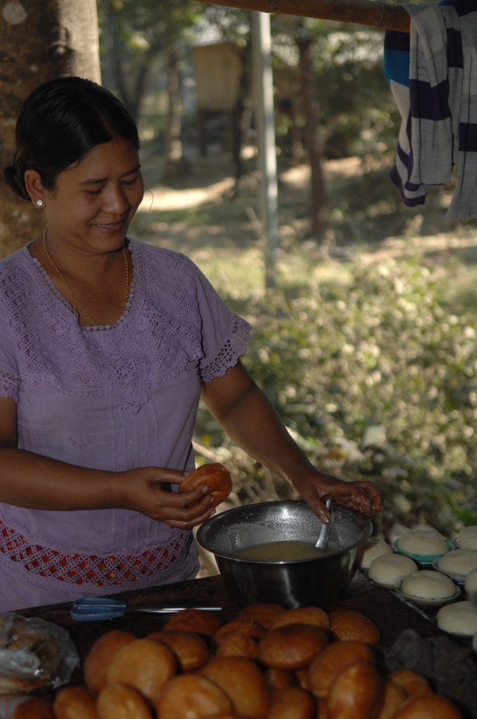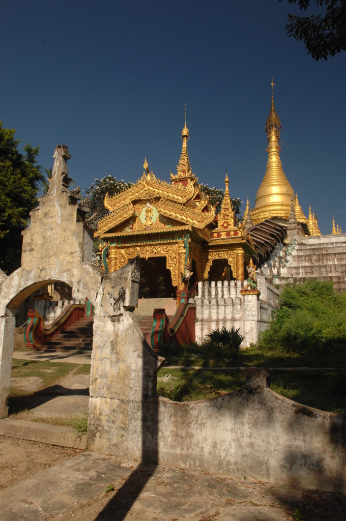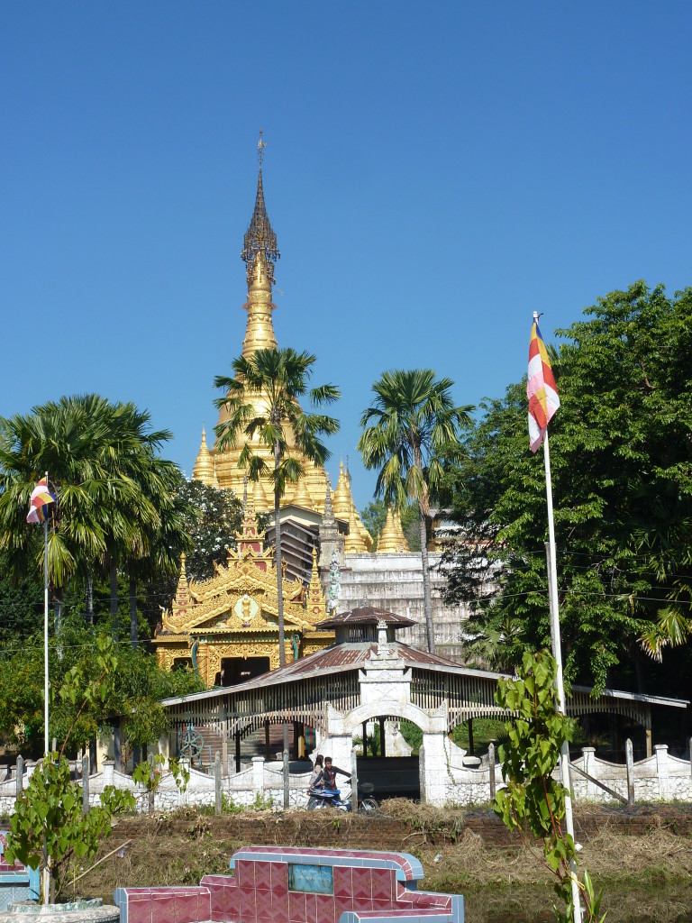 Nach dem üppigsten Frühstück, das in Myanmar in einem Guesthouse zu bekommen ist, starten wir zu einem Abstecher in die Bergregion östlich von Taungoo. Erstes Ziel ist Myat Saw Nyi Naung, eine Tempelanlage mit angrenzendem Kloster einige Kilometer außerhalb der Stadt.