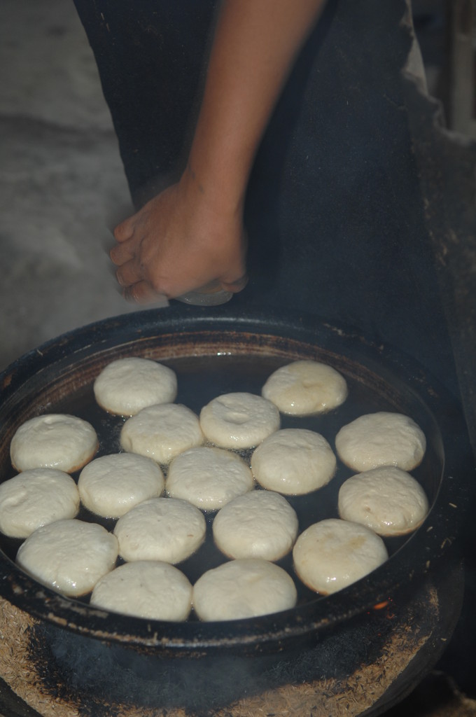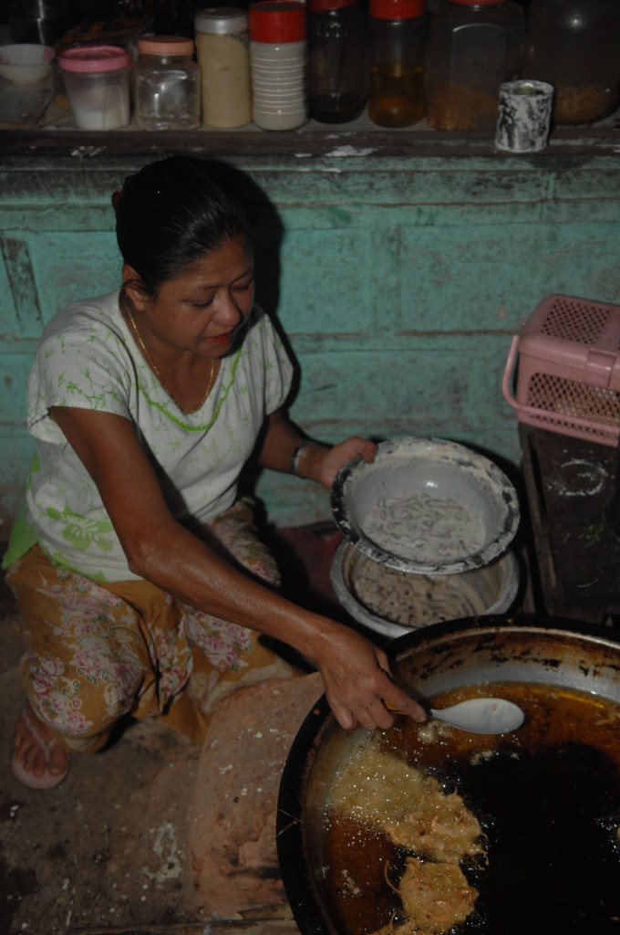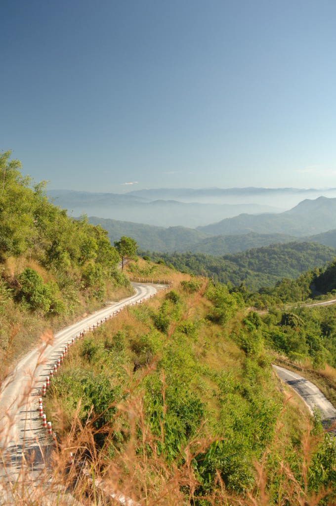 Nach einer kleinen Stärkung in einer Teestube am Wegesrand mit frischen gefüllten Krapfen nimmt Kyaw den Abzweig in die Berge. Schon bald erreichen wir den Kontrollposten, hinter dem die Kayin-Region beginnt. Das Gebiet war bis August 2014 noch für Ausländer gesperrt. Mittlerweile herrscht Friede zwischen den Karen-Rebellen und den Regierungstruppen. Für die Weiterfahrt genügt die Vorlage des Reisepasses mit gültigem Visum.