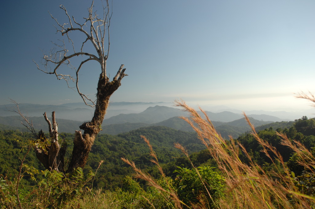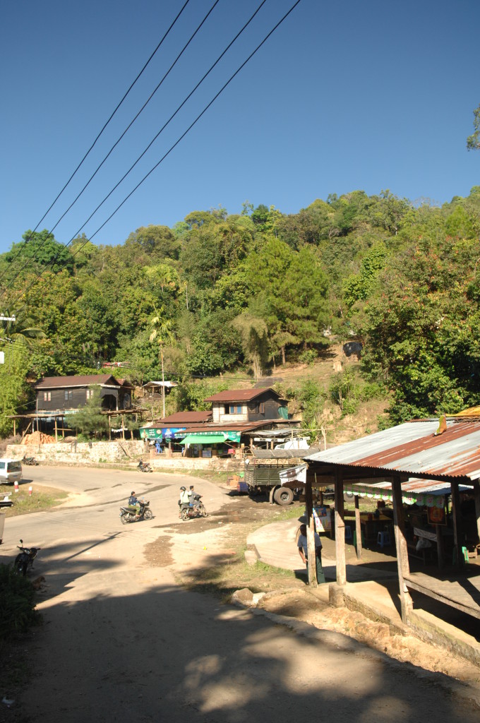 Anderthalb Stunden später erreichen wir den Bergort Than Daung Gyi. 1996, vor fast zwanzig Jahren, war er vom Tourismusministerium zu einem der wichtigsten neuen Reiseziele des Landes gekürt worden. Mit seinem milden, kühlen Bergklima ist er ein idealer Rückzugsort vom Trubel der Städte und der Hitze der Ebenen. Hotels wurden geplant, großzügig Grundstücke gekauft und die Bauten begonnen. Kurze Zeit später war die Hoffnung auf einen neuen Touristenmagneten schon wieder geplatzt. Die Kämpfe mit den Karen (Kayin) flammten auf, das Gebiet wurde für Ausländer gesperrt. Than Daung Gyi fiel in einen Dornröschenschlaf. Die Investoren der wenigen bereits fertiggestellten Hotels verließ die Hoffnung und die Gebäude begannen zu verfallen.