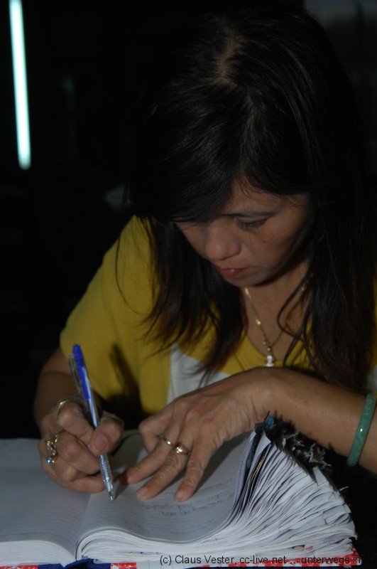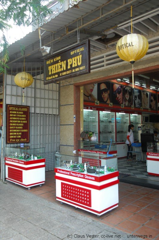 Nun hat es auch uns erwischt. Wir waren ja so standhaft bisher. Sind mit Scheuklappen und zugenähten Taschen durch die Gassen geschlendert. Doch manches Angebot ist einfach zu verlockend. Angefangen hat alles damit, dass wir einen Optiker suchen mussten, der Cosy‘s Sonnenbrille reparieren konnte. Aber Meister Thien Phu war sehr verkaufstüchtig und seine unschlagbar – verglichen selbst mit Fielmann-Preisen. Jetzt haben wir beide neu Markenbrillen zum Preis von Kassengestellen. Dabei wurden die Gläser in der vorangehenden Untersuchung gleich auf die aktuelle Sehstärke angepasst.