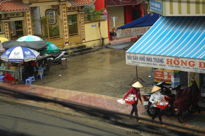 Um 6.45 sollten wir zum Busbahnhof gebracht werden, um den 7.15 Uhr Express-Bus nach Na Trang zu bekommen. Kein Problem. Sollte man meinen. Dann klingelt um kurz vor sechs das Telefon. Eine aufgeregte Hotelangestellte verlangt den Checkout. Sofort. „Checkout before six. Driver comes.“ Aber wir haben doch keinen Fahrer für diese Zeit bestellt. „Yes bus.“ Diskussion zwecklos. Zum Glück ist alles schon gepackt. Also schnell nach unten. Mit dem Frühstück wird das wohl nichts mehr.
