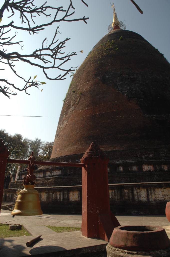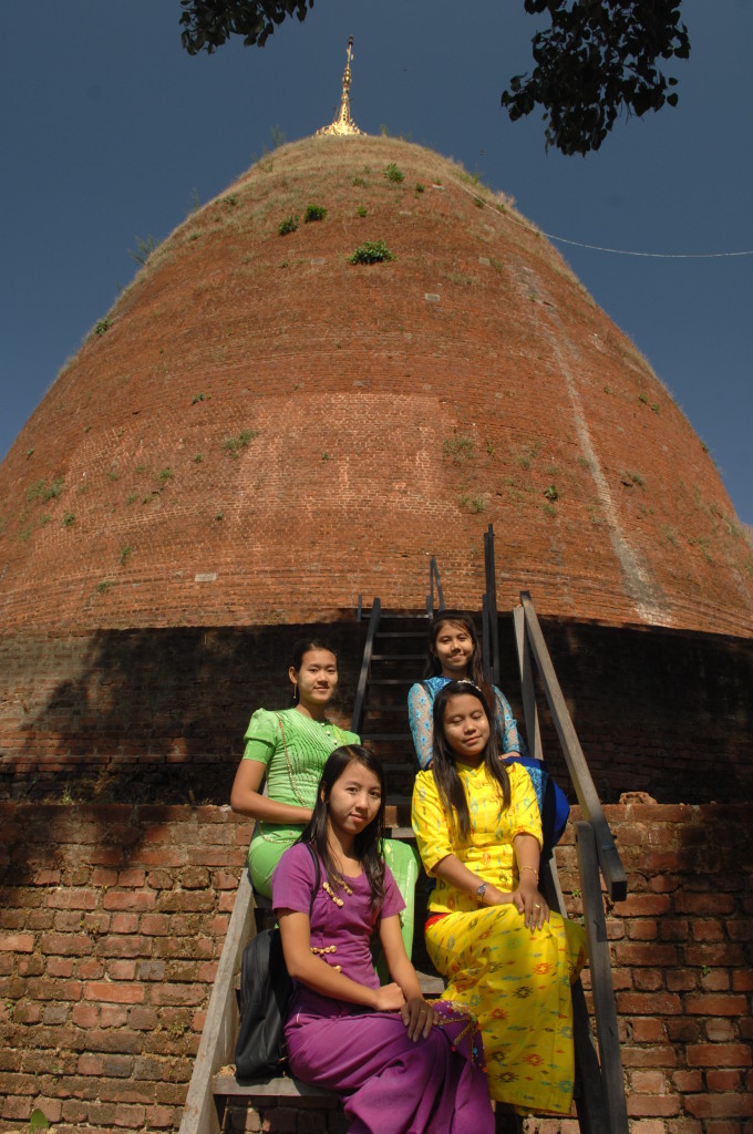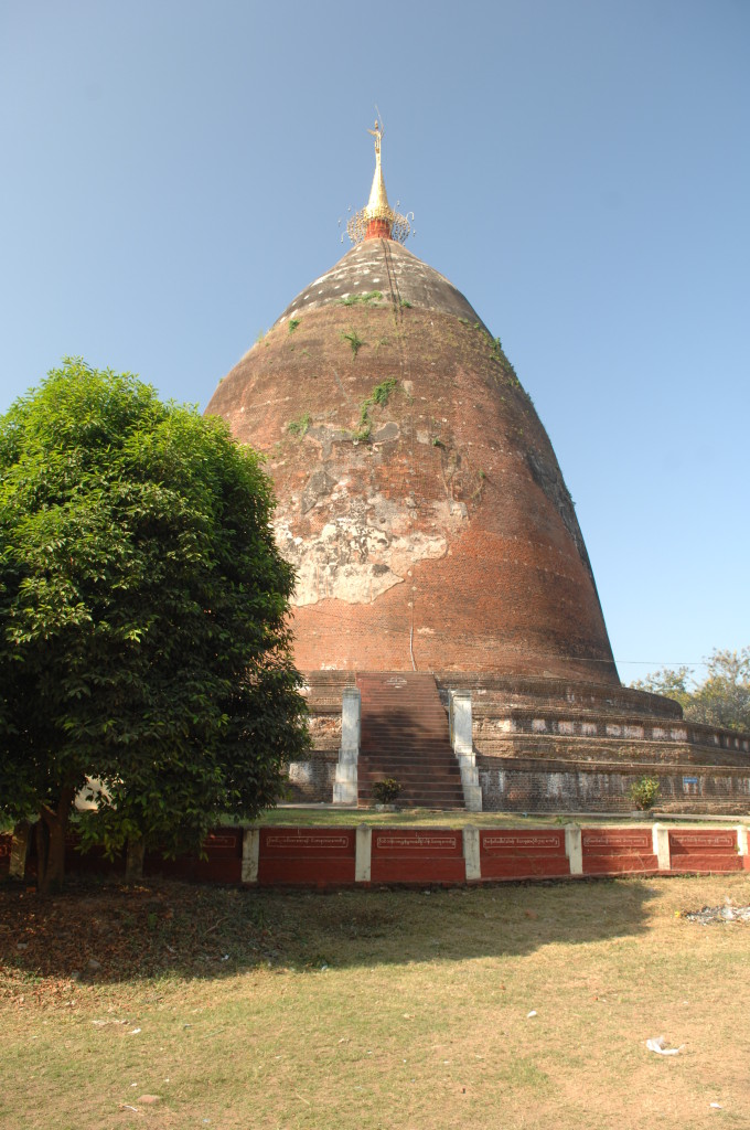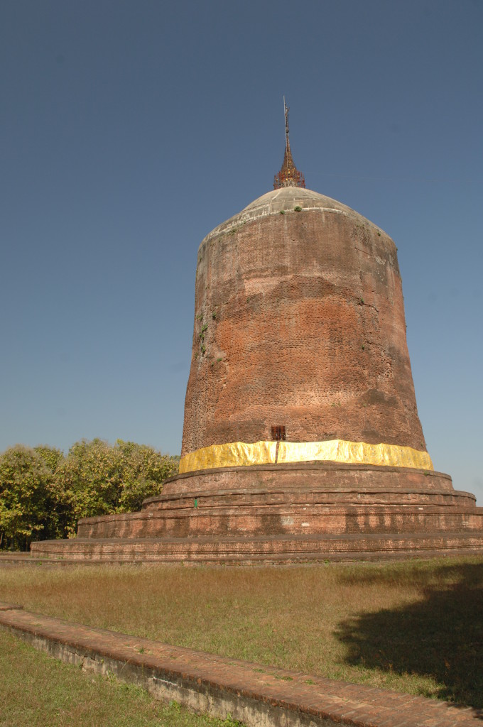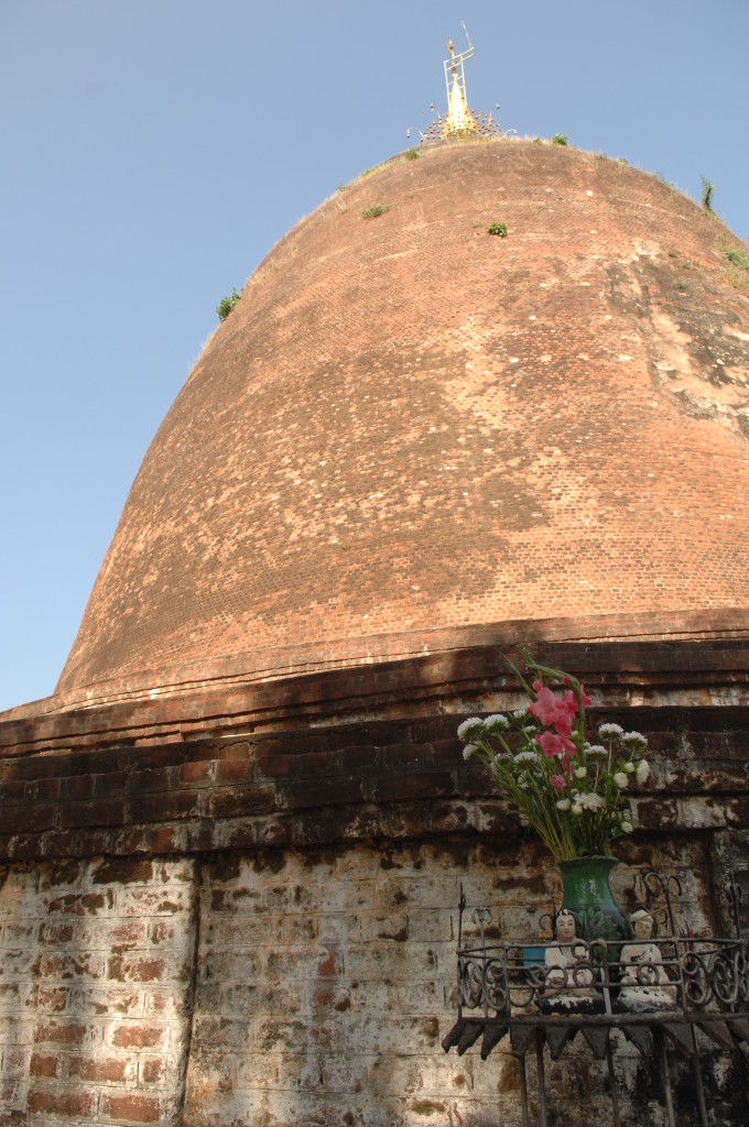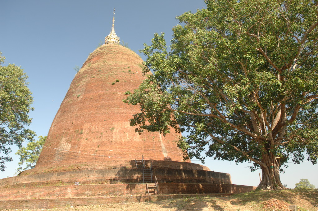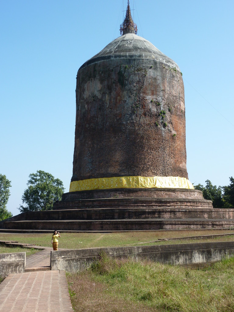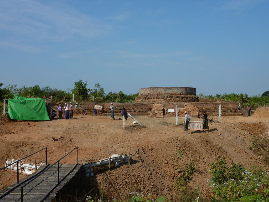 Unsere Tour durch das östlich von Pyay liegende Ausgrabungsgebiet starten wir mit einem Besuch der Paya Gyi Stupa (Große Pagode). Sie wurde im 6. – 7. Jhdt errichtet und gilt mit ihrer Form als Vorbild für die unzähligen buddhistische Zedis des Landes.