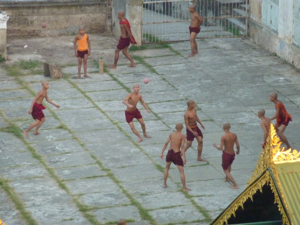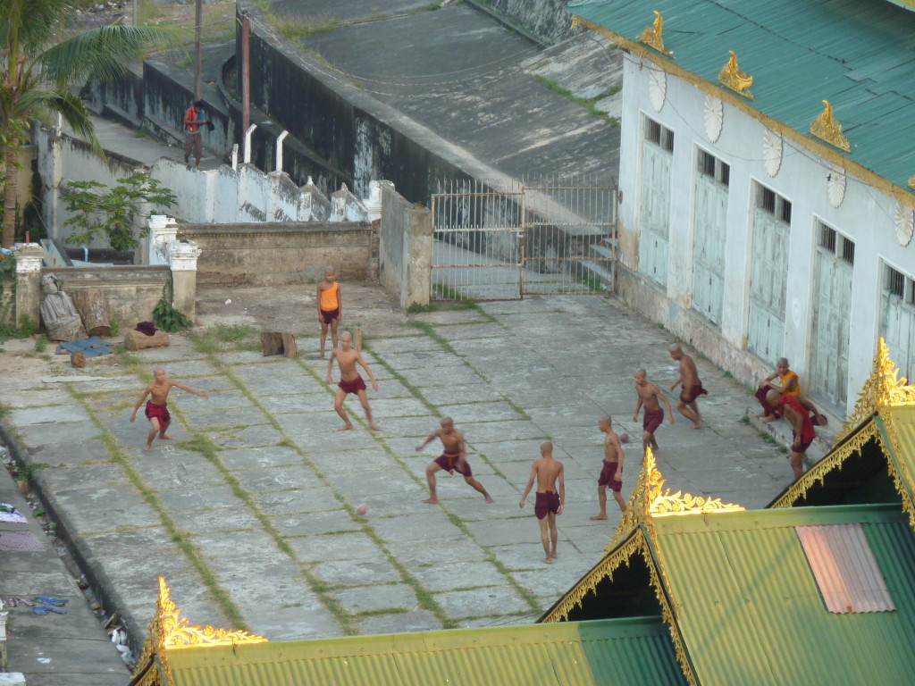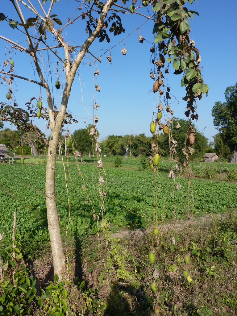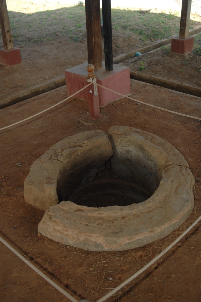 Wir folgen dem sandigen Feldweg zum Nat Pauk (Geister-Tor) im Norden von Sri Ksetra, das ebenfalls auf das 4. – 7. Jhdt. datiert wird. Von den Außenmauern des Durchgangs wurde nur die östliche freigelegt. Die 2009 – 2010 ausgegrabene Ziegelkonstruktion erstreckt sich über eine Länge von 30,6 m bei einer Breite von 11,3 m und einer Höhe von 4 m. Von der gegenüberliegenden Mauer ist nichts zu sehen. Sie dient noch immer als Fundament der Straße zum Dorf Hmawza.
