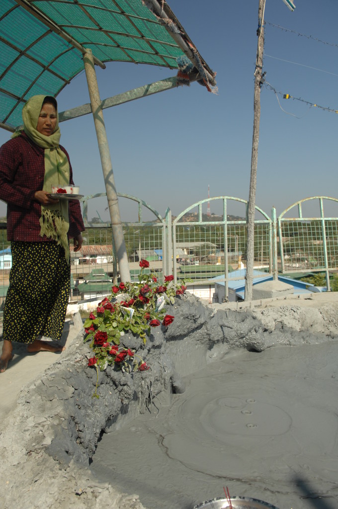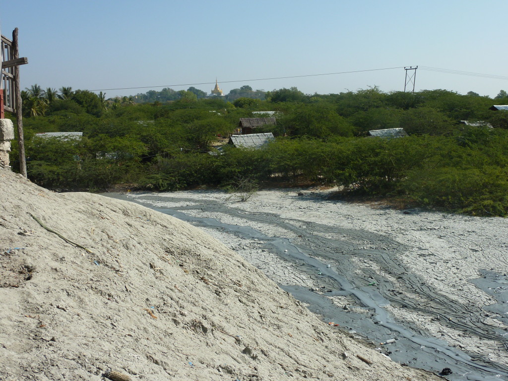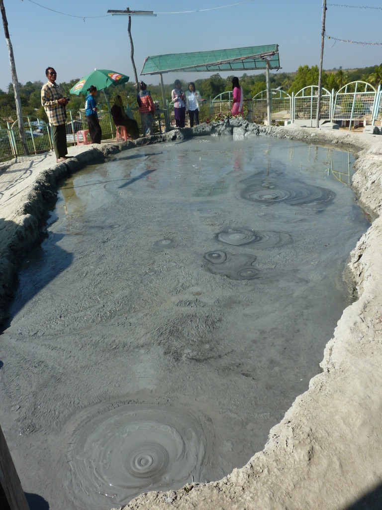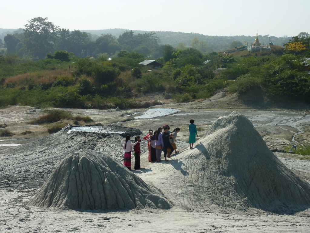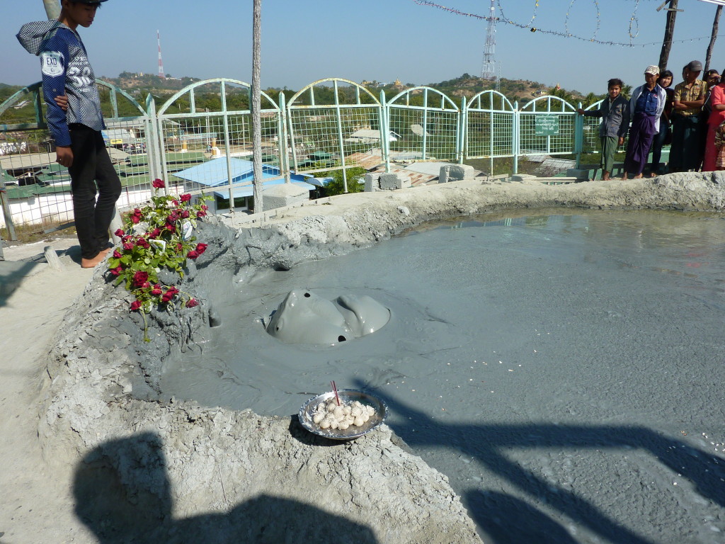 Am westlichen Ufer des Irrawaddy , gegenüber von Magway liegt die Stadt Minbu. Sie ist für ihre Schlammvulkane bekannt. Der Name Nagapwet Mount Pagoda macht klar, wer für das Naturwunder verantwortlich gemacht wird. Er bedeutet schlicht: Blubbernde Schlange (Naga). Hört sich spektakulärer an, als es ist. In den Kratern mehrerer, bis zu 10 Meter hoher Hügel steigen behäbig dicke Schlammblasen auf. Es riecht nur dezent nach Schwefel. Der flüssige Schlamm ist nicht heiß, noch nicht einmal lauwarm. Vielleicht liegt es ja an den regelmäßigen Opfergaben – verdünnte Milch und Popcorn – mit denen er regelmäßig „gefüttert“ wird, dass er so friedlich vor sich hin blubbert.