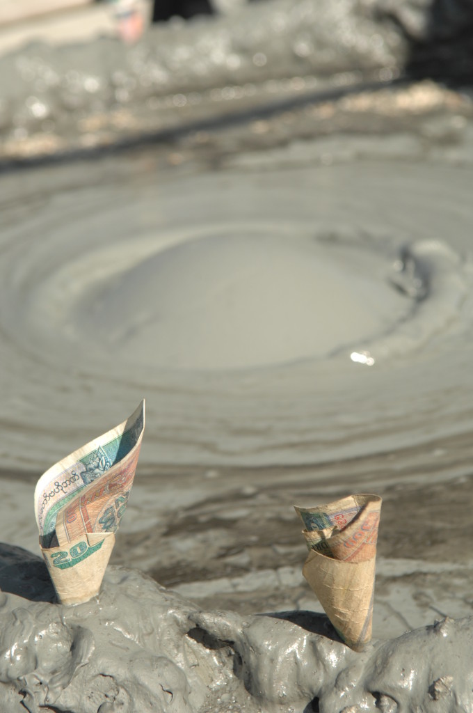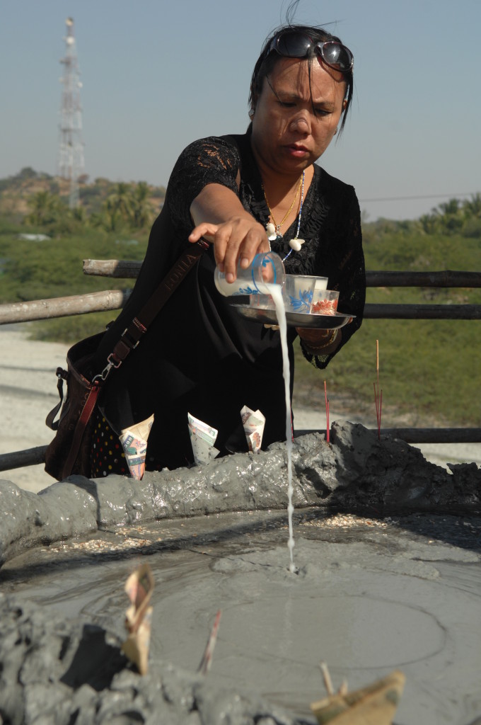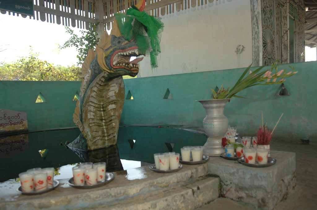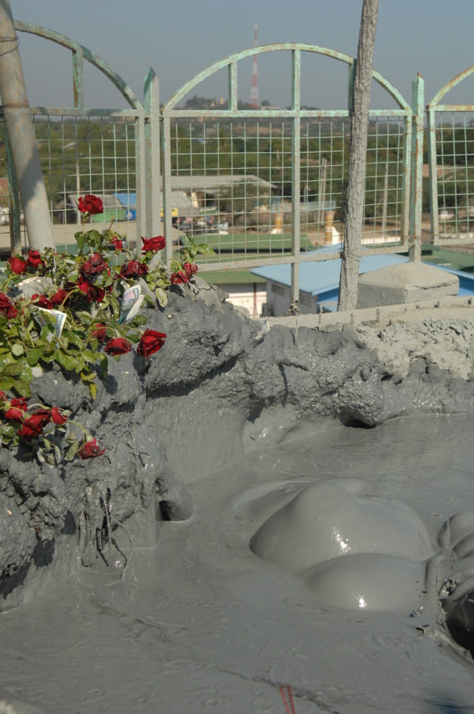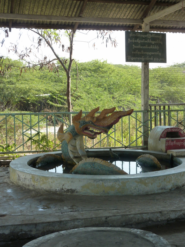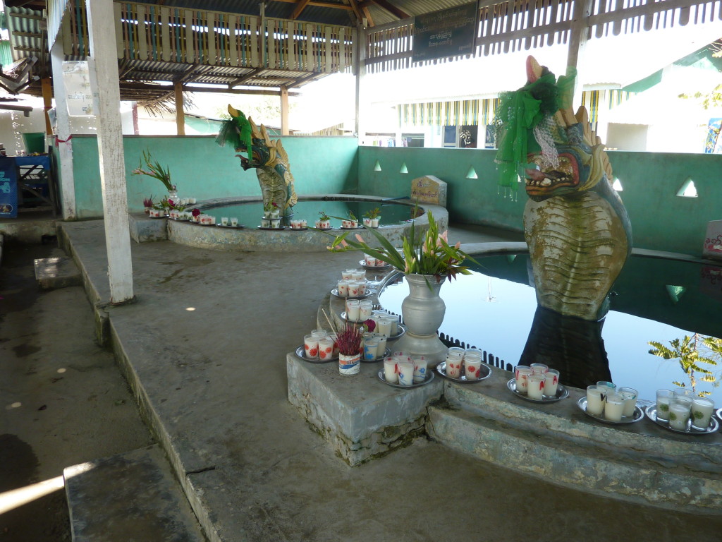 Am westlichen Ufer des Irrawaddy , gegenüber von Magway liegt die Stadt Minbu. Sie ist für ihre Schlammvulkane bekannt. Der Name Nagapwet Mount Pagoda macht klar, wer für das Naturwunder verantwortlich gemacht wird. Er bedeutet schlicht: Blubbernde Schlange (Naga). Hört sich spektakulärer an, als es ist. In den Kratern mehrerer, bis zu 10 Meter hoher Hügel steigen behäbig dicke Schlammblasen auf. Es riecht nur dezent nach Schwefel. Der flüssige Schlamm ist nicht heiß, noch nicht einmal lauwarm. Vielleicht liegt es ja an den regelmäßigen Opfergaben – verdünnte Milch und Popcorn – mit denen er regelmäßig „gefüttert“ wird, dass er so friedlich vor sich hin blubbert.