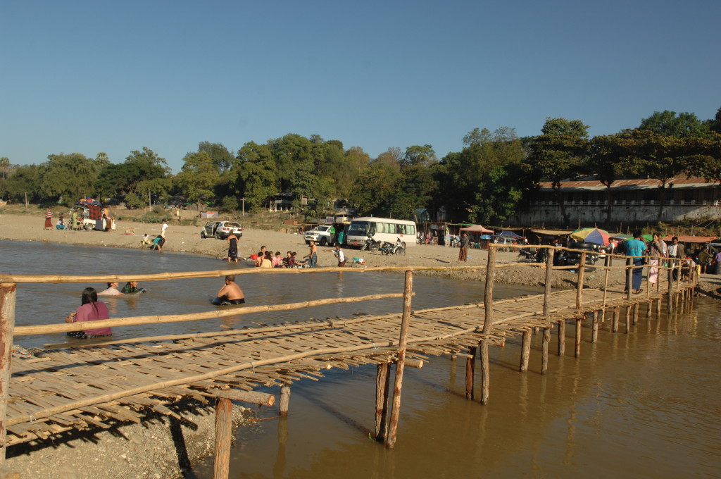 Auf den breiten Kiesbänken findet jedes Jahr von Mitte Januar bis Mitte April eines der größten Pagodenfestivals des Landes statt. Ende Dezember sind die Vorbereitungen bereits im vollen Gange. Die ersten Hütten stehen schon. Bis zum Beginn der Festlichkeiten werden sich die gesamte Fläche in ein kleines Dorf aus Bambushütten verwandelt haben.