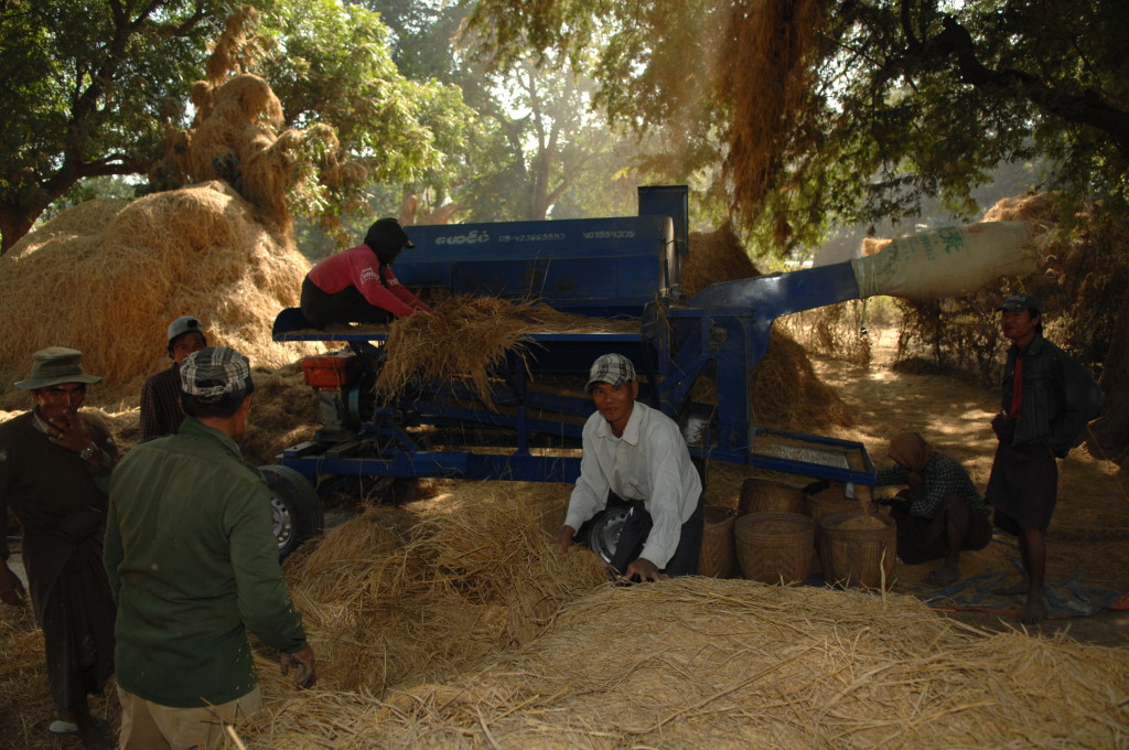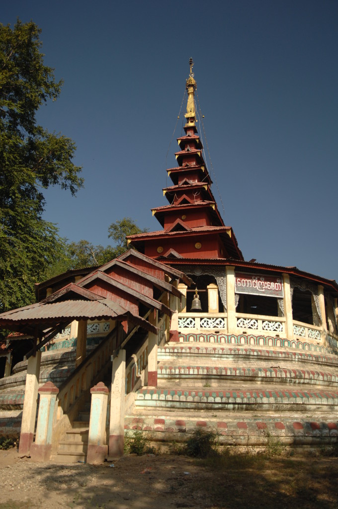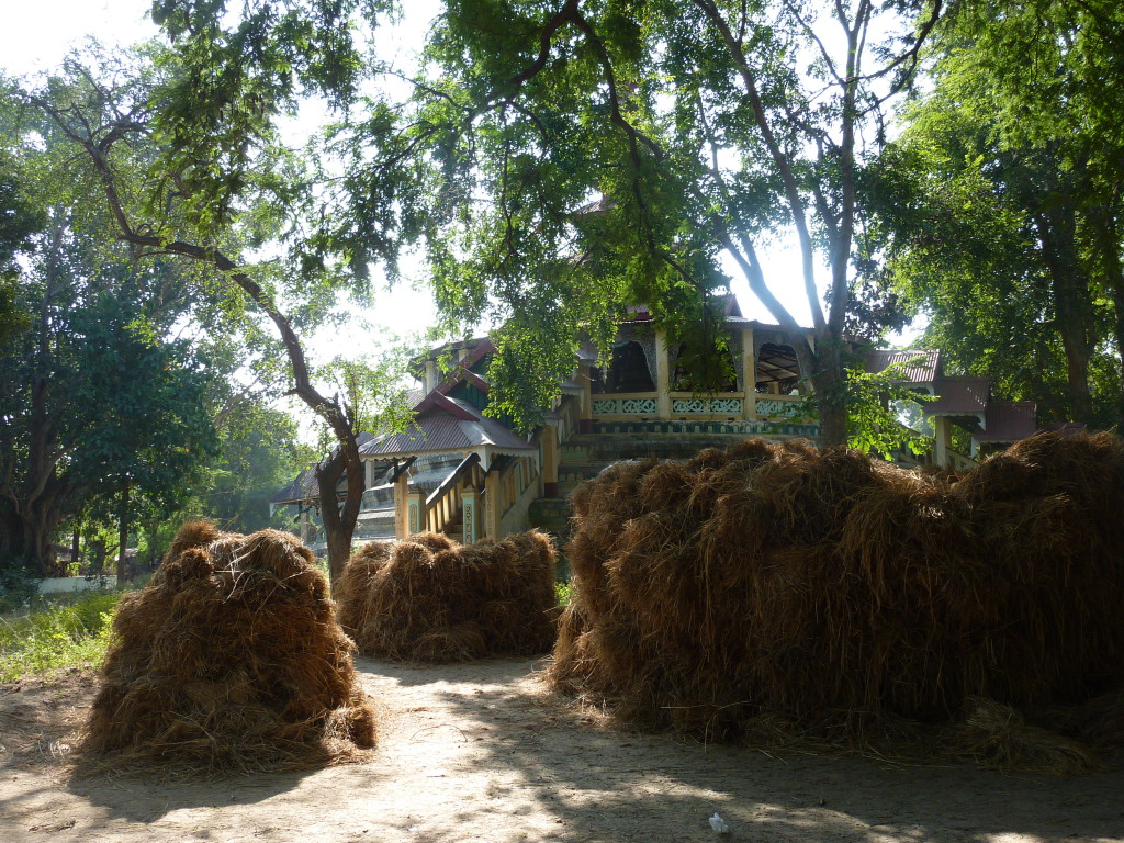 Nördlich von Magway, 16 km westlich von Minbu erreichen wir Sagu. Nicht jedes Kloster ist ein Ort der Ruhe und Meditation. Am Ortseingang nutzen die Einheimischen jeden freien Meter des Geländes zwischen den Gebäuden des Thet Taw Shaw zum Dreschen ihrer Reisernte. Verlassen ist das Kloster aber nicht. Ein älterer Mönch hat seine Klause im hinteren Bereich des hölzernen Hauptgebäudes bezogen. Holzschnitzereien finden wir dort keine mehr. Häufig wurden und werden diese im Schutz der Dunkelheit gestohlen und als Antiquitäten teuer an Touristen verkauft.