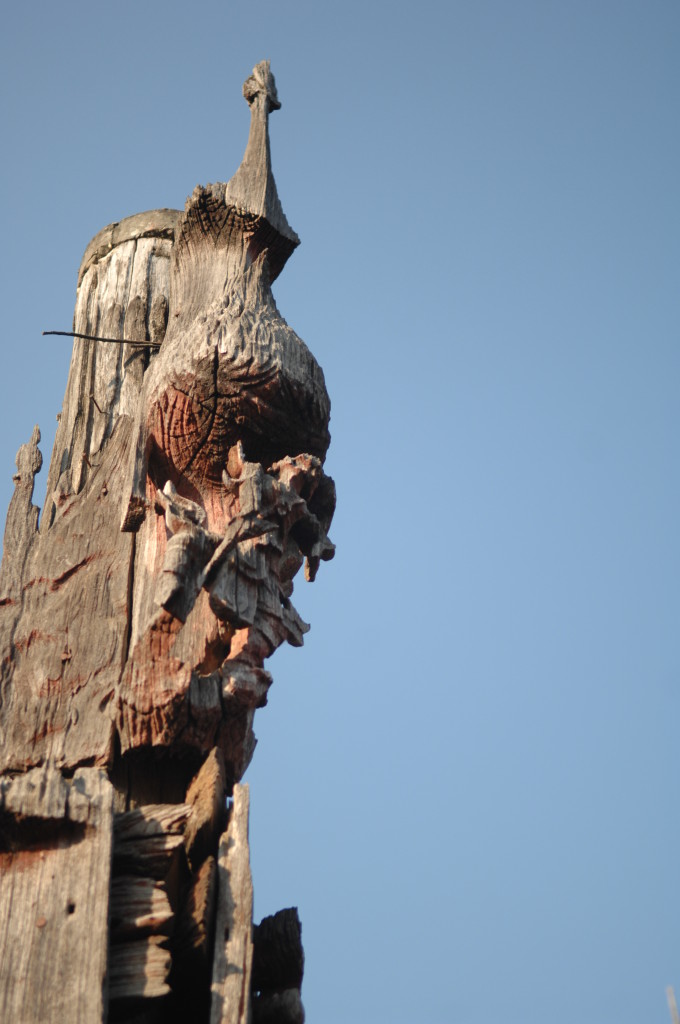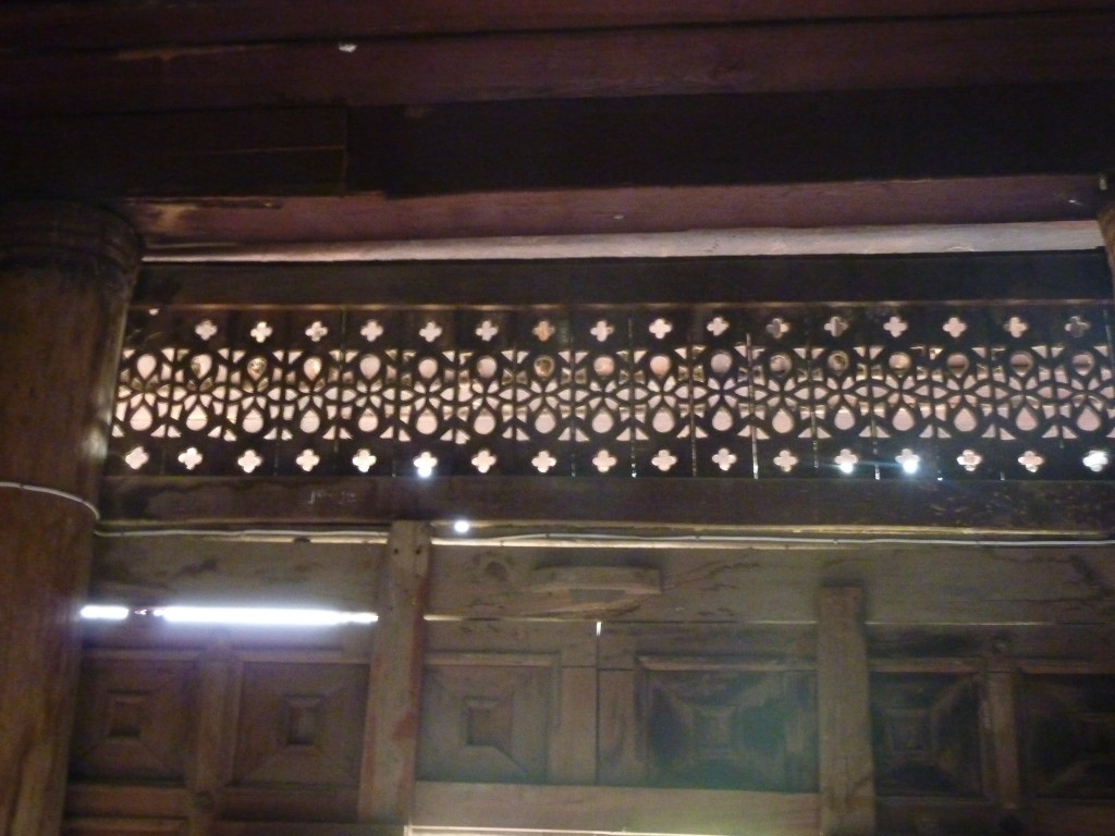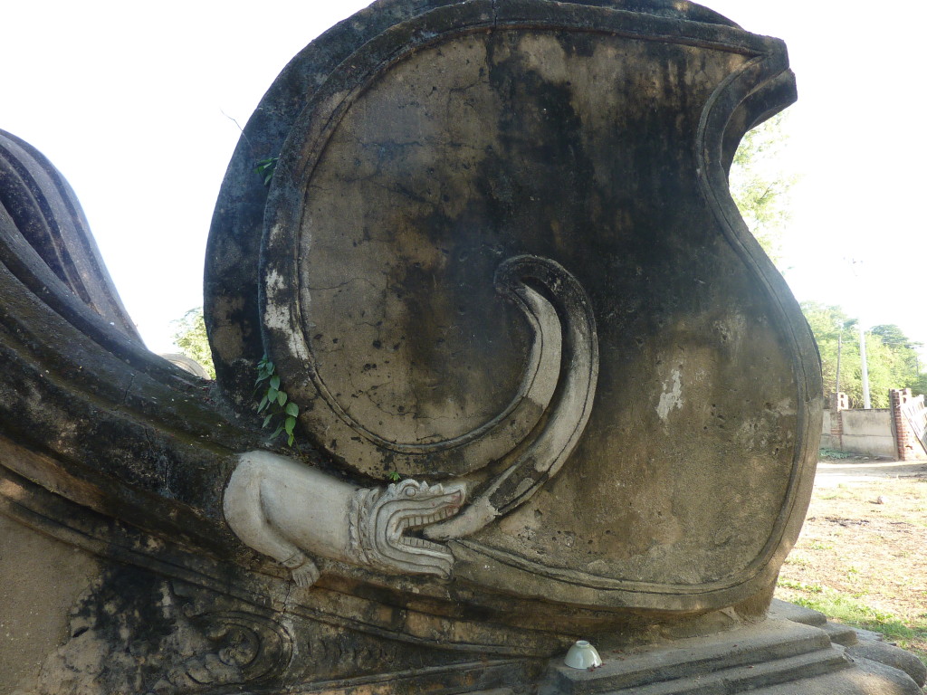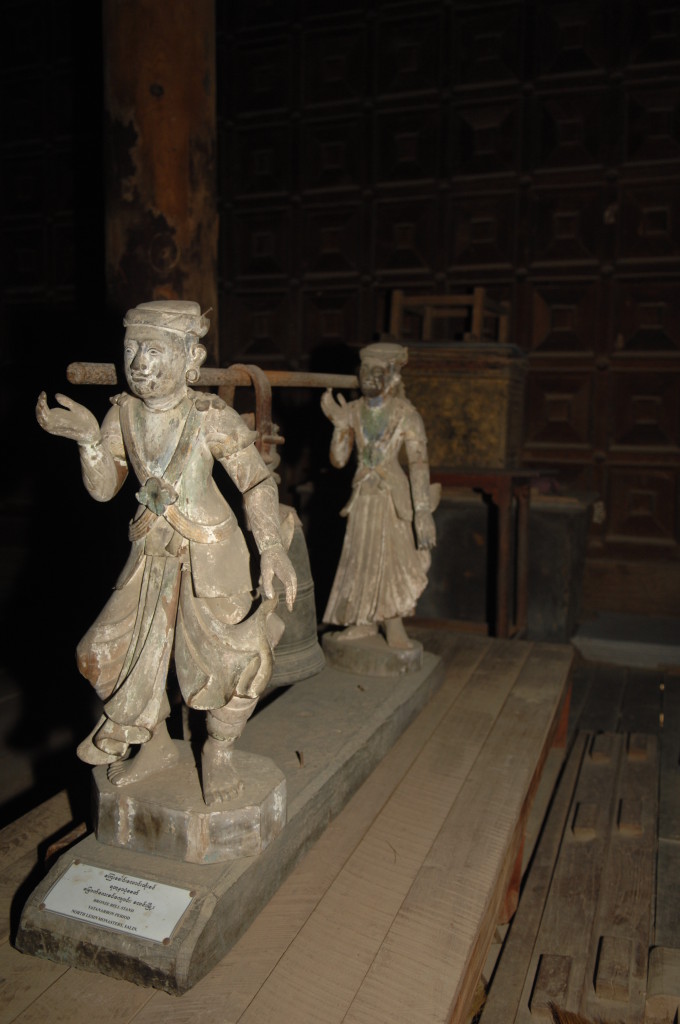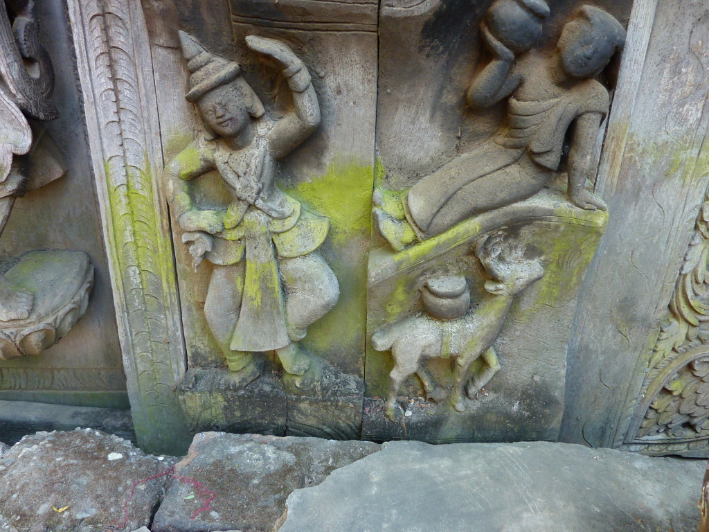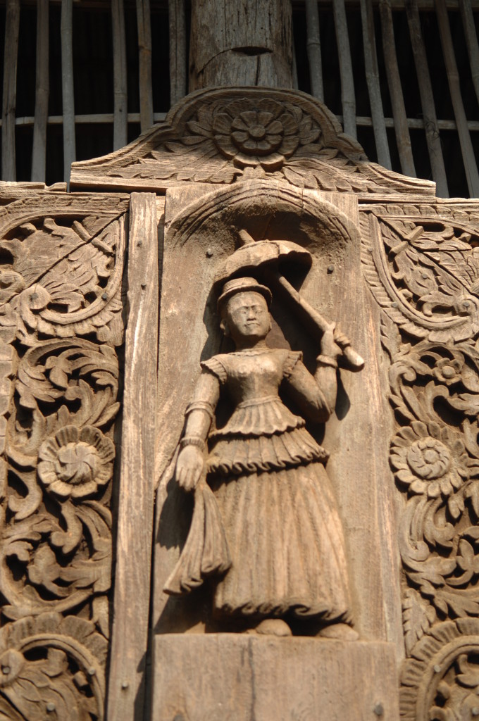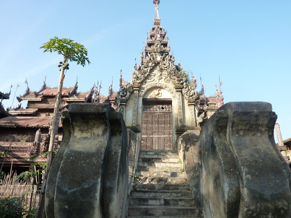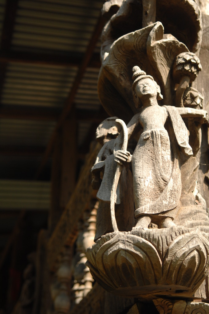 Die Schnitzereien sind weitgehend vollständig erhalten, befinden sich aber in einem deutlich schlechteren Zustand als bei dem zuvor besuchten Kloster. Was hier beeindruckt ist die Vielfalt und Menge der sich bis über die Veranda und die mehrstöckigen Dächer ausbreitenden Kunstwerke und Ornamente aus Teak.
