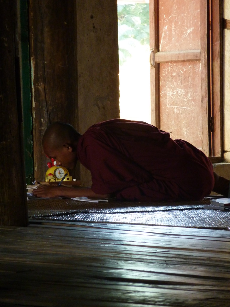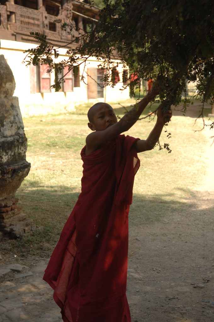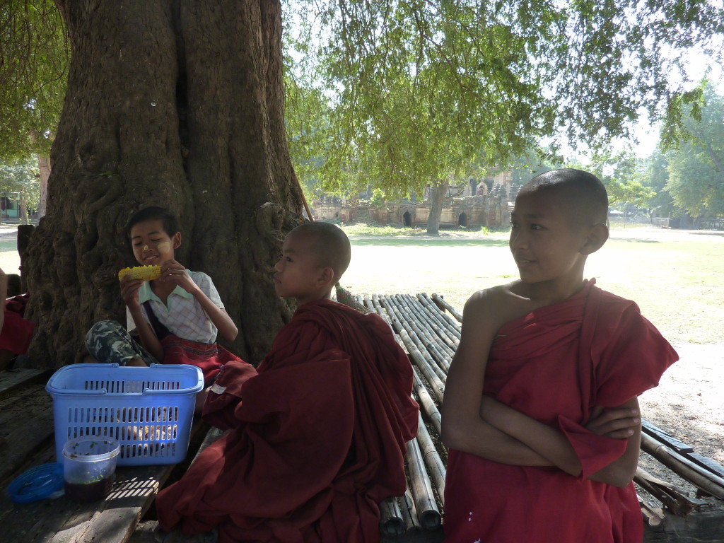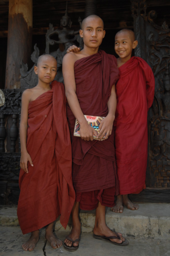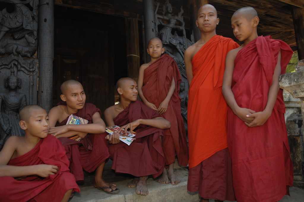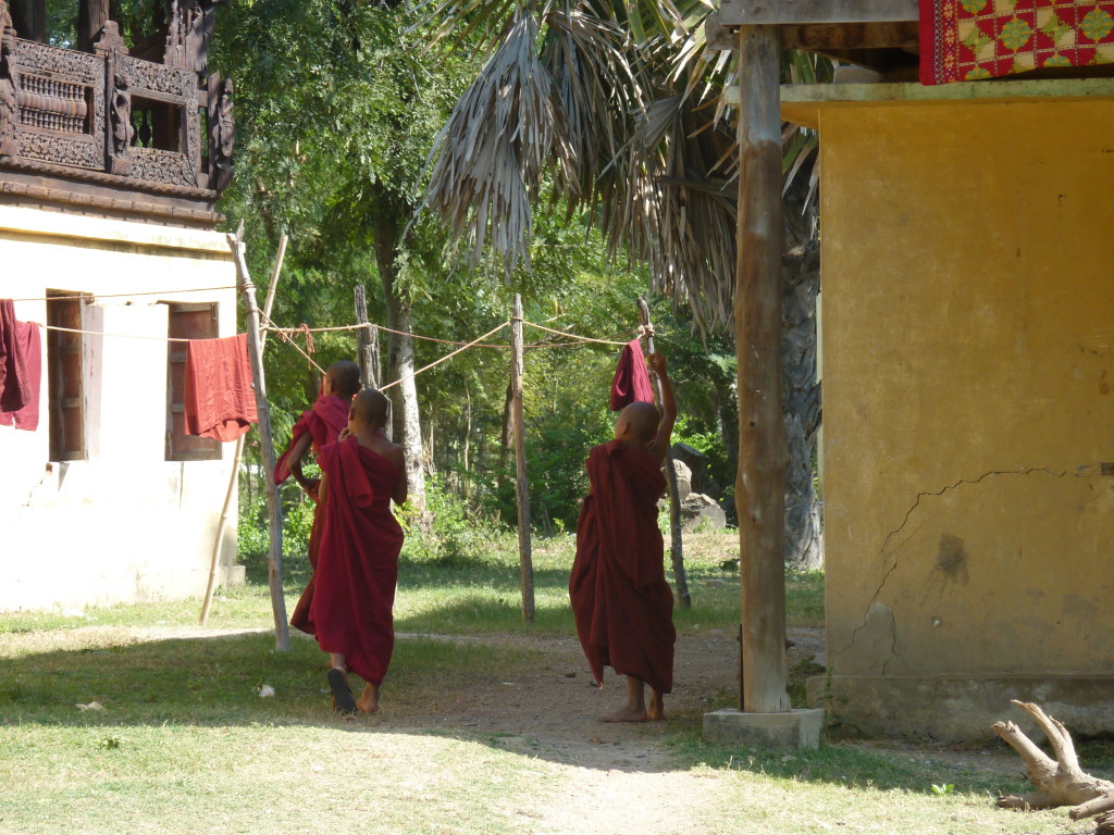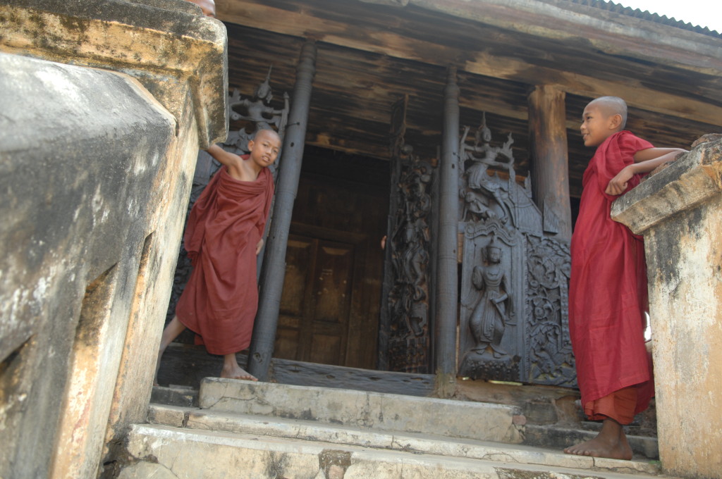 Im Inneren des Hauptgebäudes befinden sich eine kleine Ausstellung zahlreicher Buddha-Statuen und eine Dokumentation der Rettung des Gebäudes. Eine Fotowand zeigt Bilder vom Besuch einer Reisegruppe eines deutschen Veranstalters. Der sponsert clever die Initiation junger Novizen und kann so die auf einen Tag verkürzte Zeremonie seinen Kunden als Highlight einer Reise anbieten. Die brauchen auf den gewohnten Komfort nicht zu verzichten, die die Hotels in Bagan bieten. Von dort sind es nur zwei Stunden Fahrt bis nach Salin. Will man die Zeremonie der „Zuflucht zu den Drei Juwelen“ dagegen authentisch in ganzer Länge erleben, muss man sich nicht nur mehr Zeit nehmen, sondern auch das Glück haben, eine Gelegenheit zu nutzen, die am Wegesrand warten kann. Beste Chancen zwischen Weihnachten und Neujahr…