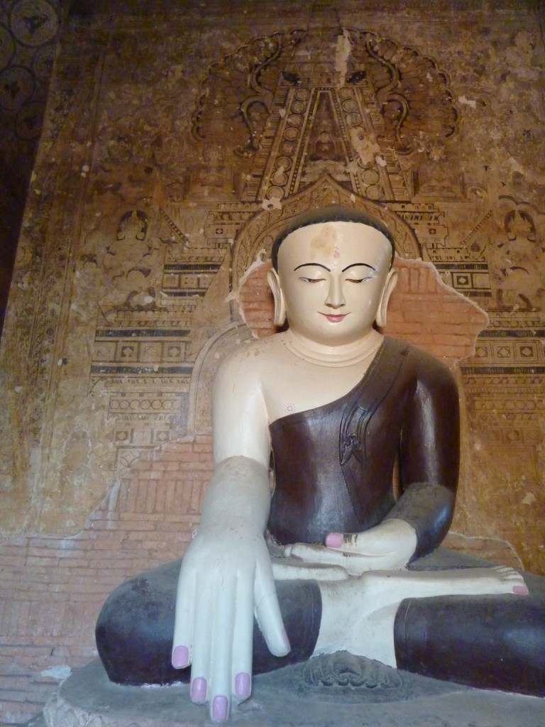 Über den Jahreswechsel haben wir uns in Bagan einquartiert. Nach einem erholsamen Tag in der Hotelanlage organisieren wir einen Fahrer, mit dem wir eine Rundtour zu speziellen Tempeln machen wollen. Dieses Mal interessieren uns vor allem die Malereien in den Heiligtümern, die aus verschiedenen Zeitperioden und in unterschiedlichem Zustand in einigen zu finden sind. Nachdem wir Kwaw Kwaw die Liste gegeben haben und er sie in eine sinnvolle Reihenfolge gebracht hat, geht es los.