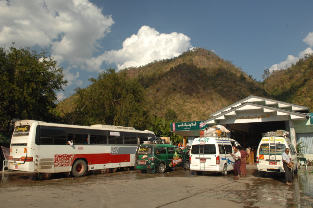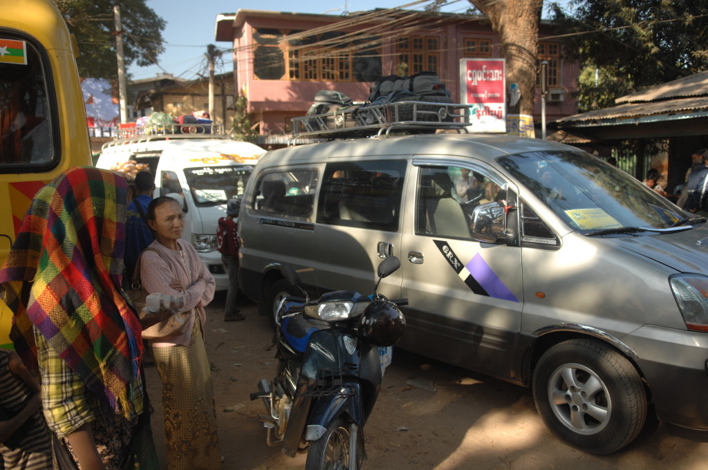 Nach einem weiteren Erholungstag in Bagan wollen wir in die Berge nach Kalaw. Ein Minivan holt uns direkt am Hotel ab, sammelt noch zwei Franzosen aus Nizza, drei Schweizer aus Genf in Neu-Bagan und zwei Einheimische in Nyaung U ein und um halb Neun sind wir wieder on the road. Die Strecke sind wir bereits vor vier Jahren in acht Stunden mit unserem Fahrer Kyaw gefahren. Die Straße soll sich jetzt aber in deutlich besserem Zustand befinden.