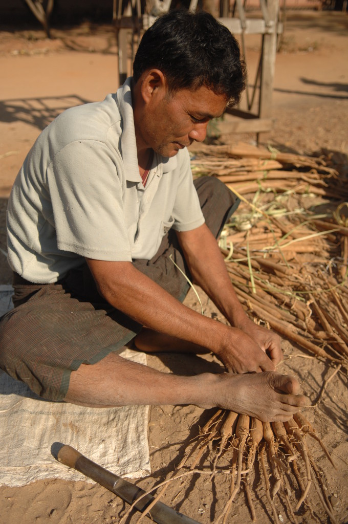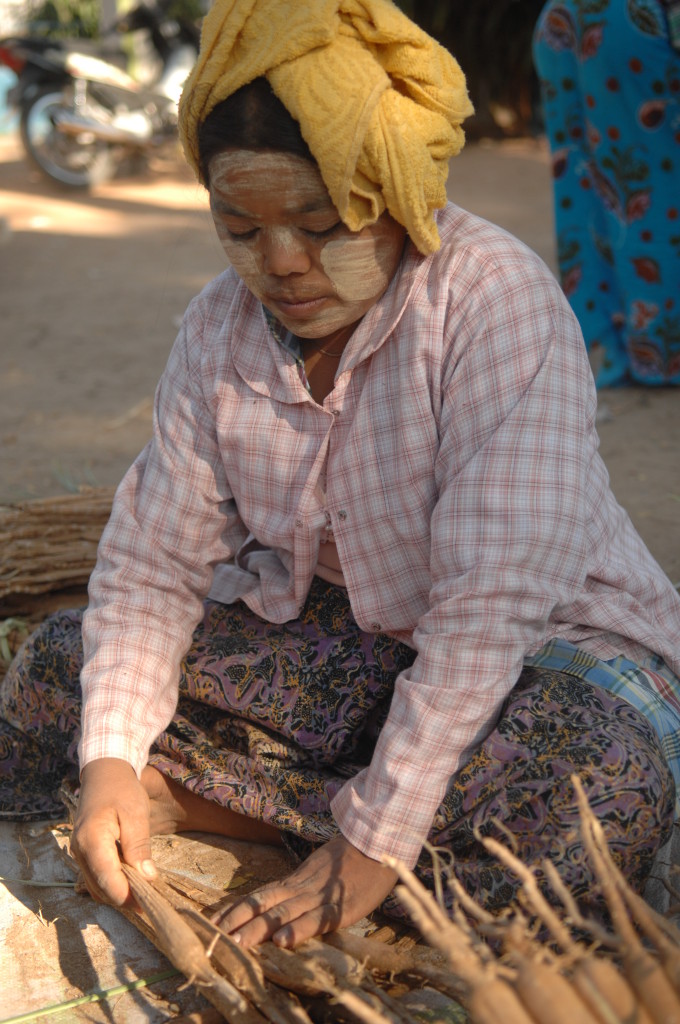 Allmählich ändert sich das Landschaftsbild. In der fruchtbaren Ebene um den Ort Thazi wachsen um diese Zeit vor allem Wassermelonen und Chili. Links kommen allmählich die Berge in Sicht und die Straße verläuft entlang der Eisenbahnschienen. Wieder beherrscht eine dürre Savanne die Szenerie. Am Straßenrand tauchen jetzt zahlreiche große Teakholz-Lager auf, die toten Reste der abgeholzten Wälder der vor uns liegenden Bergregion.