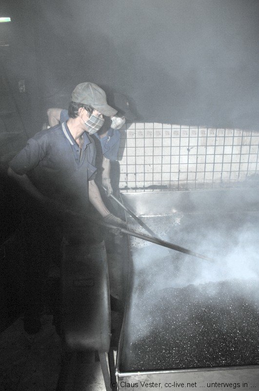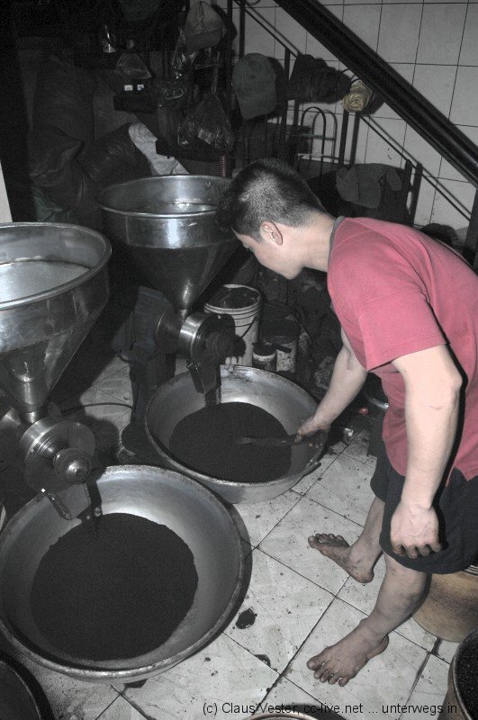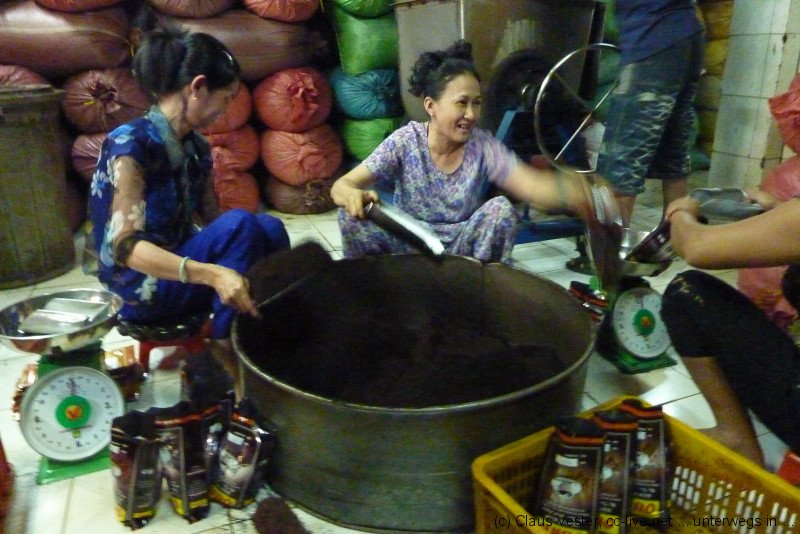 Da wir noch etwas Zeit bis zur Weiterfahrt haben, steht einem Besuch der Kaffeerösterei Quan Cafe nichts im Wege. Wir erfahren, das typische Aroma des vietnamesischen Kaffees hat in einigen Zutaten beim Rösten seinen Ursprung. So wird beispielsweise Kakaobutter hinzugefügt, was dem Kaffee aus den so behandelten Bohnen den unverwechselbaren schokoladigen Geschmack verleiht.