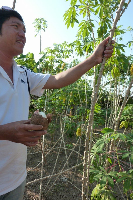 Die Fahrt nach Can Tho führt durch endlose Reisfelder. Im Delta wird 50 Prozent der gesamten Reisernte Vietnams produziert. Nur einmal war das anders. Zwischen 1975 und 1982 wurde der Reis knapp, als die Produktion der landwirtschaftlichen Produkte von privaten Erzeugern auf Kooperativen umgestellt wurde und unter anderem verstärkt Tapioka angebaut wurde. Heute sind Tapiokafelder eher selten. Eines von ihnen besuchen wir in der Nähe von Tra Vinh.