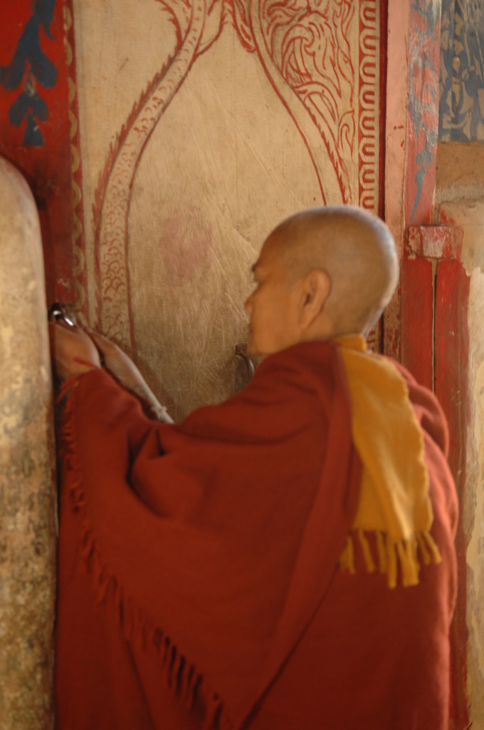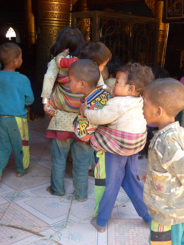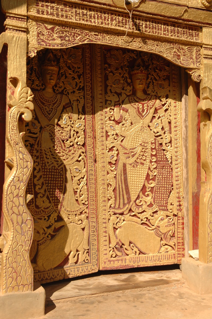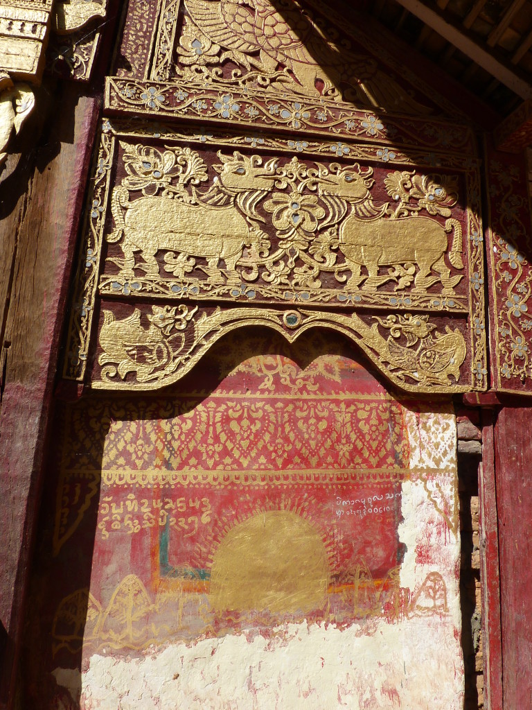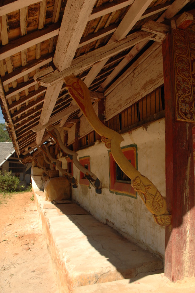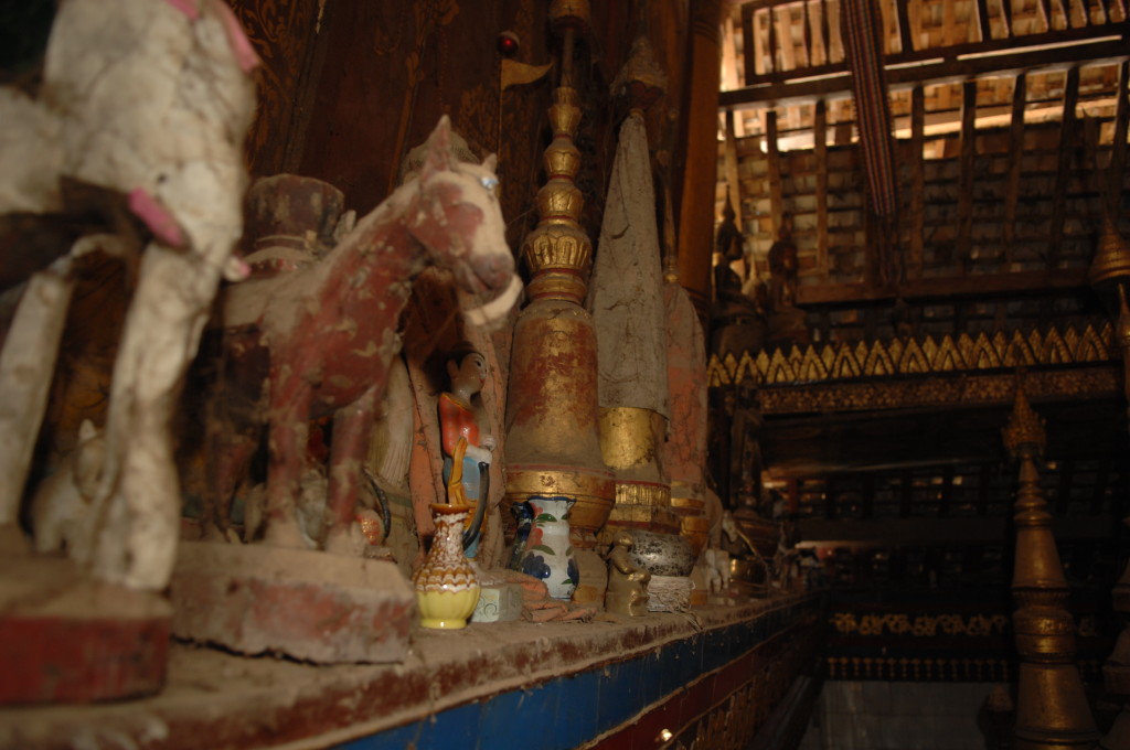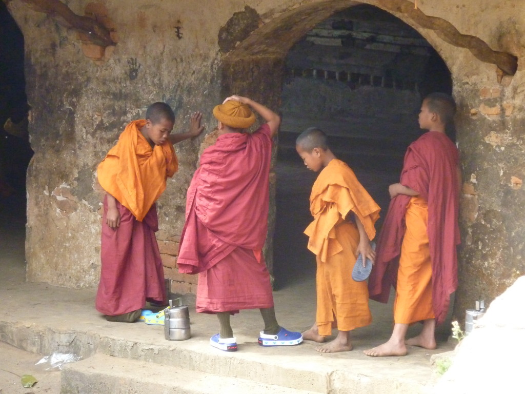 Das Kloster wurde im 16. Jhdt. erbaut und liegt auf einer Lichtung im Bergwald. Mit den Teak-Klöstern, die wir auf der Fahrt nach Bagan besucht haben, hat es wenig gemein. Die Bauweise erinnert mal an die nord-laotische, mal an die tibetische Architektur vergleichbarer Gebäude. Die reichhaltig mit Schnitzereien, Holzmalereien und Mosaiken versehene Ausstattung im Inneren ist ebenfalls ungewöhnlich.