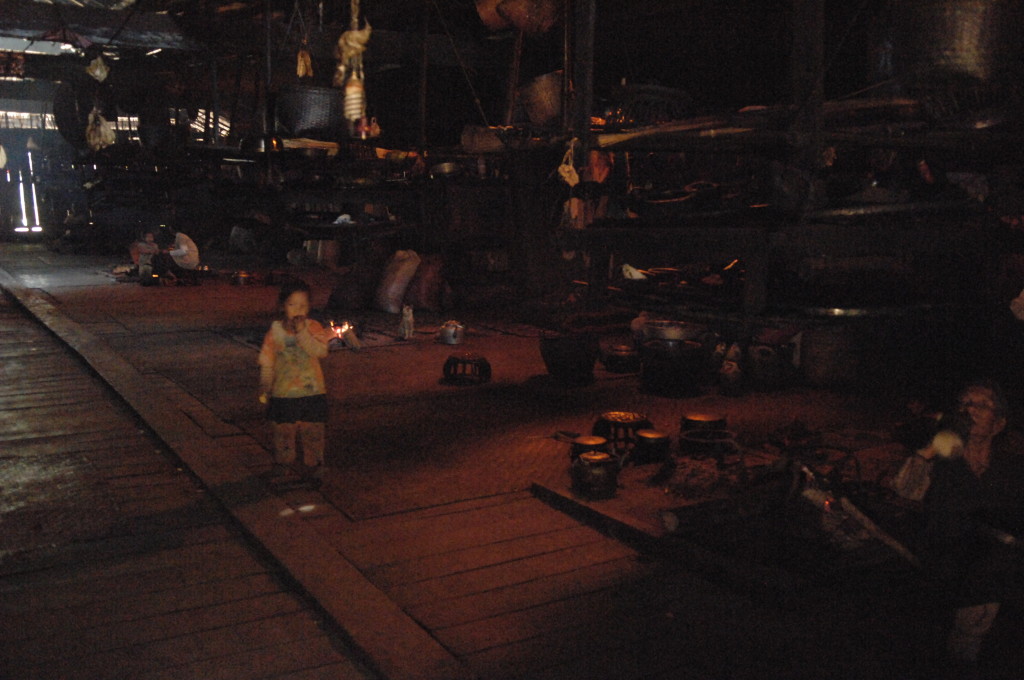 Unterhalb der Klosteranlage befindet sich das Dorf Wan Seng. Hier wohnen in sieben Langhäusern mit je zwölf Familien rund 700 Loi Wa. So etwas wie Privatsphäre gibt es nicht in den hallenartigen Gebäuden. Zwischenwände sucht man vergeblich. Auf den Holzplanken zwischen den Feuerstellen liegen einfache Strohmatten, an den Außenwänden stapeln sich Reissäcke. Neben dem Sammeln von Feuerholz und der Jagd mit langen Flinten verdienen sie sich mit dem Anbau von Tee ein wenig Geld für den zusätzlichen Lebensbedarf.