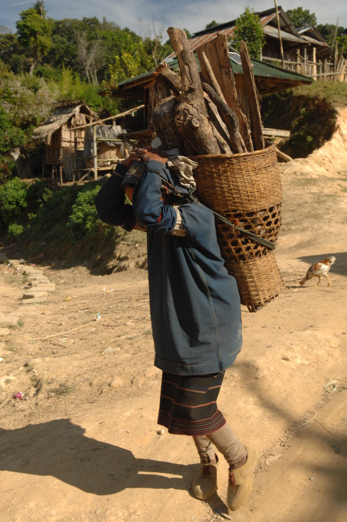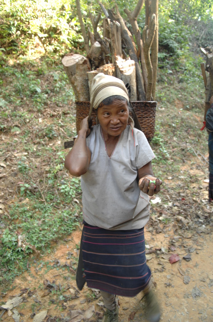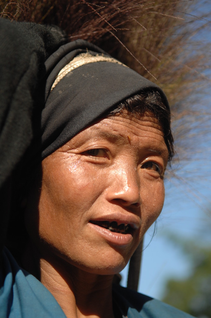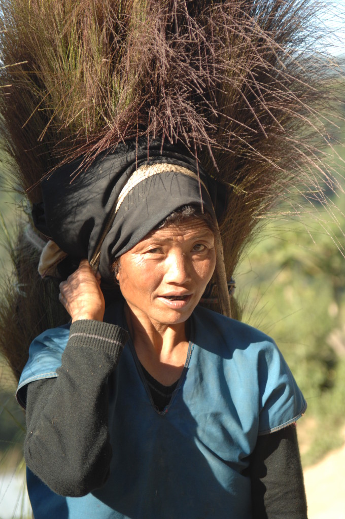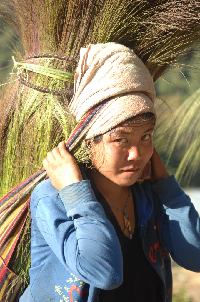 Der Rohstoff wird von den Frauen weiter bergab in der benötigten Länge geschnitten und in großen Taschen auf dem Rücken zum Dorf transportiert. Wir begegnen den Trägerinnen auf unserem Weg zurück zur Hauptstraße, während uns die Männer mit ihren geschulterten Langbüchsen auf Mopeds entgegen kommen.