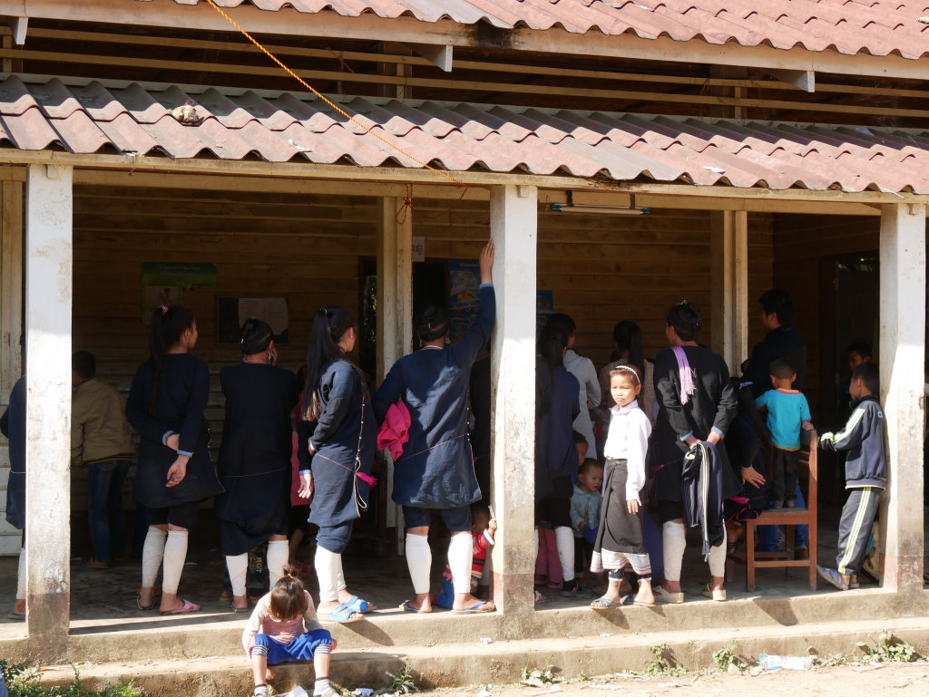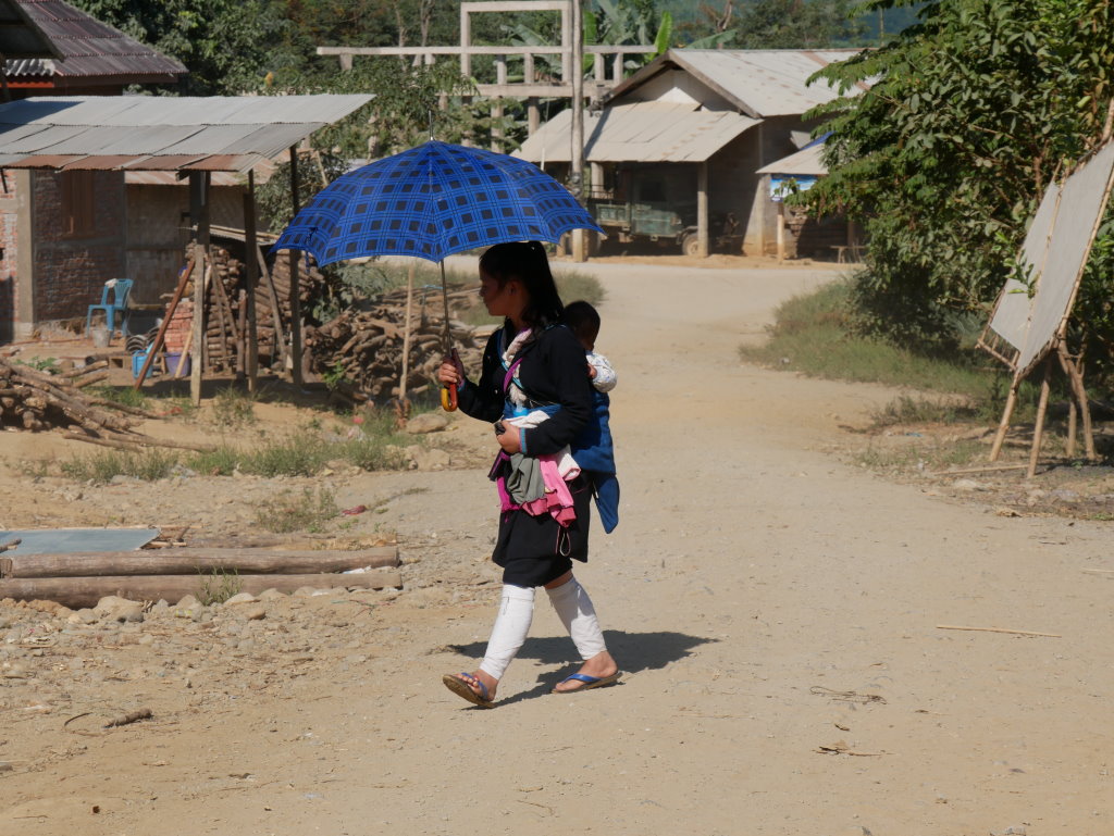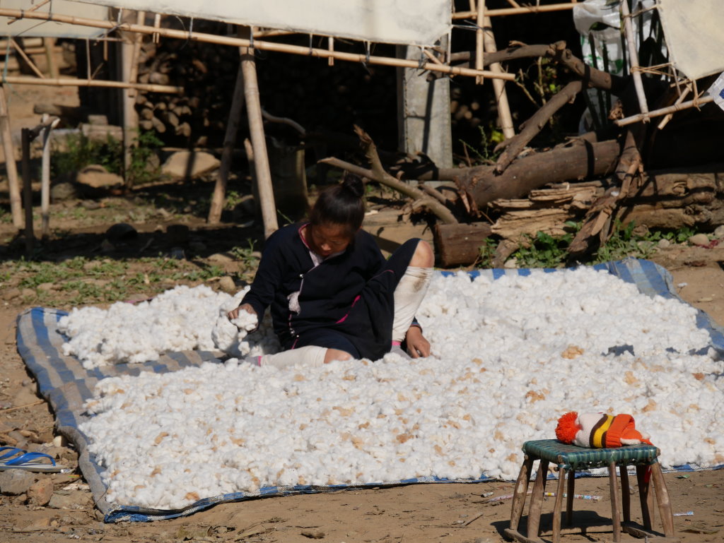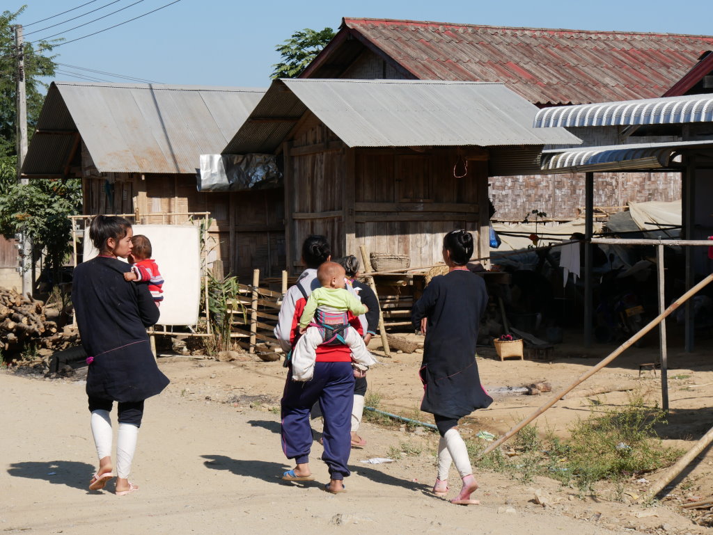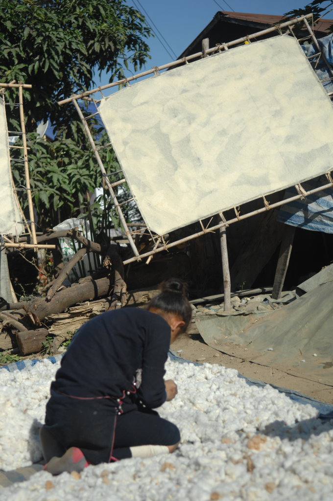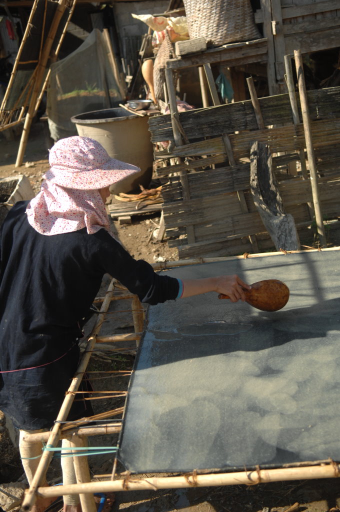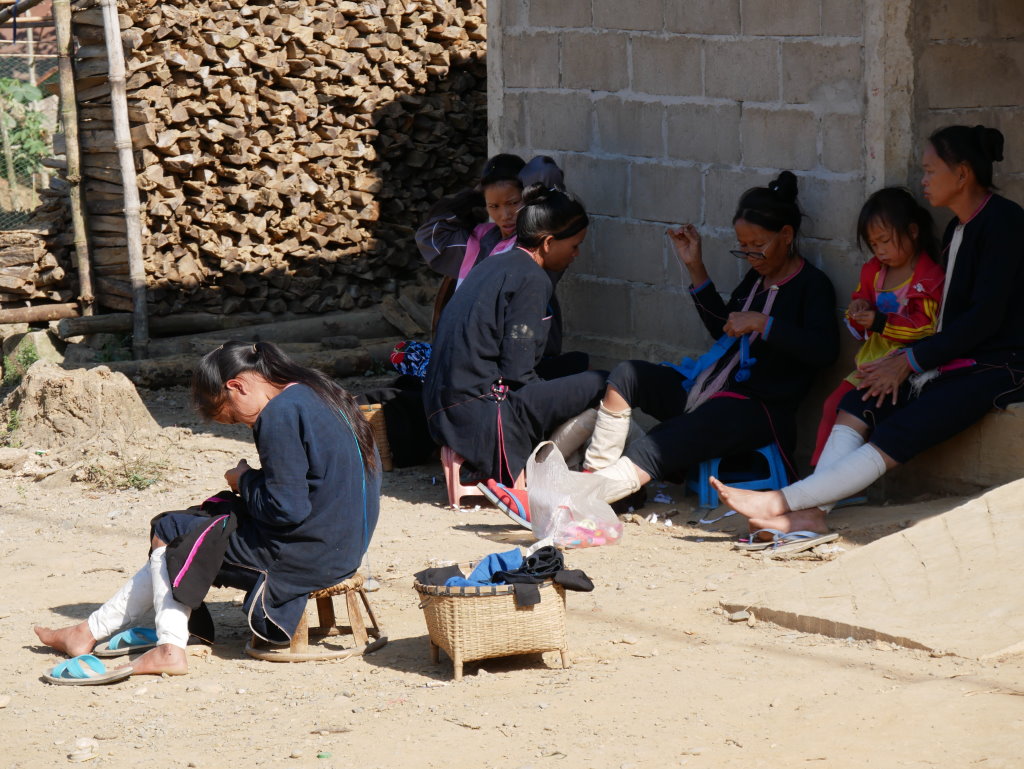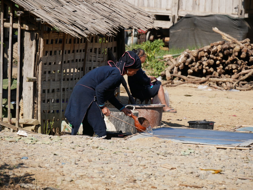 Für Abwechslung sorgt ein Zwischenstopp in Ban Paha, einem kleinen Dorf der Lanten (auch Lenten oder Len Taen genannt). Hier tragen viele Frauen noch die traditionelle fast schwarze indigogefärbte Tracht. Auf dem Weg zur Schule begegnen wir ihnen beim Trocknen und Färben der Baumwolle und Nähen der Gewänder. Auch bei der Herstellung von Bambuspapier können wir zuschauen.