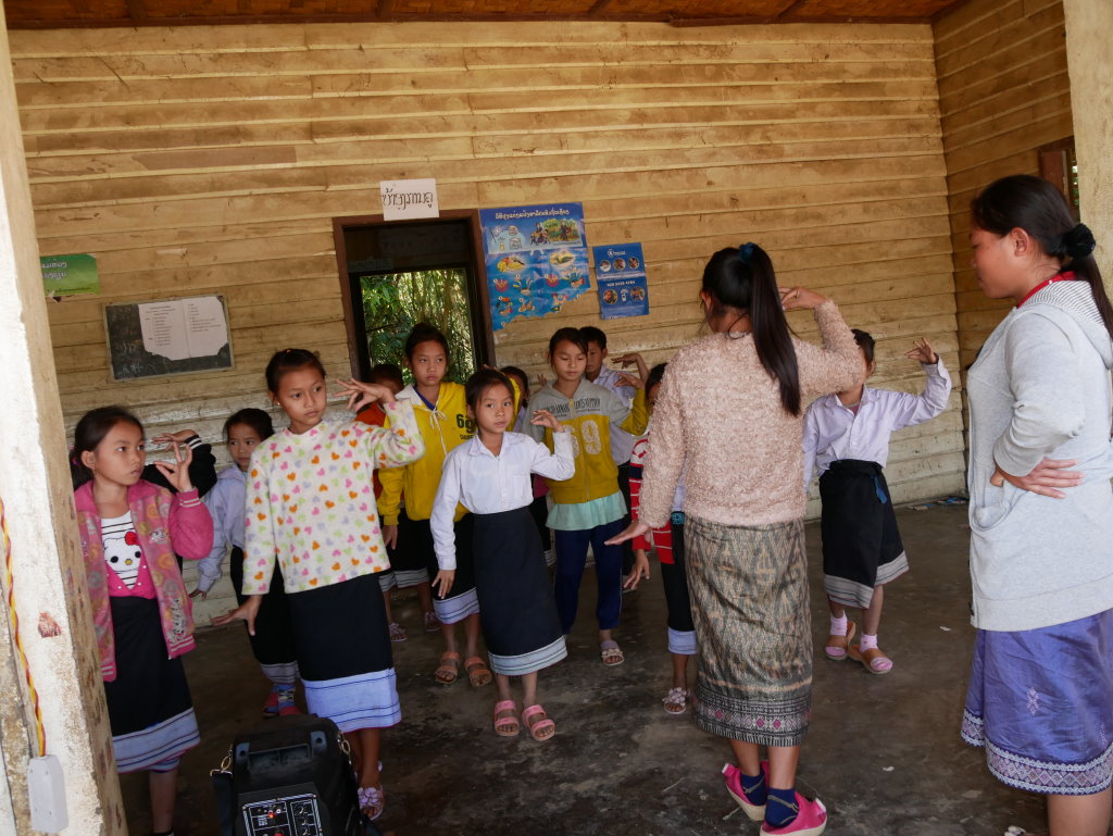 Während die Jungs auf dem Schulhof Papierflieger durch die Luft werfen, werden die Mädchen gerade im Tanzen unterrichtet – unter den kritischen Augen nicht nur der Lehrer sondern auch einigen anwesenden Müttern. Soviel Aufmerksamkeit stört sie aber nicht im Geringsten und sie haben sichtlich Spaß an den Reihentänzen.