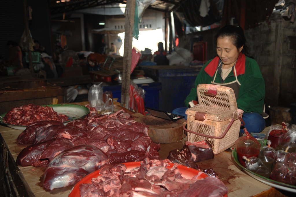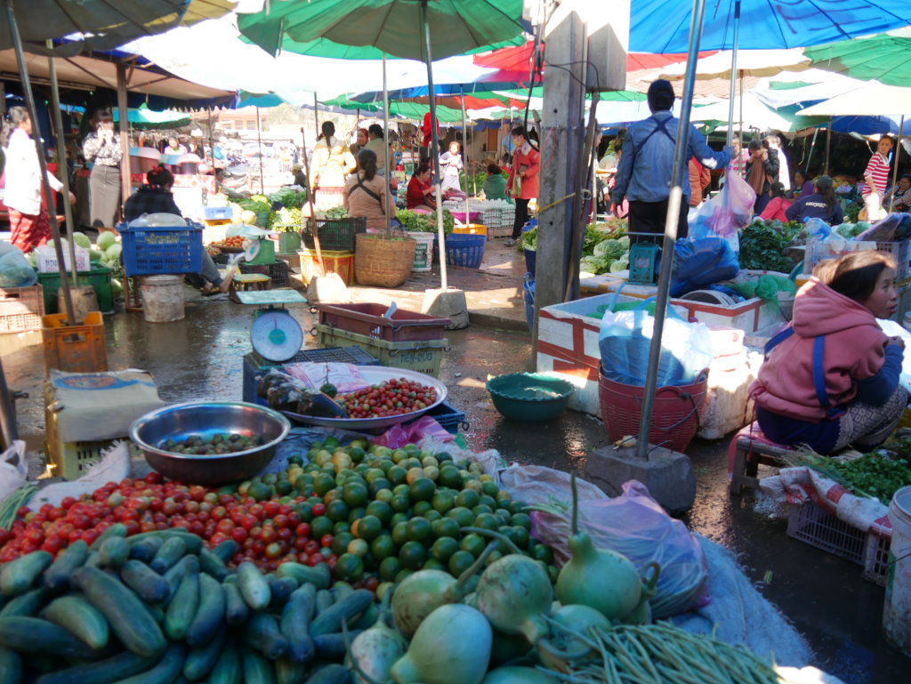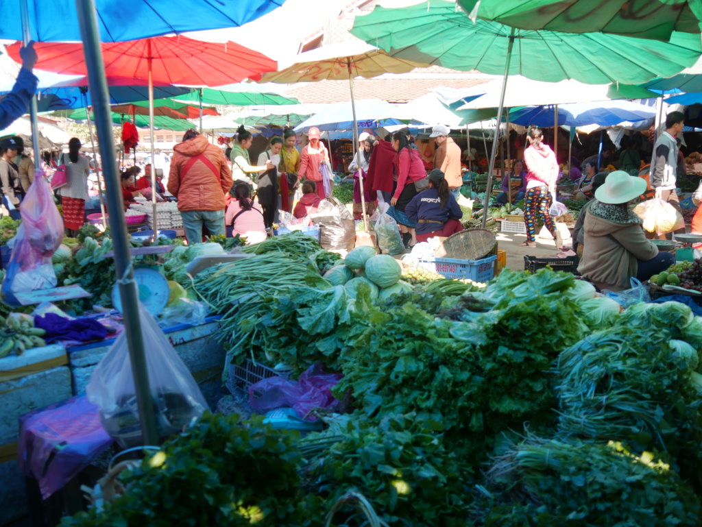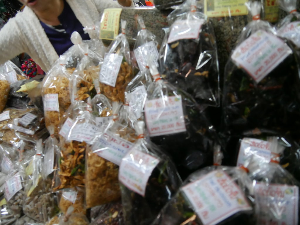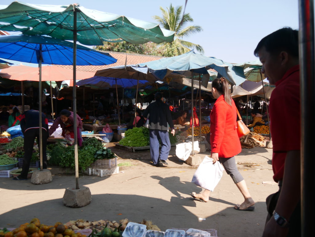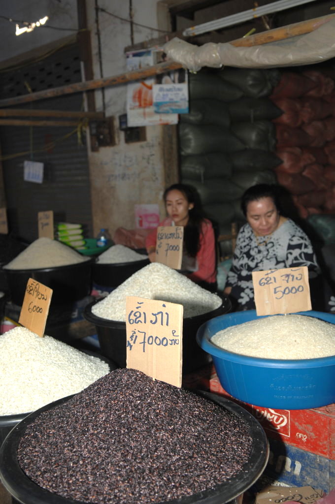 Der Tageskurs beginnt um zehn Uhr mit einem Besuch des Phosi Marktes. Phia erläutert fachkundig die exoterischen Zutaten und gibt bereits erste Tipps zu speziellen Gerätschaften, die später in der Küche zum Einsatz kommen. Viele der asiatischen Gemüsesorten sind mittlerweile auch in den Asia-Märkten z.B. in München zu bekommen. Manches ist längst in deutschen Küchen zu finden, bei anderen Zutaten fehlt schlicht eine deutsche Bezeichnung. Aber alles in allem sollte das Nachkochen daheim nicht an den benötigten Zutaten scheitern. Zur Not gibt’s Tipps von den laotischen Küchenprofis für einen möglichen Ersatz.