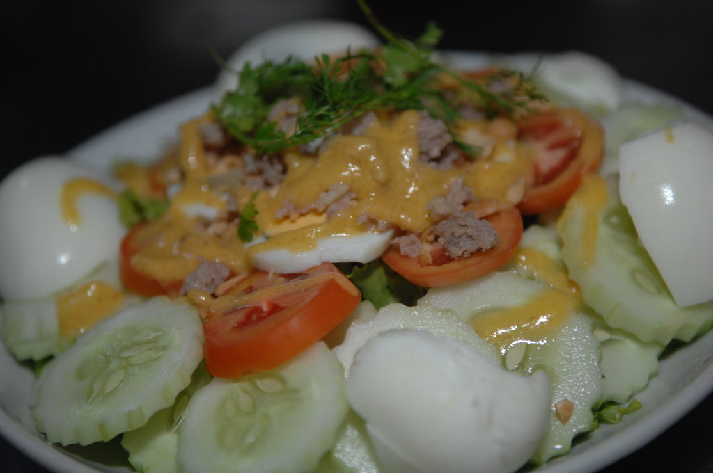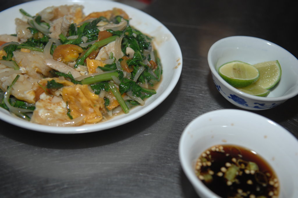 Was unterscheidet die nördliche laotische Küche von der ihrer Nachbarn? Manches erinnert an die thailändische Küche, anderes weckt eher Erinnerungen an die burmesische. Deutlich spezifisch laotisch ist der exzessive Einsatz von Knoblauch und die vielfältige Verwendung von Eiern bei vielen Gerichten. So zumindest der erste Eindruck, der sich auch bei den fünf Rezepten der Nachmittags-Session fortsetzt.