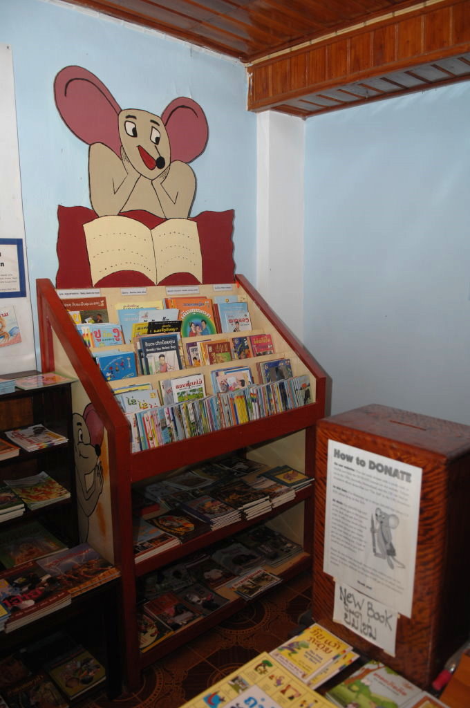 Denn Lesen war in diesem Land in der Vergangenheit meist unbekannt. Das will diese Non-Profit-Initiative ändern. Gegründet wurde sie 2003 von Khamla aus dem Dorf Khone Kham (50 km von Luang Prabang entfernt), dem amerikanischen Ex-Verleger Sasha sowie dem laotischen Lehramtsstudenten Siphone. Man kann die Erfolgsgeschichte des Projekts in einem kleinen Heft nachlesen, dass gratis in zahlreichen Sprachen erhältlich ist. Was damals mit dem Büchlein „Die Katze die meditierte“ begann ist heute ein kleiner Verlag mit vielen Titeln nicht nur für Kinder und Jugendliche. Die meisten sind zweisprachig laotisch und englisch und sollen vor allem eins vermitteln: Spaß am Lesen.