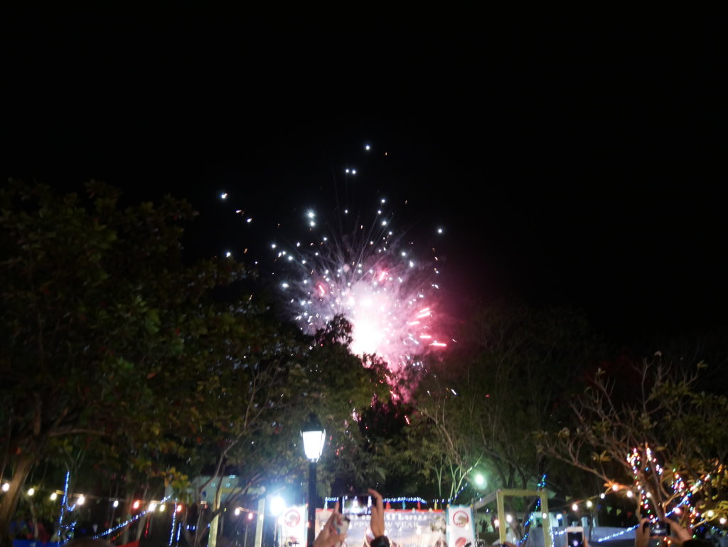 Wie wir später erfahren, ist der Gouverneur der Provinz heute zu Gast. Sonderlich beliebt scheint er nicht zu sein, wenn man das Polizeiaufgebot sieht. Nach einer postkommunistischen Zeremonie mit Urkundenübergabe, steifem Geklatsche und den üblichen Erinnerungsfotos startet schließlich begleitet von harten Bässen der Countdown zum Jahreswechsel.