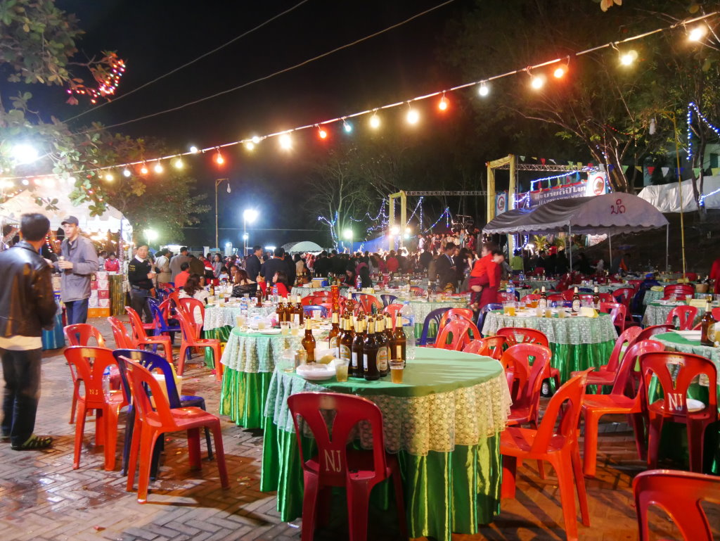 Papierballons steigen in diesem Jahr keine auf. Das war den Offiziellen wohl zu unübersichtlich. Also gibt es Punkt Mitternacht ein kurzes konzentriertes Feuerwerk, das hinter der Bühne abgeschossen wird. Dann verläuft sich ein Großteil der Menge, während einige Feierwillige noch eine halbe Stunde ausharren. Unter den harten Techno-Beats kommt jetzt sogar ein wenig Stimmung auf. Der Lao Loa Mojito von der Bar des Indigo Hotels tut da natürlich noch sein übriges …
