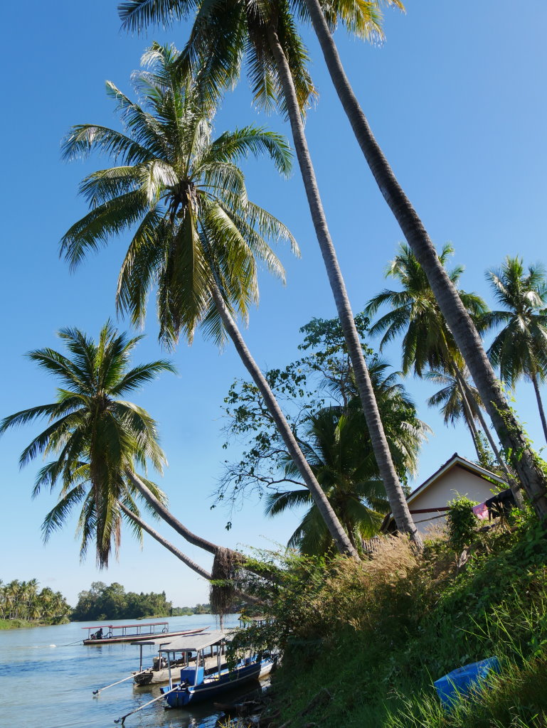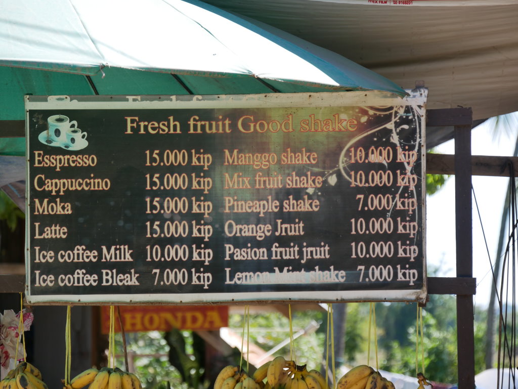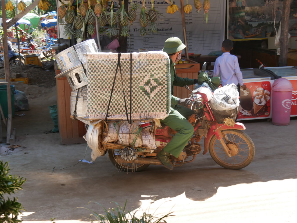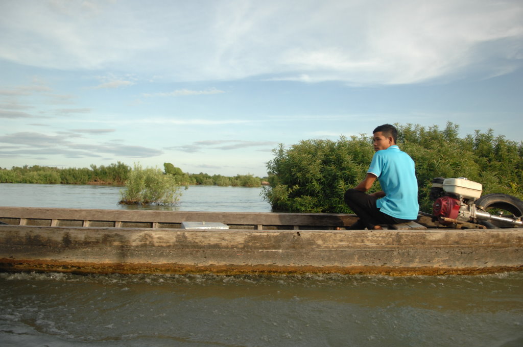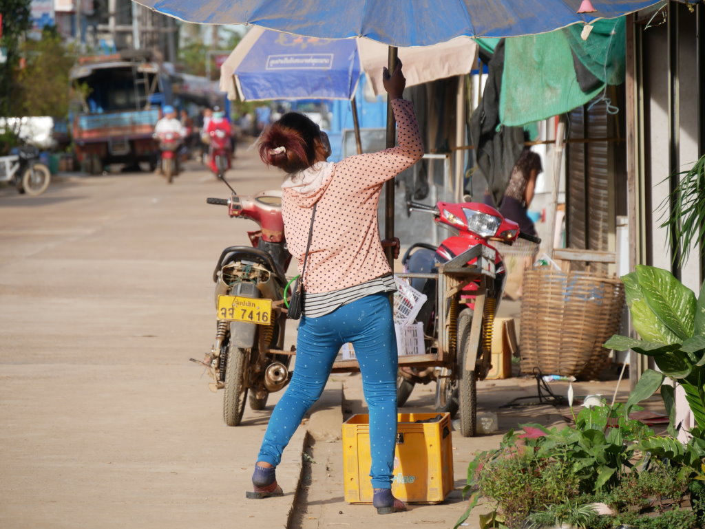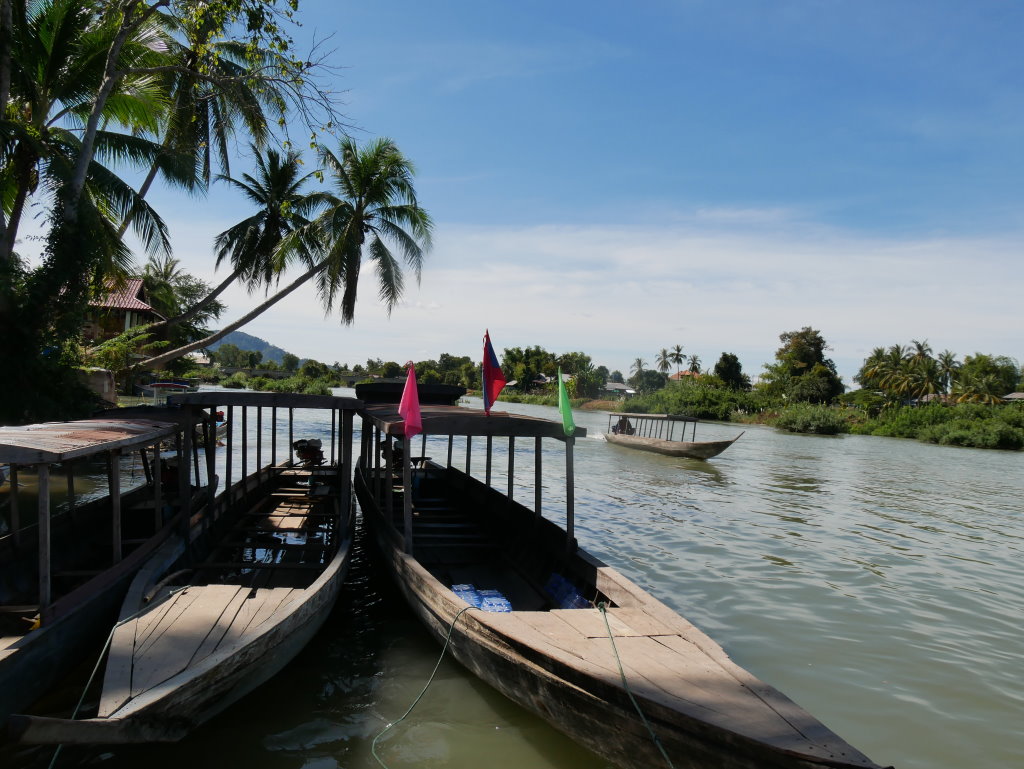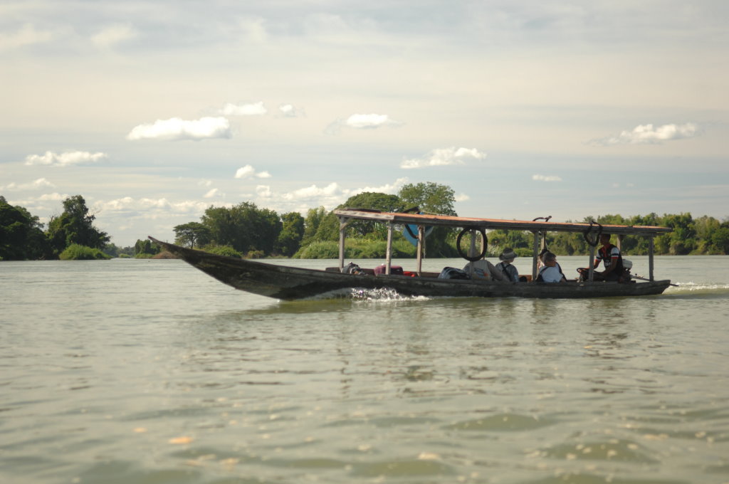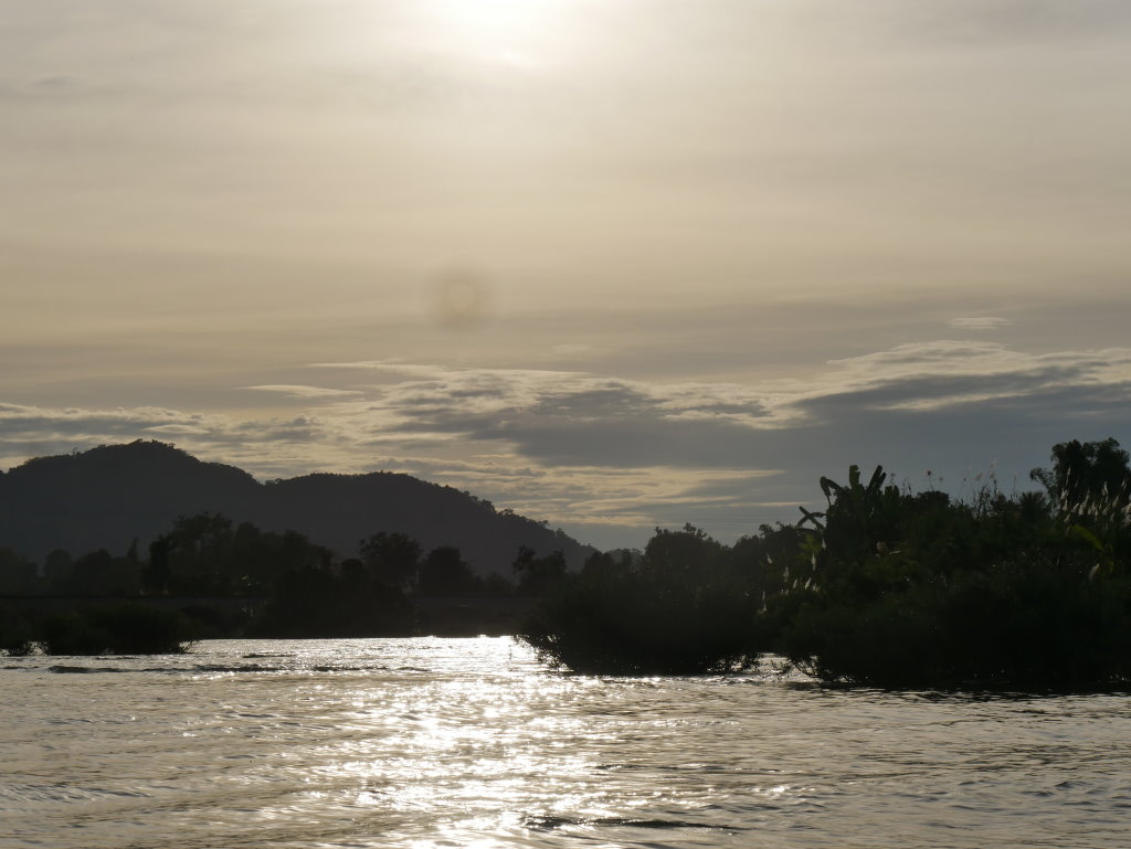Mister Pan ist verwirrt. Nicht morgens um 9, sondern mittags um 13 Uhr? Für eine Halbtagestour zu den Mekongfällen an der unweit der loatisch-kambodschanische Grenze lohnt es sich, das Nachmittagslicht zu wählen. Vormittags ist der Himmel zu dieser Jahreszeit zwar oft wolkenlos, nachmittags ziehen dann die Wolken auf. Das Risiko eines vollständig wolkenverhangenen Himmels nehmen wir gerne in Kauf. Mit etwas Glück aber stimmt die Mischung.