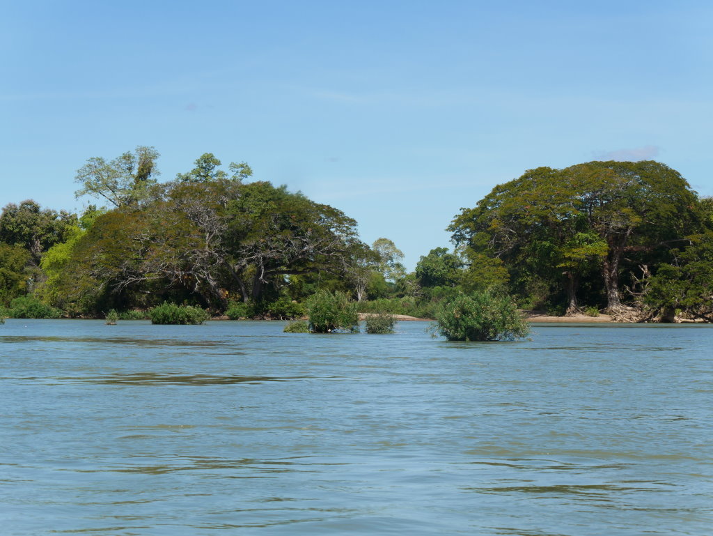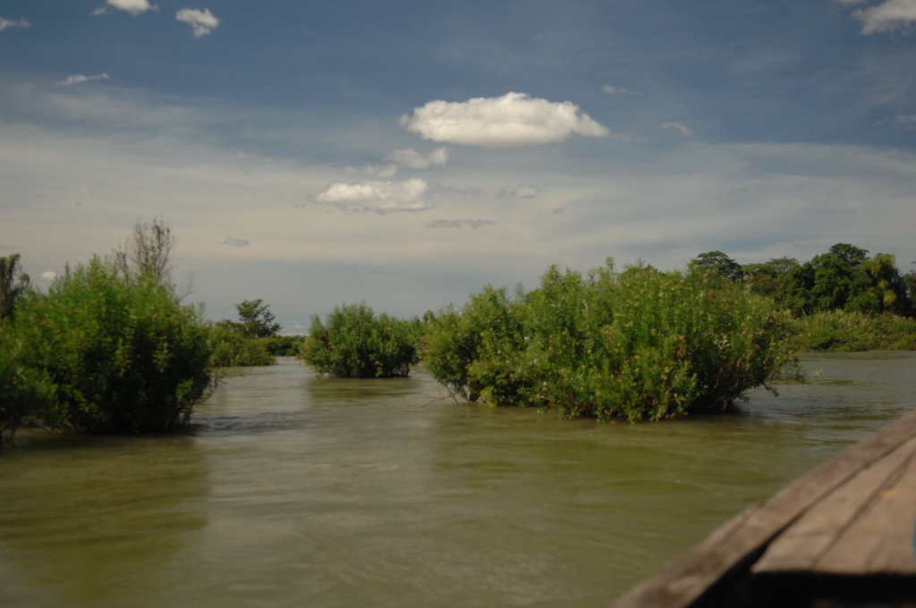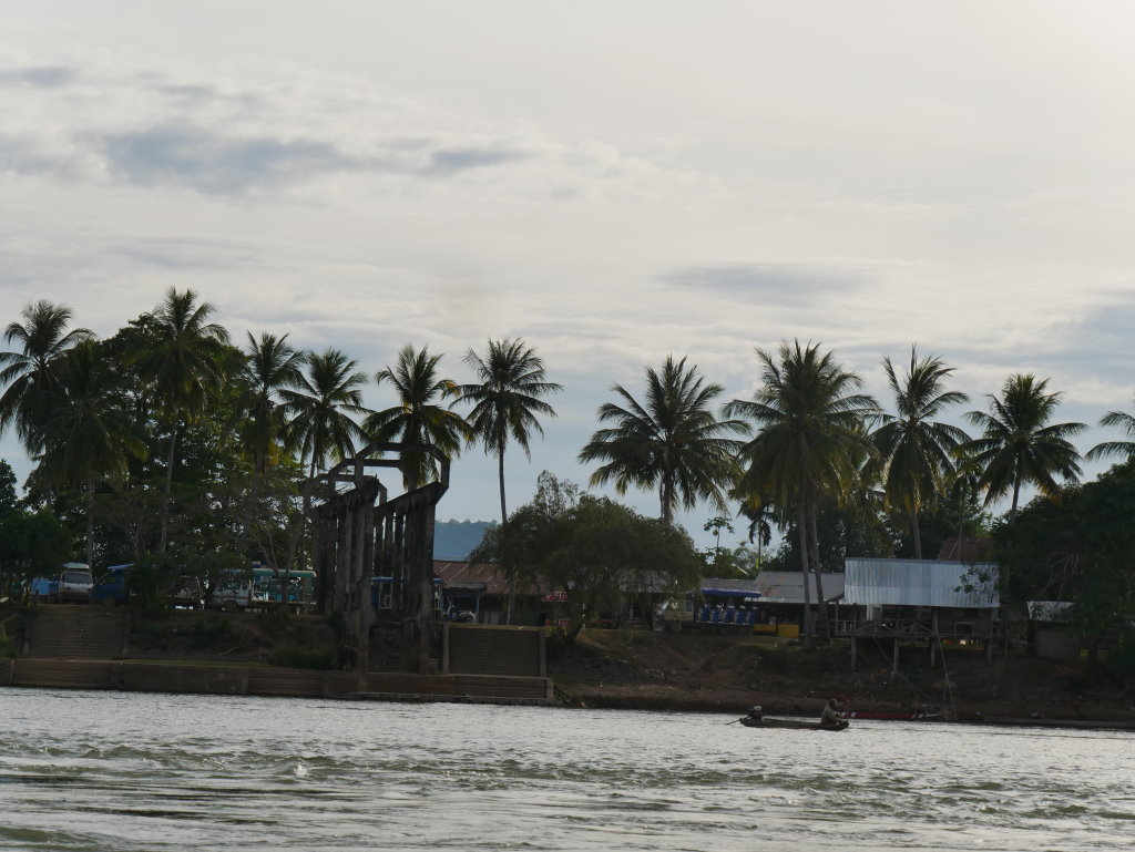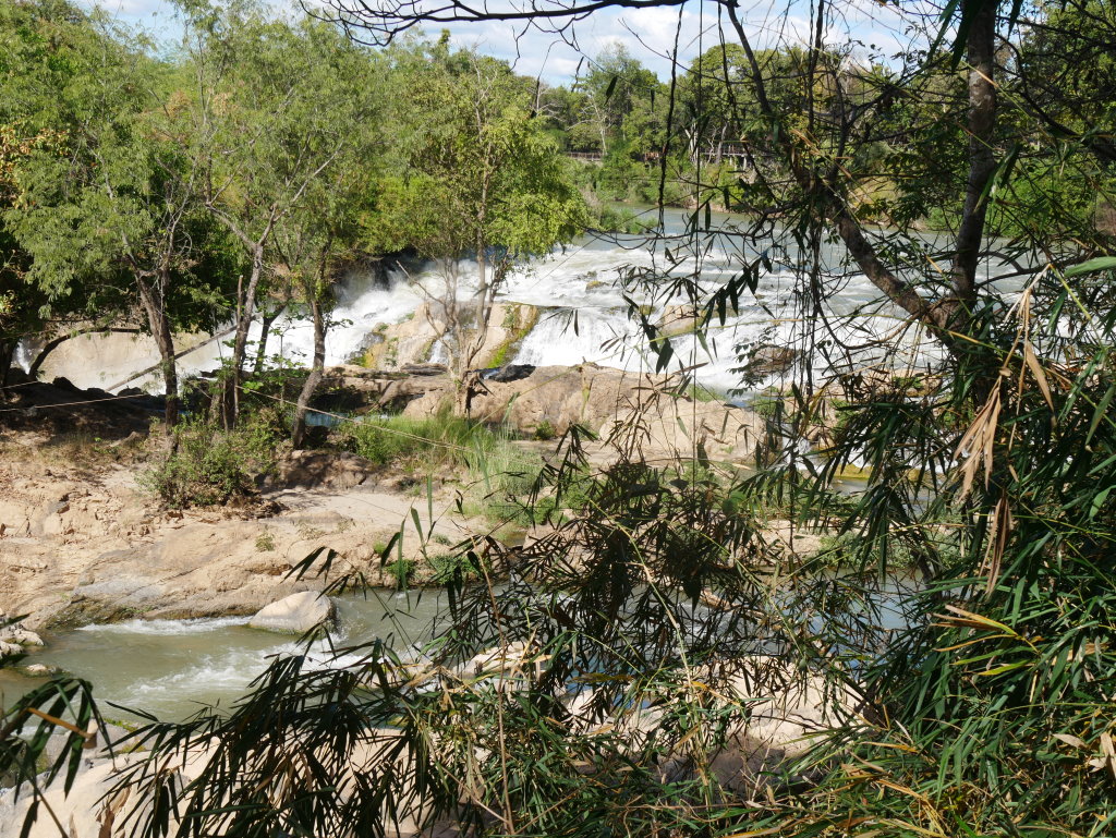 Dann sind wir auch schon wieder auf dem Wasser unterwegs zur Landungsstelle von Nakasong. Hier wartet ein Tuk-Tuk, um uns zur Nam Tok Khon Phapheng (Vollmond-Stromschnelle) zu bringen. Erstaunlich wenige Touristen verirren sich zu dem größten Wasserfall Asiens, der „Perle des Mekong“, wie es in der Eigenwerbung am Eingang zu dem Gelände heißt. An den 55.000 Kip (rund 6 Euro) Eintritt pro Ausländer kann es eigentlich nicht liegen, dass nur ein paar asiatische Besucher mit uns das Spektakel sehen wollen.