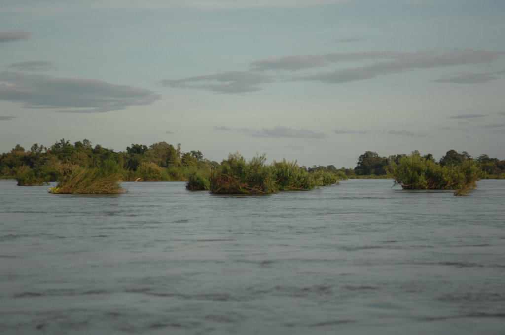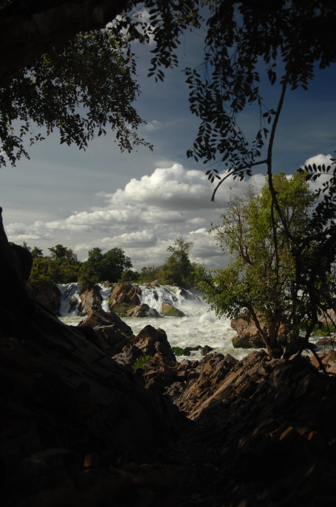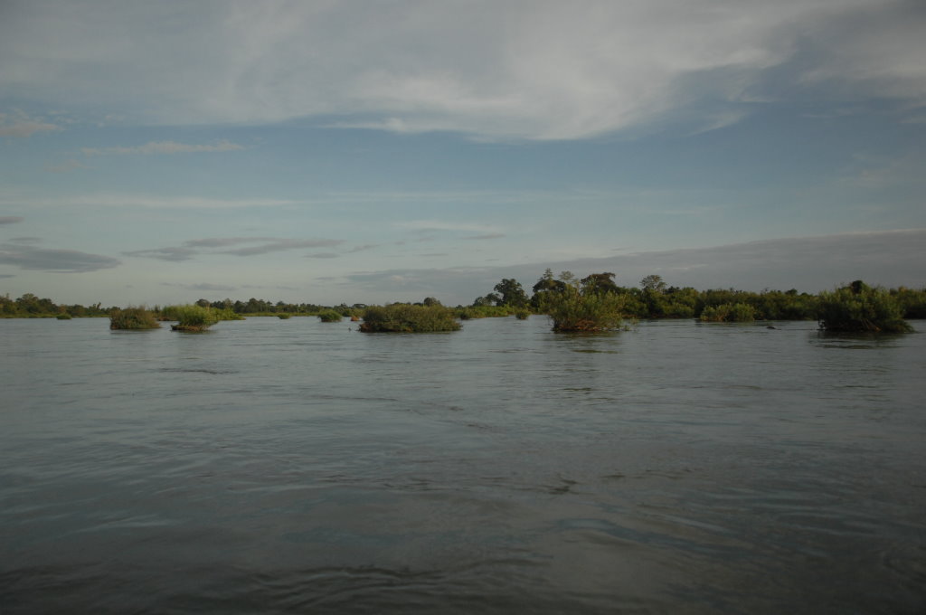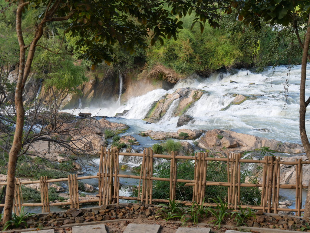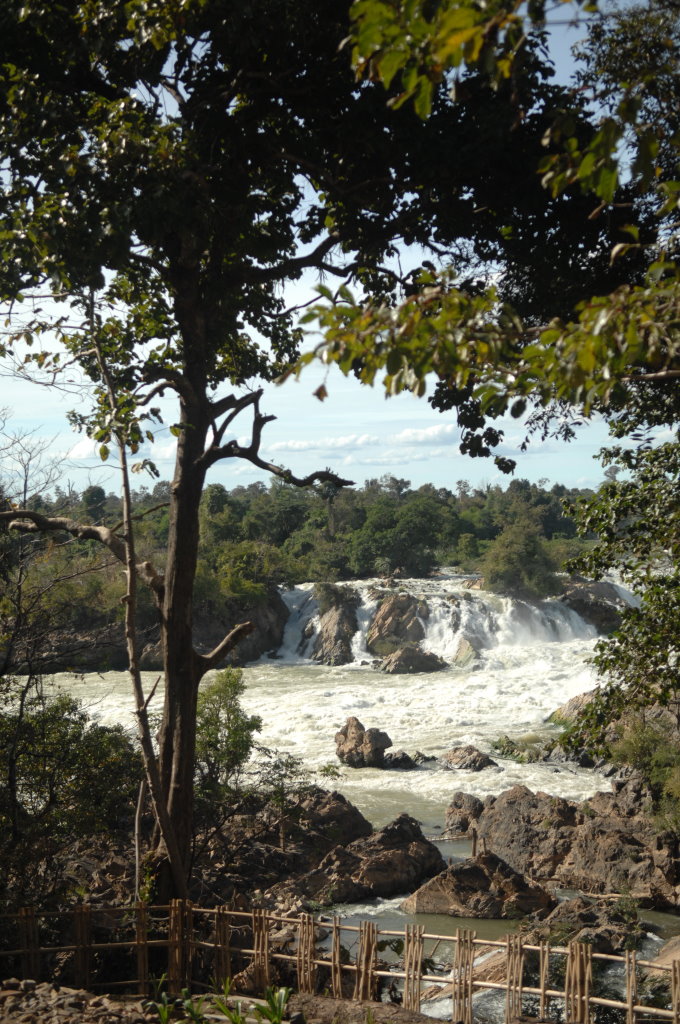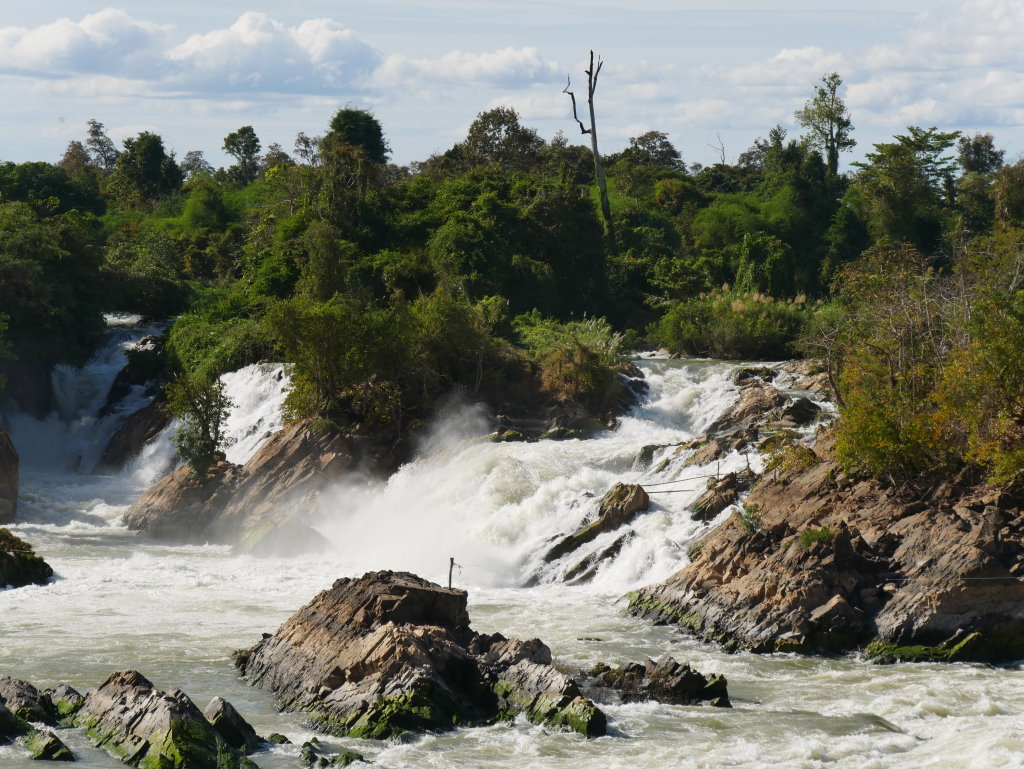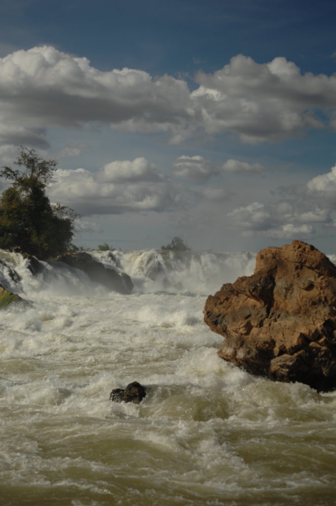 Der zuvor noch ruhig und breit dahin mäandernde Strom stürzt auf einer Breite von rund 10 Kilometern in Kaskaden bis zu 21 Meter in die Tiefe. Damit halten die Mekongfälle den Rekord als weltweit breitester Wasserfall.