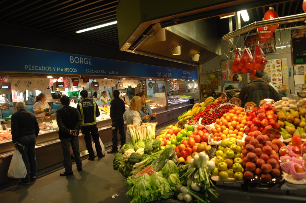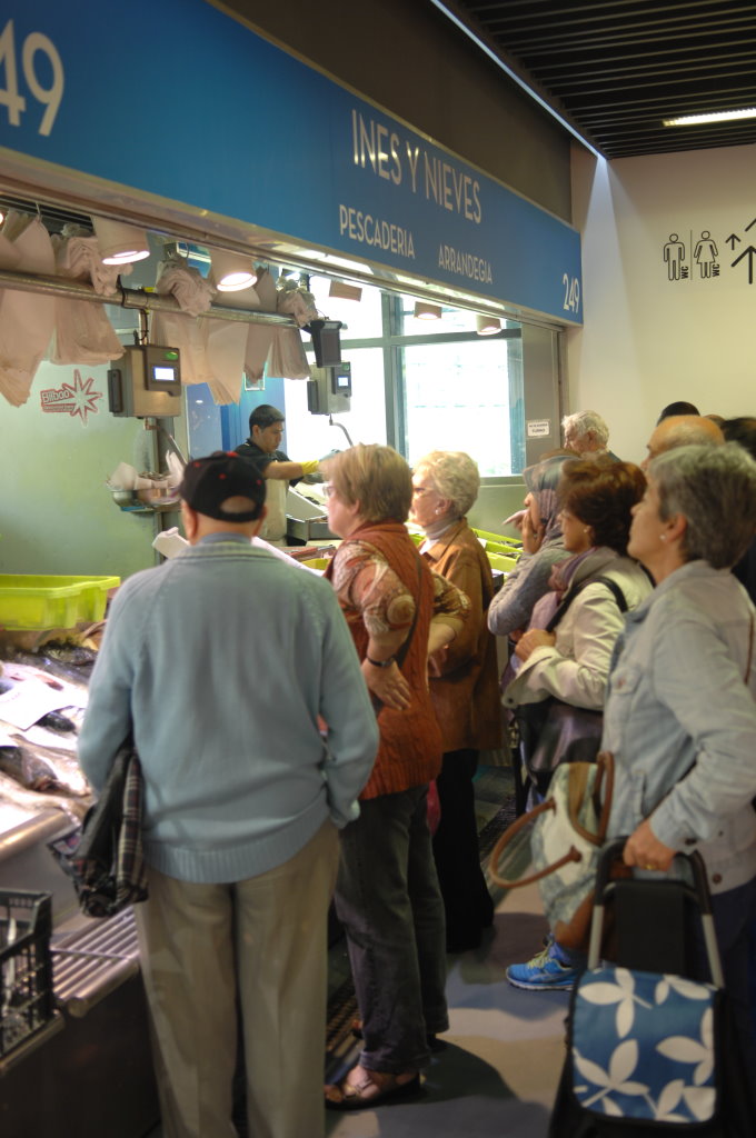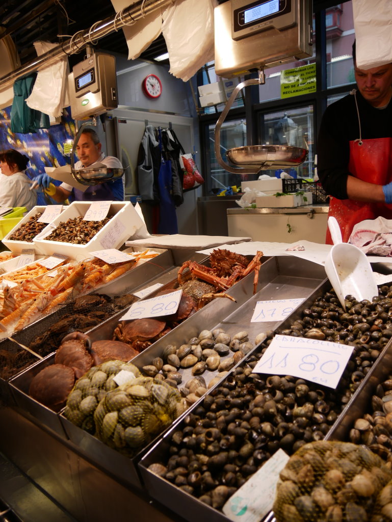 Nachdem wir tags zuvor in Bilbao bei strömendem Regen ankamen, hatte der Wettergott heute bessere Laune. Zum Frühstück in den Ribera-Markthallen am Fluss ist es nicht weit von unserem Quartier in der Altstadt. Bereits die ungeheure Vielfalt an Frischfisch macht uns neidisch. Diese Auswahl gibt’s leider halt nur am Meer oder der Küste.