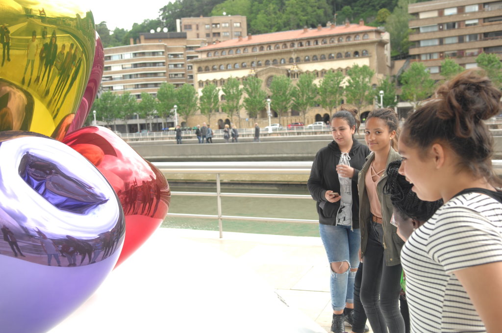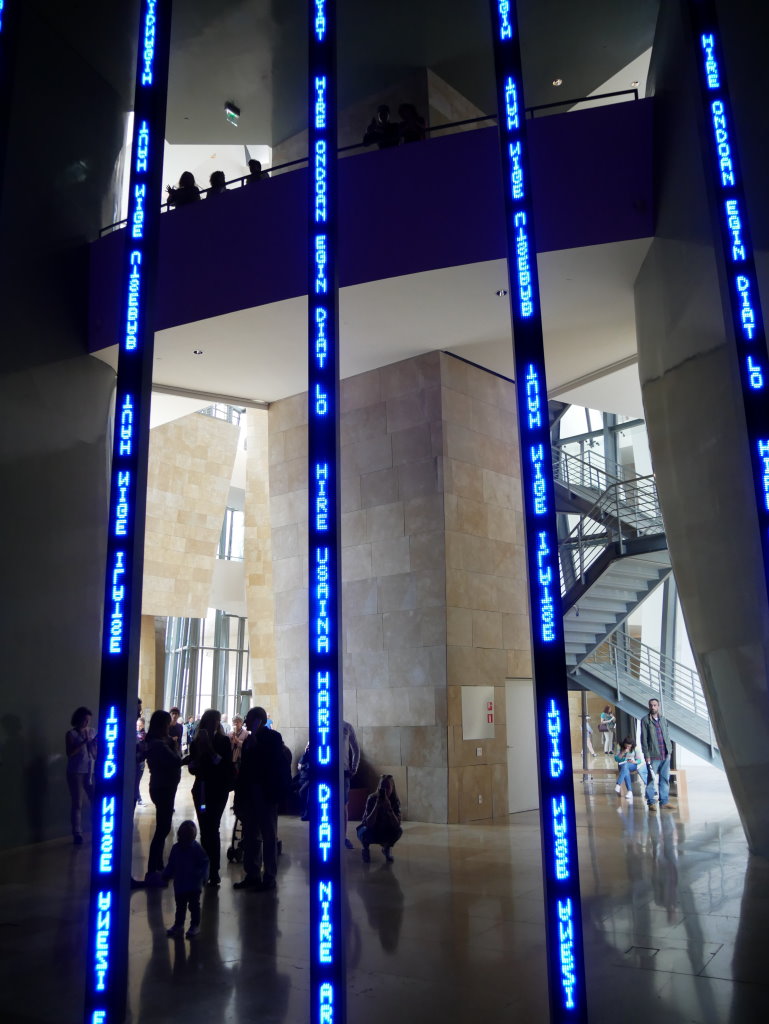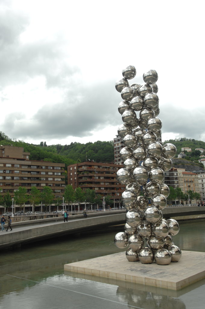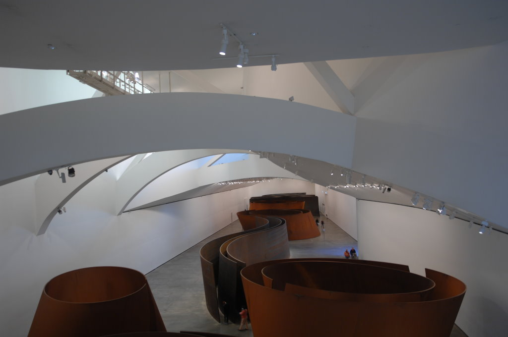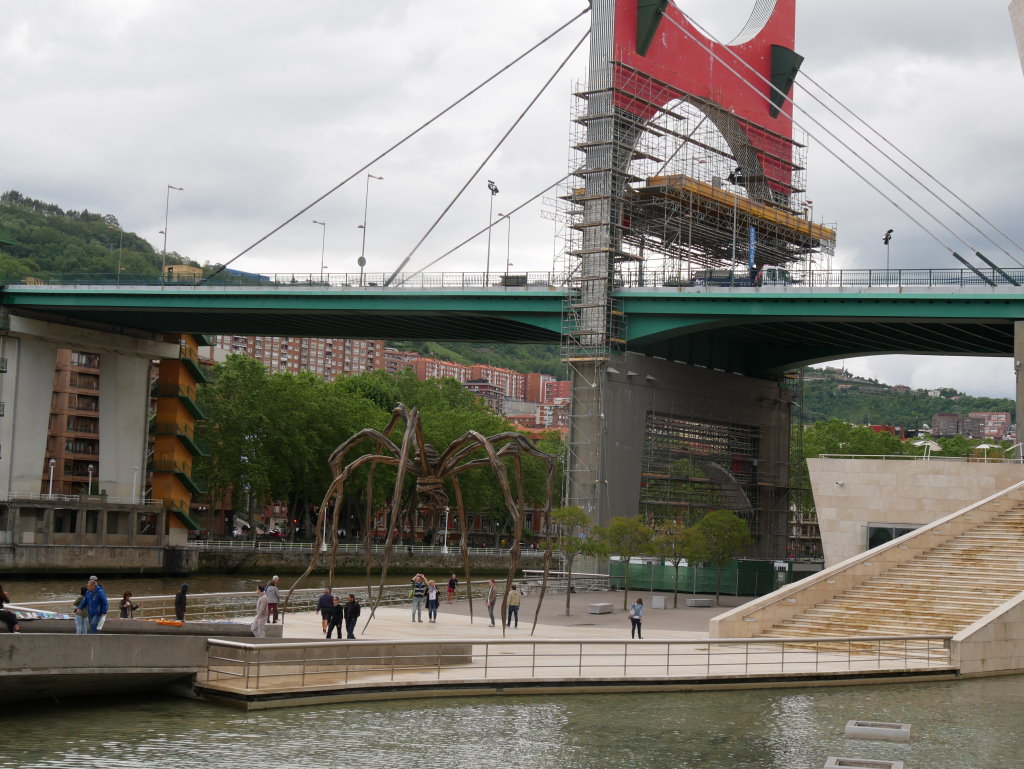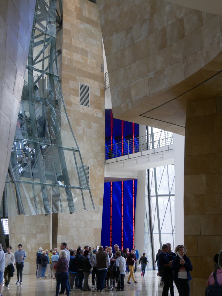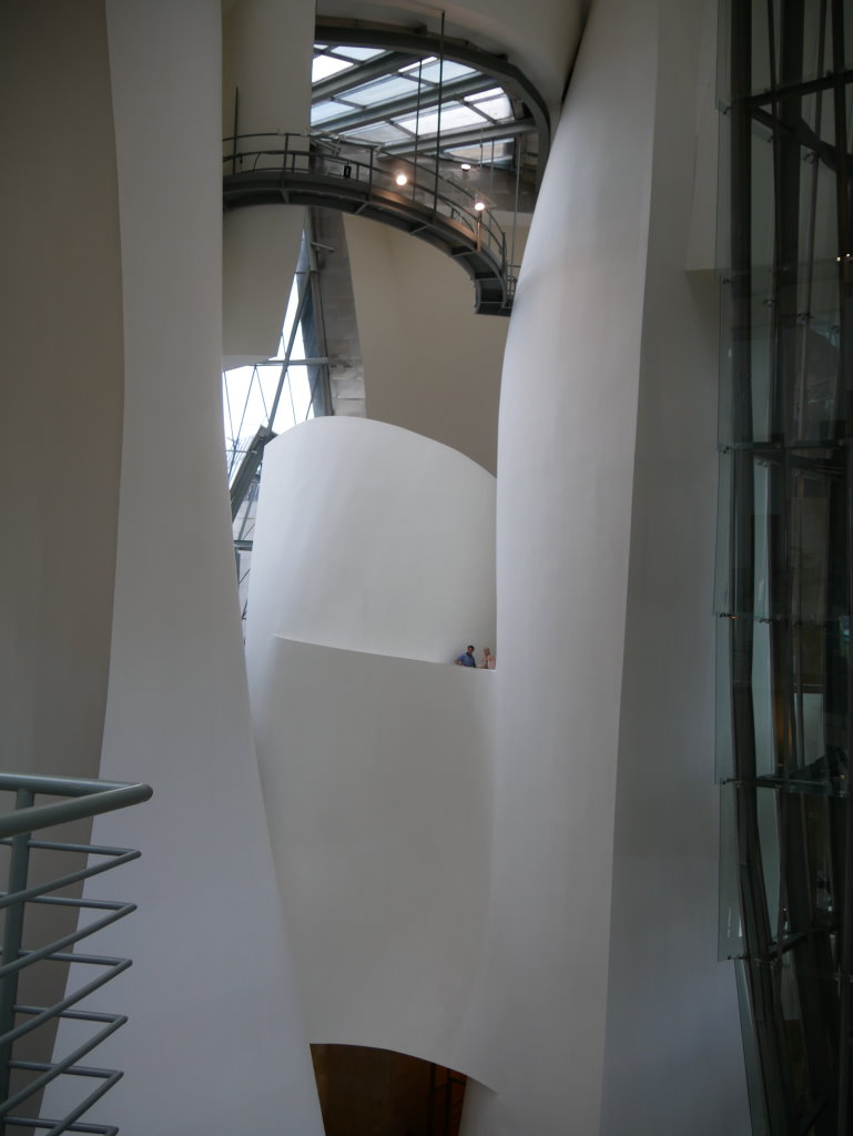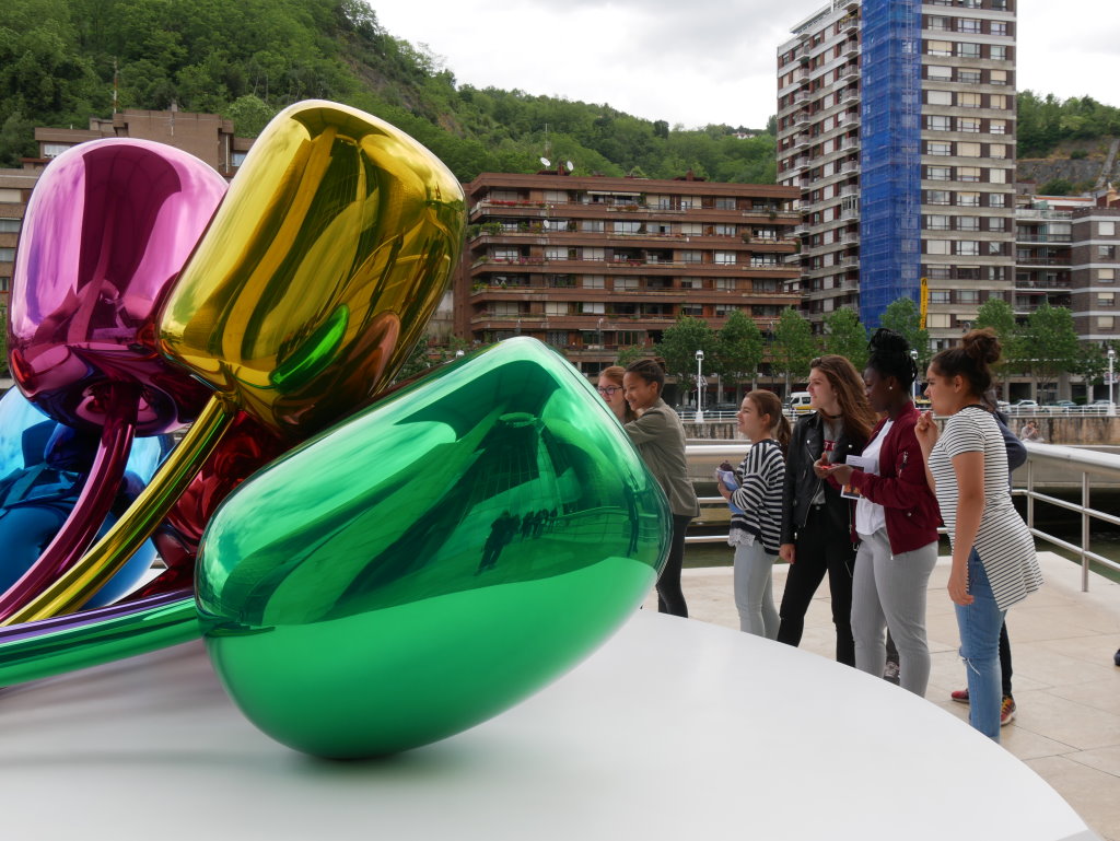 Mittlerweile hat die Sonne sich endgültig durch die Wolken gekämpft. Mit der Straßenbahn geht’s am Fluss entlang zum Guggenheim Museum. Allein die Architektur des Gebäudekomplexes aus Glas, Titan und Kalkstein ist überwältigend – außen wie innen.