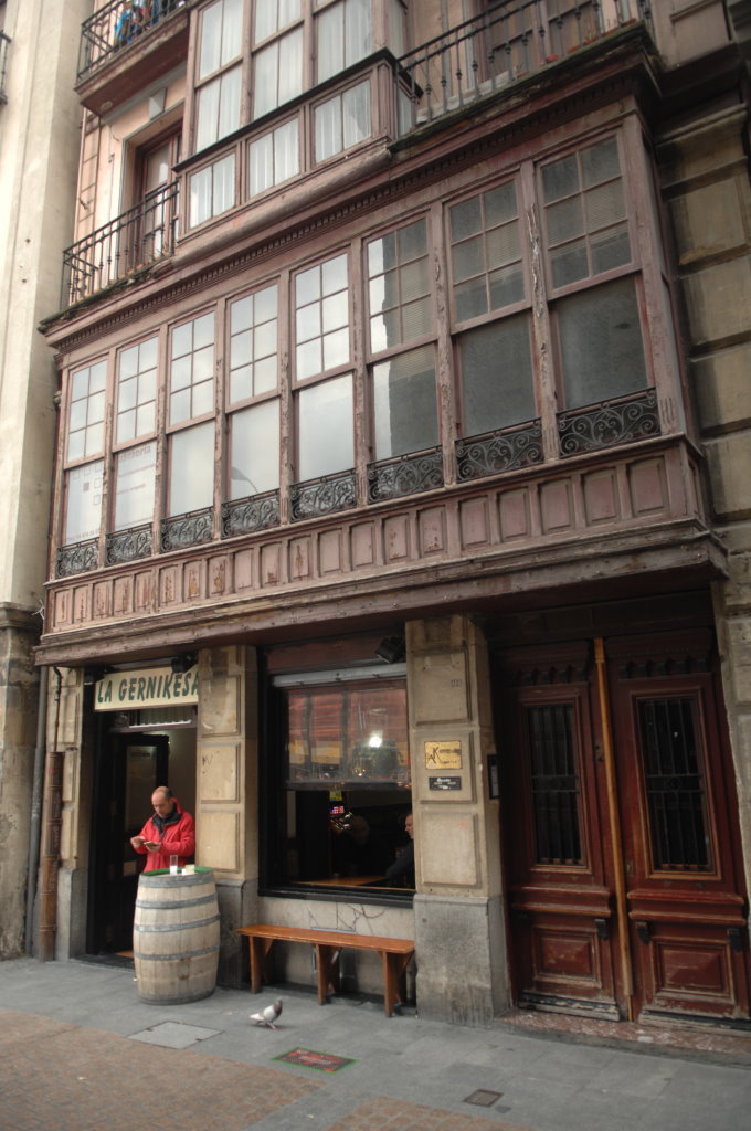 Nachtrag: Irgendwie schaffen wir es nicht bis zum Schinken. Unvorsichtigerweise stellt sich uns auf dem Weg dorthin ein Torbogen in den Weg. Dahinter versteckt sich der Plaza Nuevo mit lauter Livemusik. Spätestens an der Bar La Olla ist dann das neue Ziel erreicht: ein weiteres Pintxos-Paradies. Rappelvoll, allein das schon ein Indiz für ein „hier bleiben wir“. Also endet der Tag wie er begonnen hat: mit fantastischen Pintxos, diesmal vor allem mit Fischvariationen auf hellem und dunklem Brot…