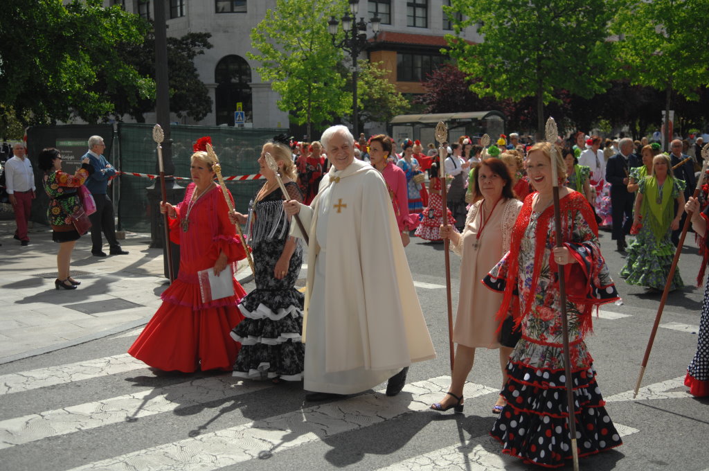 Wieder zahlt es sich aus, ein Quartier im Herzen der Stadt zu wählen. Keine 10 Minuten sind es zu Fuß von der Calle Madrid zur Kathedrale von Santander und der Plaza Porticada. Rund um die Kirche tobt das Leben. Immer mehr Frauen in Trachten treffen ein. Dann startet eine Prozession, bei der eine Marienstatue aus der Kathedrale zur Parroquia de la Anunciacion gebracht wird.