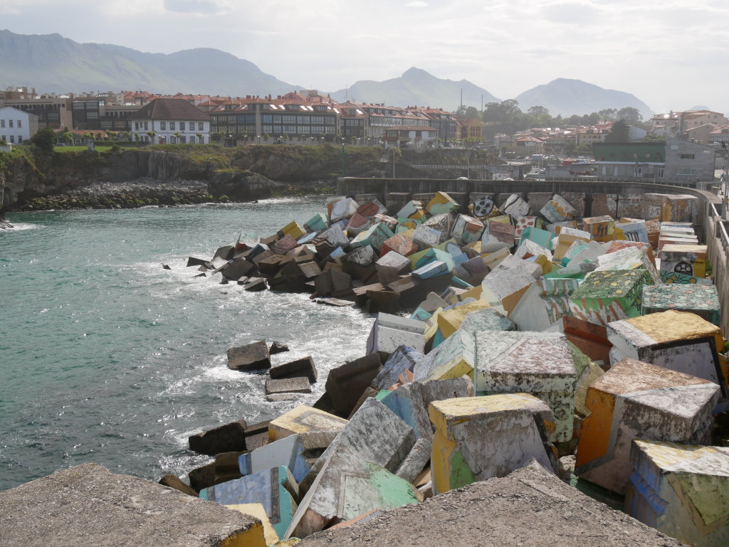 Der Hafen von Llanes wurde 1996 zum letzten Mal gründlich seefest gemacht. Die eigentlich recht hässlichen Betonquader sind dank ihrer bunten Bemalung mittlerweile zu einer Sehenswürdigkeit des Ortes avanciert.