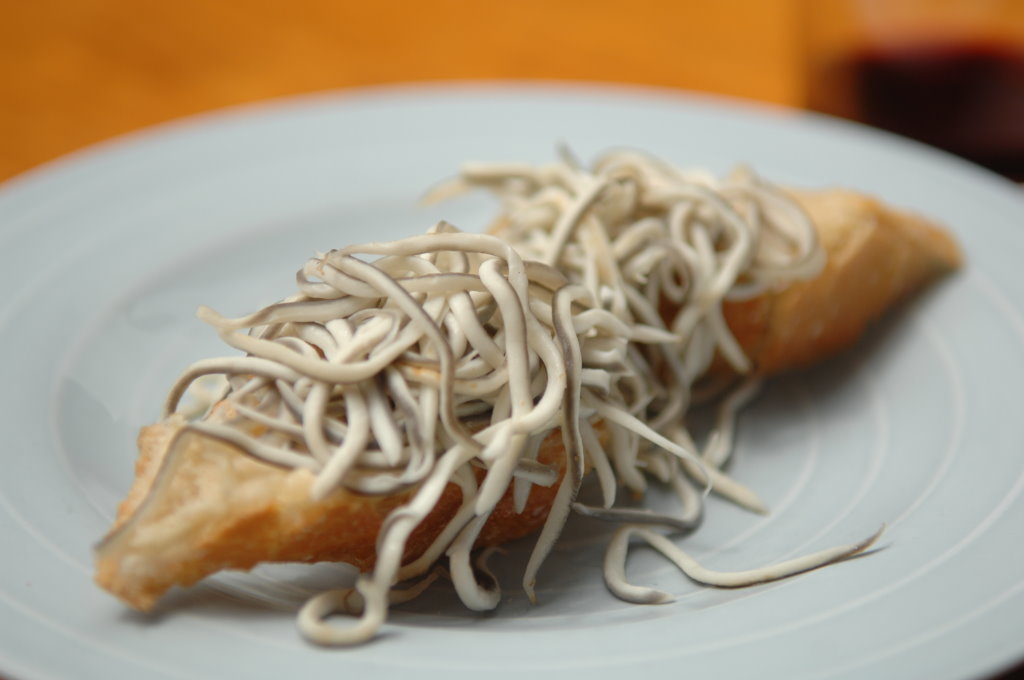 Bei den Gulas handelt es sich um einen Surimi-„Nachbau“. Die echten Angulas wären wahrscheinlich um diese Jahreszeit nicht zu bekommen und außerdem um ein Vielfaches teurer. Aber die Erinnerung war es wert…